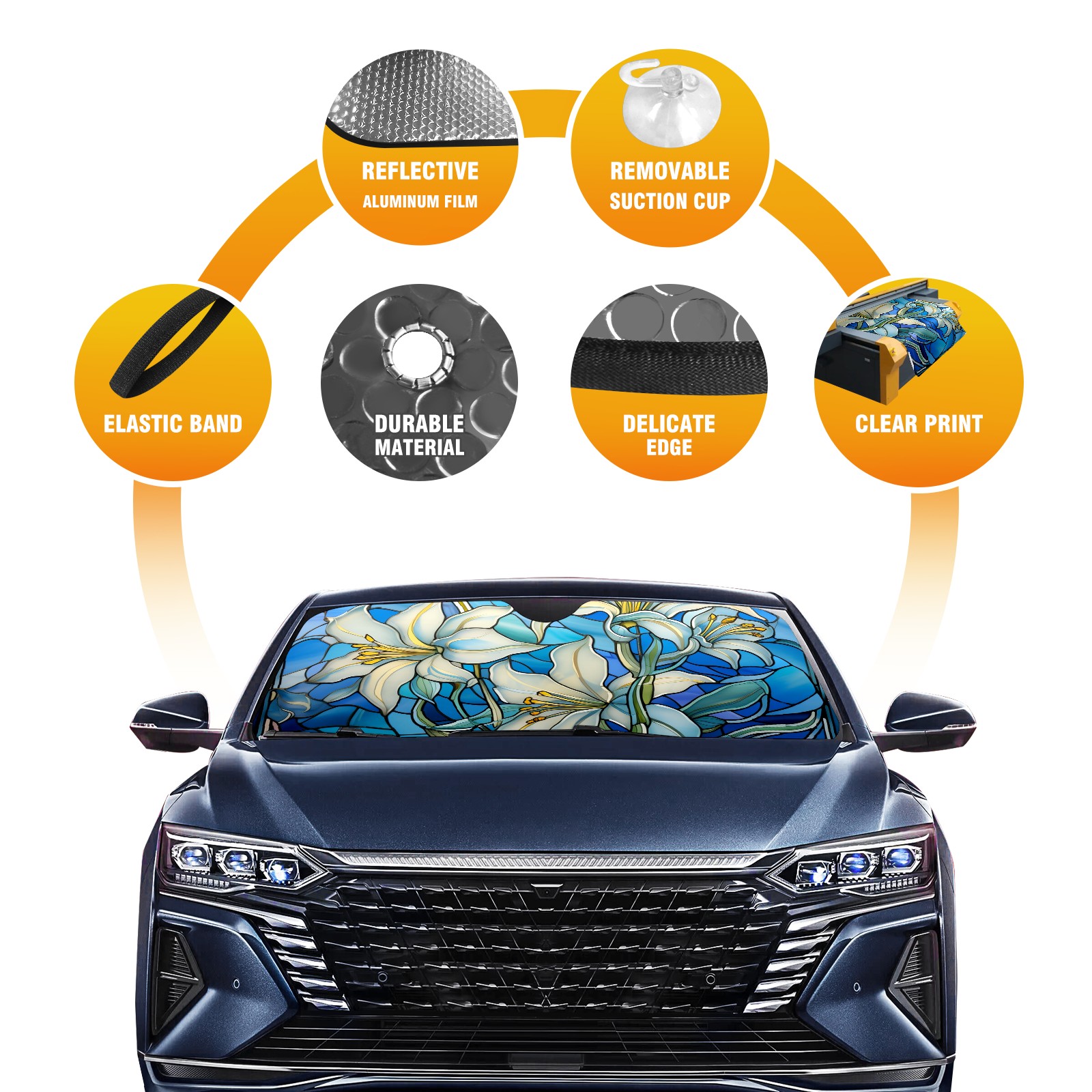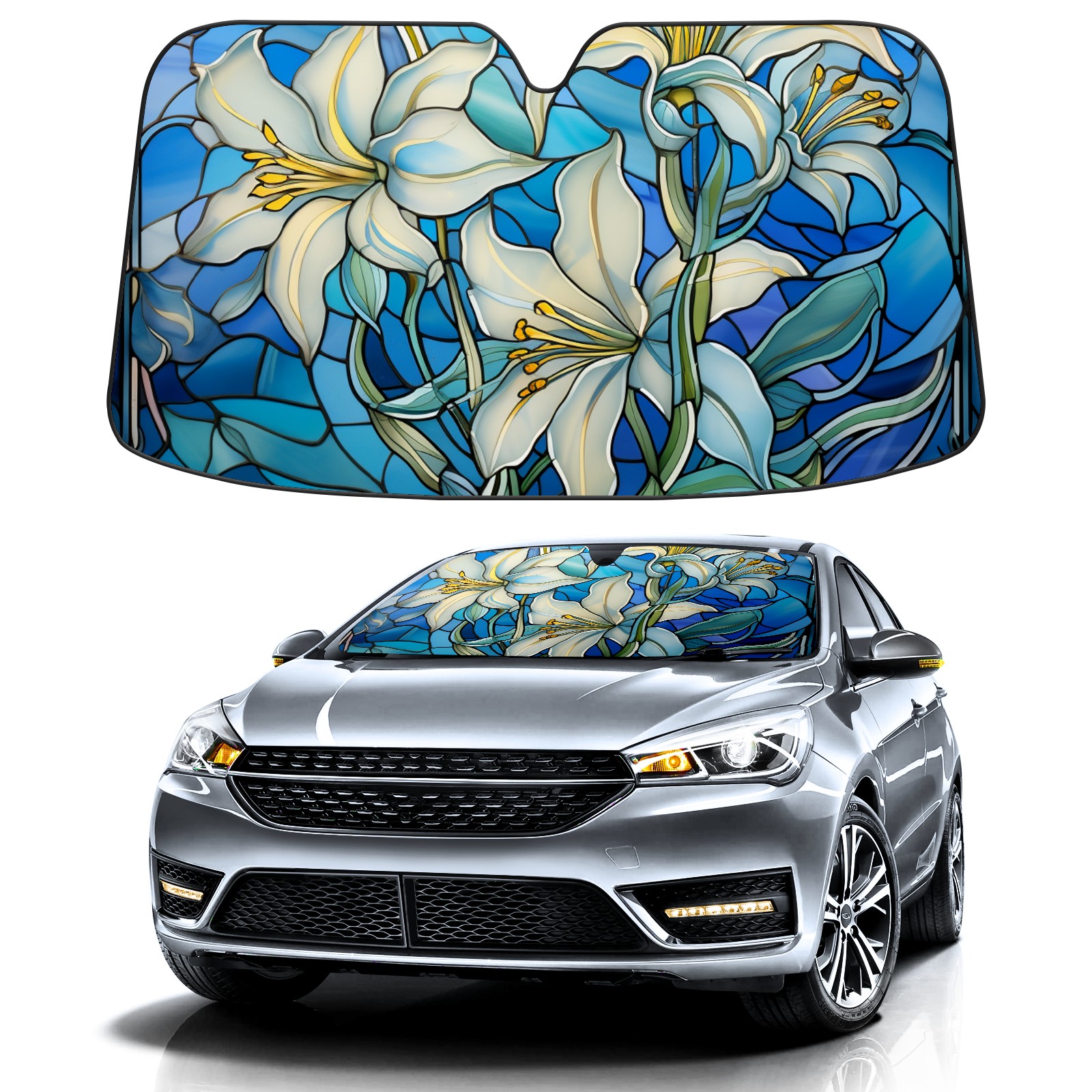 Car Windshield Sun Shade For Front Window Lily Foldable Vehicle Windshield Car Sun Visor Covers Automotive Window Protector Car Camping Privacy Sun Blocker