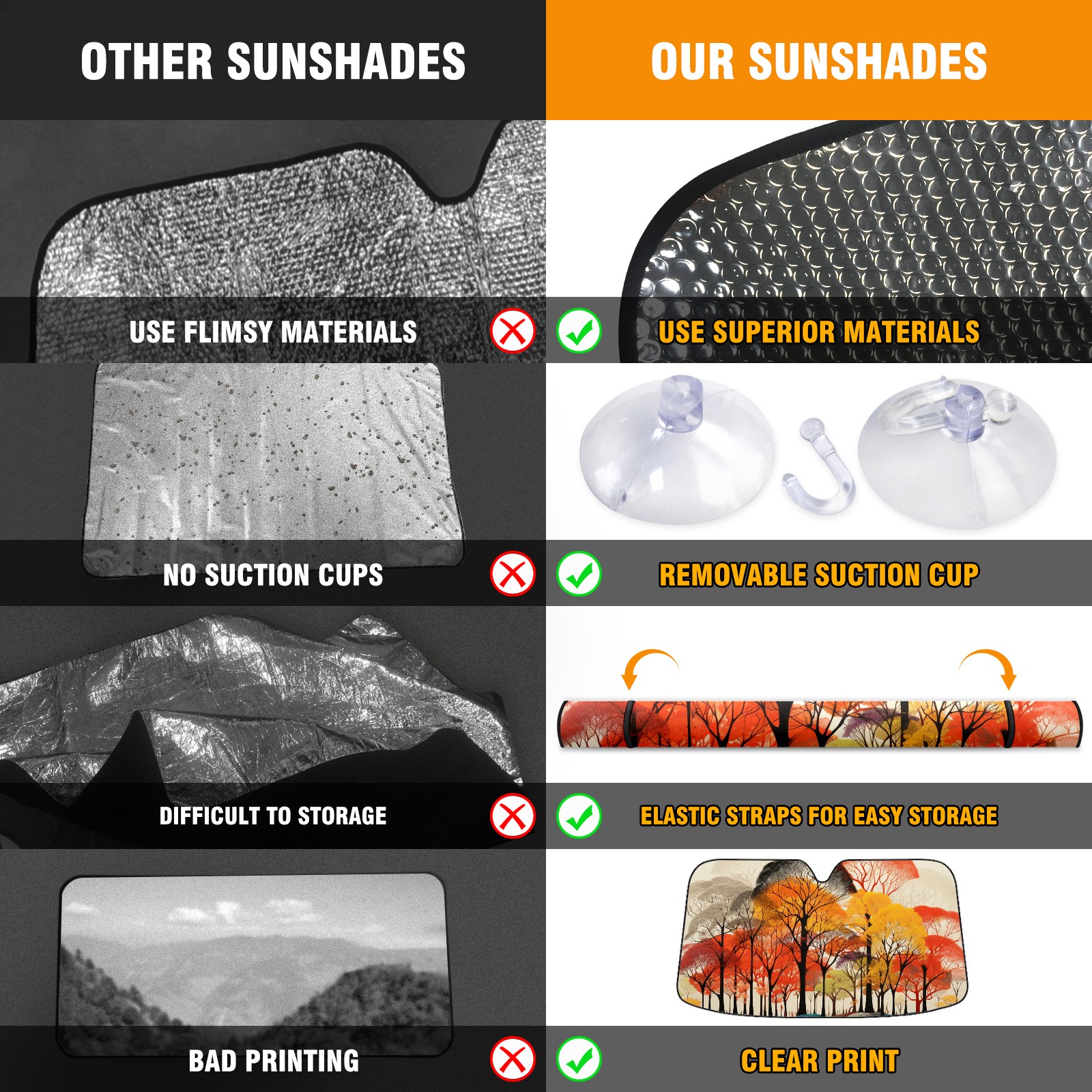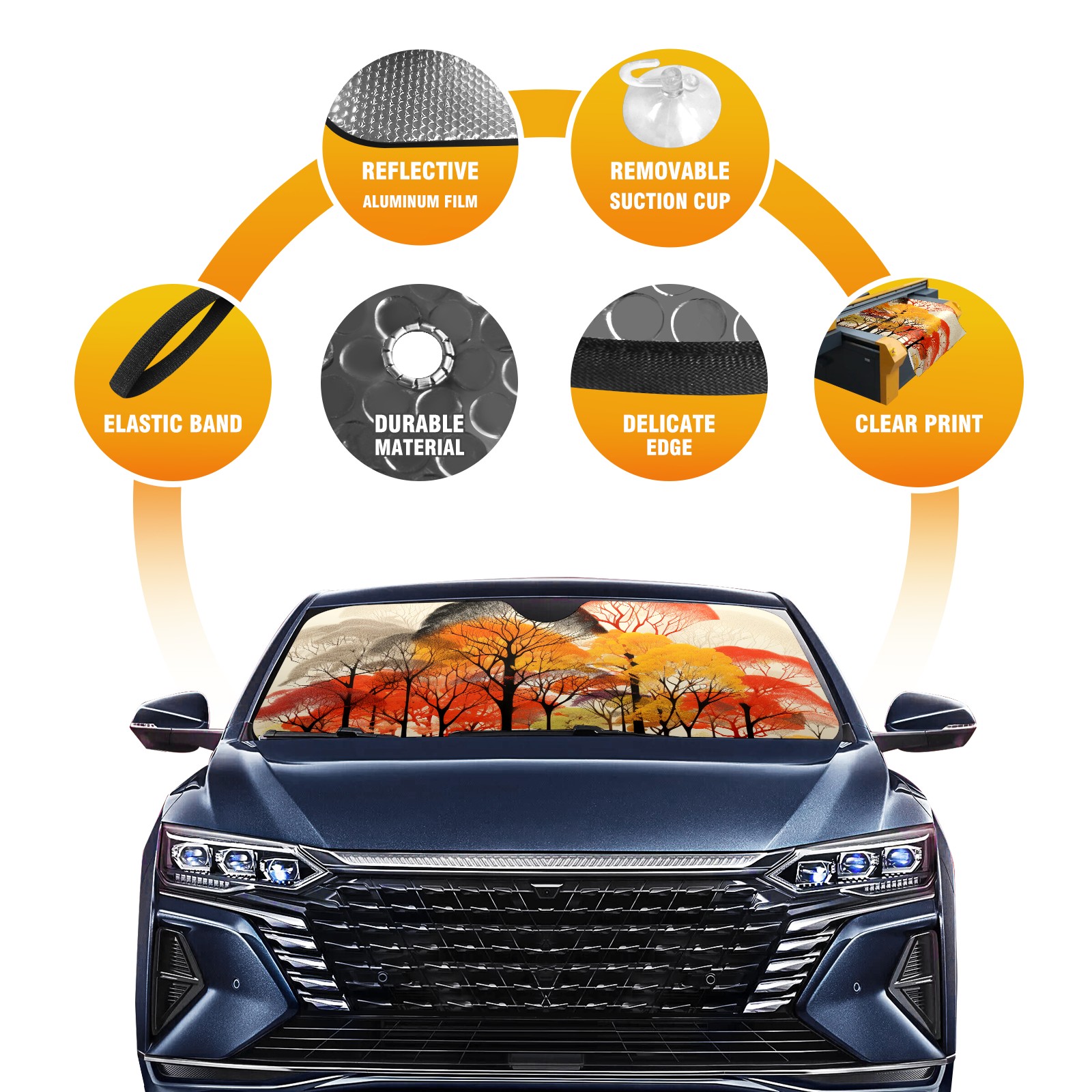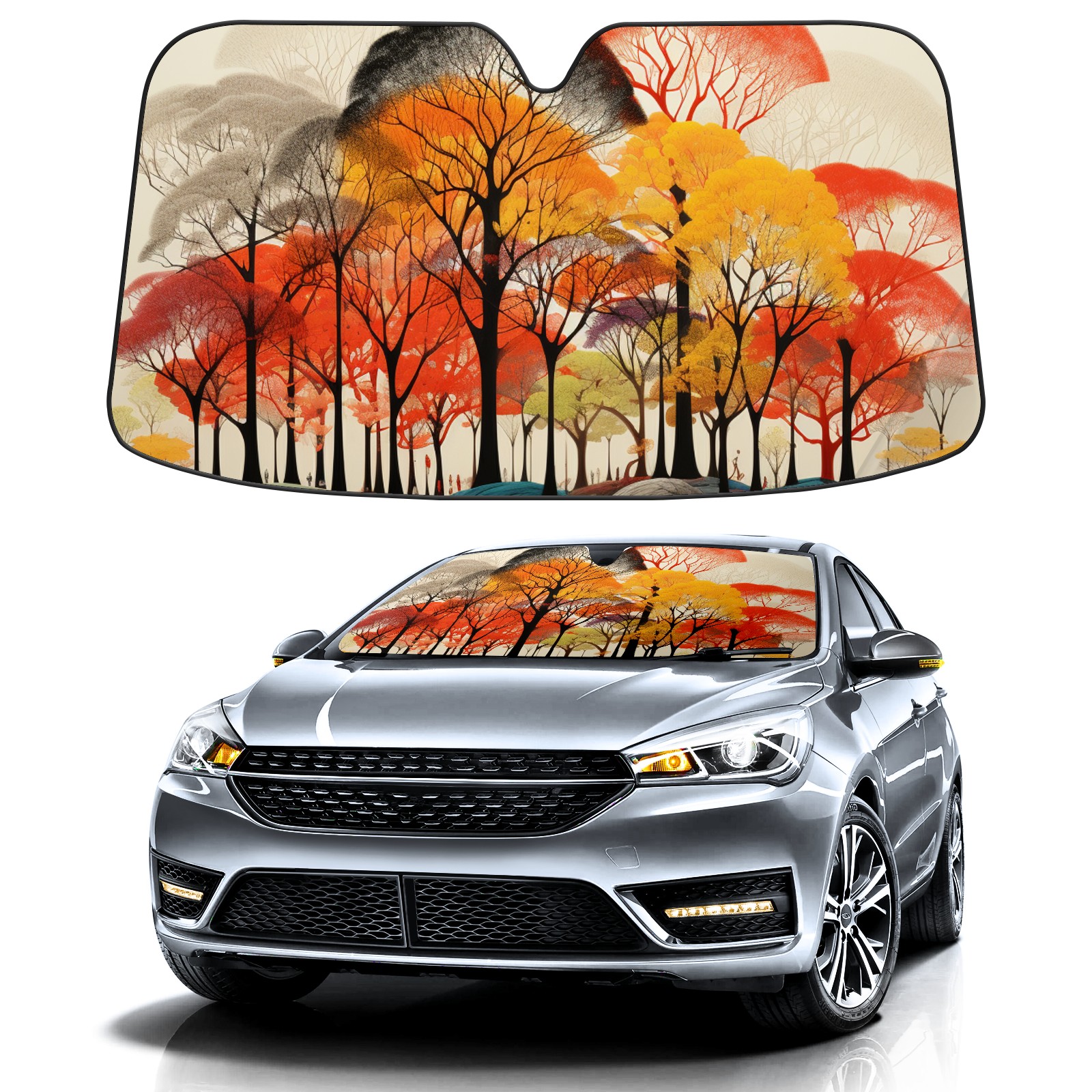 Car Windshield Sun Shade For Front Window Trees 2 Foldable Vehicle Windshield Car Sun Visor Covers Automotive Window Protector Car Camping Privacy Sun Blocker