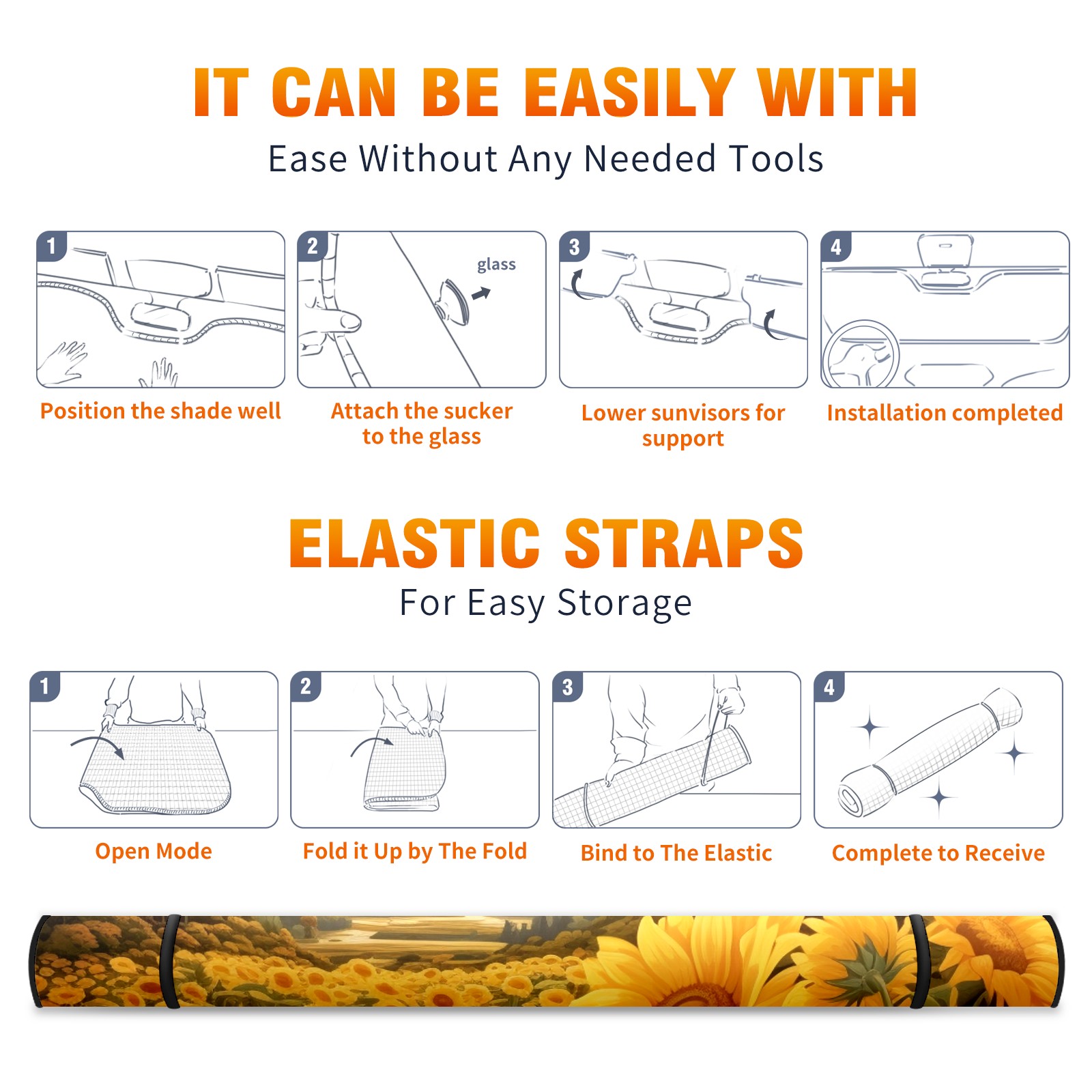 Car Windshield Sun Shade For Front Window Sunflower Foldable Vehicle Windshield Car Sun Visor Covers Automotive Window Protector Car Camping Privacy Sun Blocker