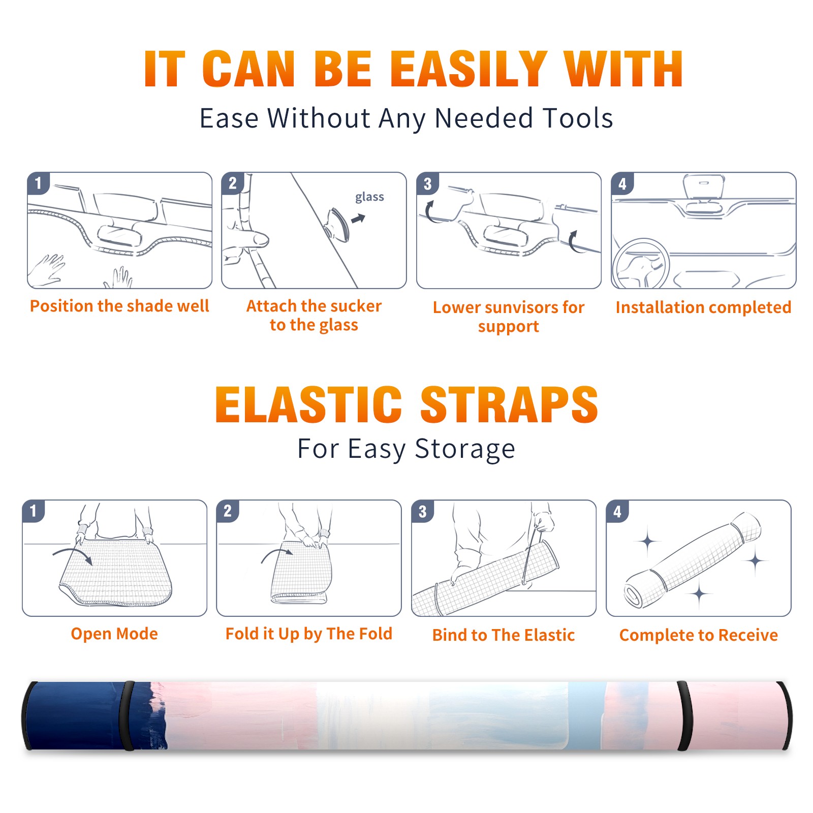 • Diameter /Size 63"L x 33.5"W Made from excellent materials which makes it sturdy and protects the car from the sun. Easy to use and pack. Makes the interior of the car cooler.You can easily stash the sunshade in the storage bag or store long term.It open and closes easy. Also the leather storage bag is durable and easy to put the umbrella back into.This windshield sunshade provides complete coverage and keeps your car interior cool under direct sun. It is easy to open and position under the windshield and around the rear-view mirror. Makes Your Car Easy To Identify, Perfect For Finding Your Car In Crowded Parking Lots And Garages.Great Choice: It Is A Great Gift For Dad, Boyfriend, Brother, Brother And Uncle, Friends, Classmates, Family And So On. Notice: Due To Difference Computer Monitors, The Color Maybe Slightly Different From Picture. As Different Measurement Methods, Measurement Data Will Float Within 2%.I Hope You Understand. If You Have Any Question About The Item Please Do Not Hesitate To Contact Us Immediately And We Will Give You A Satisfactory Reply Within 24 Hours.