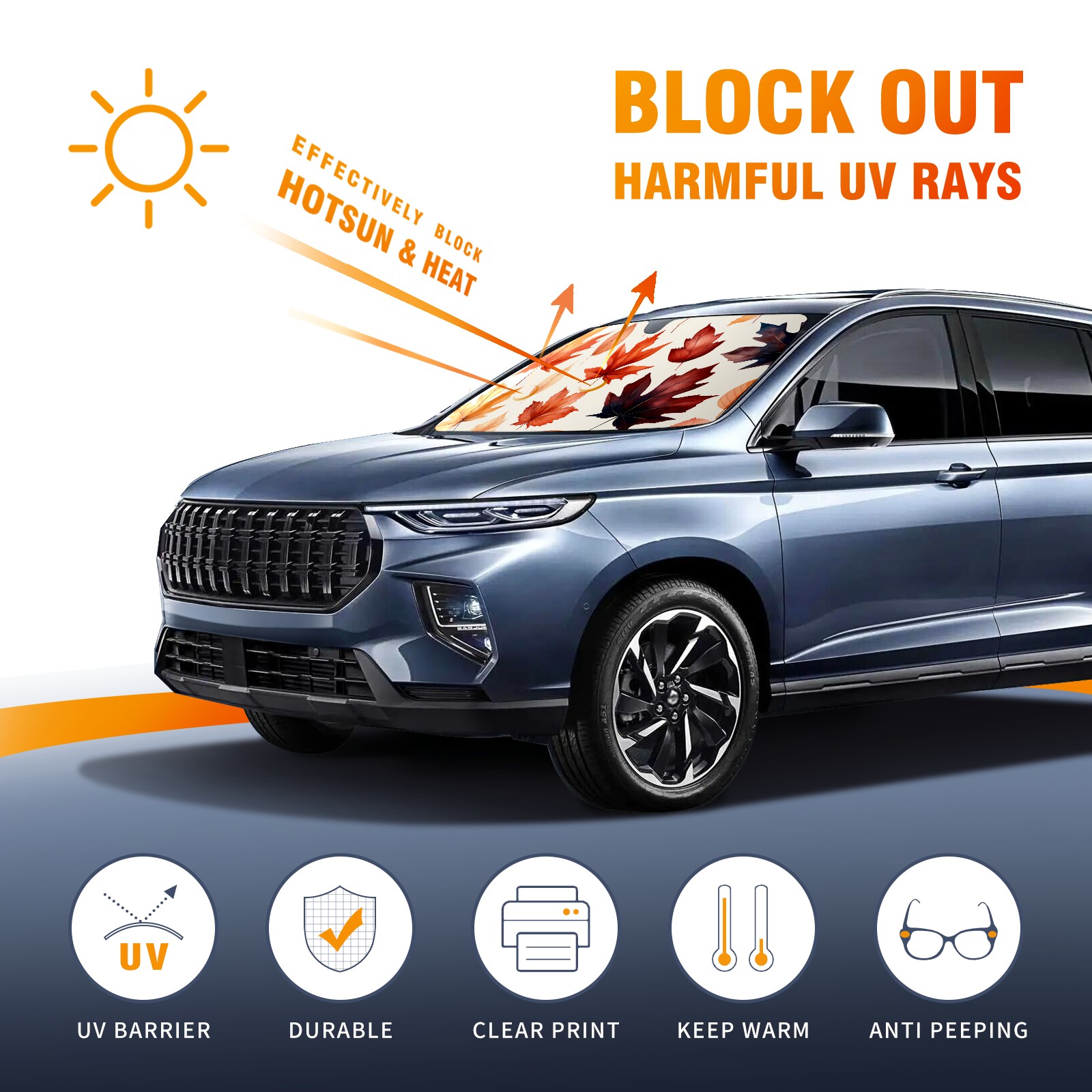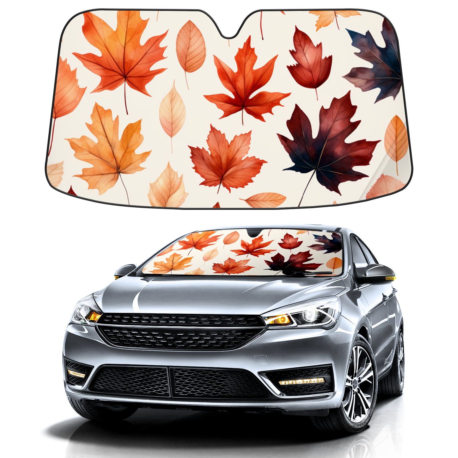 Car Windshield Sun Shade For Front Window Maple Leaf Foldable Vehicle Windshield Car Sun Visor Covers Automotive Window Protector Car Camping Privacy Sun Blocker