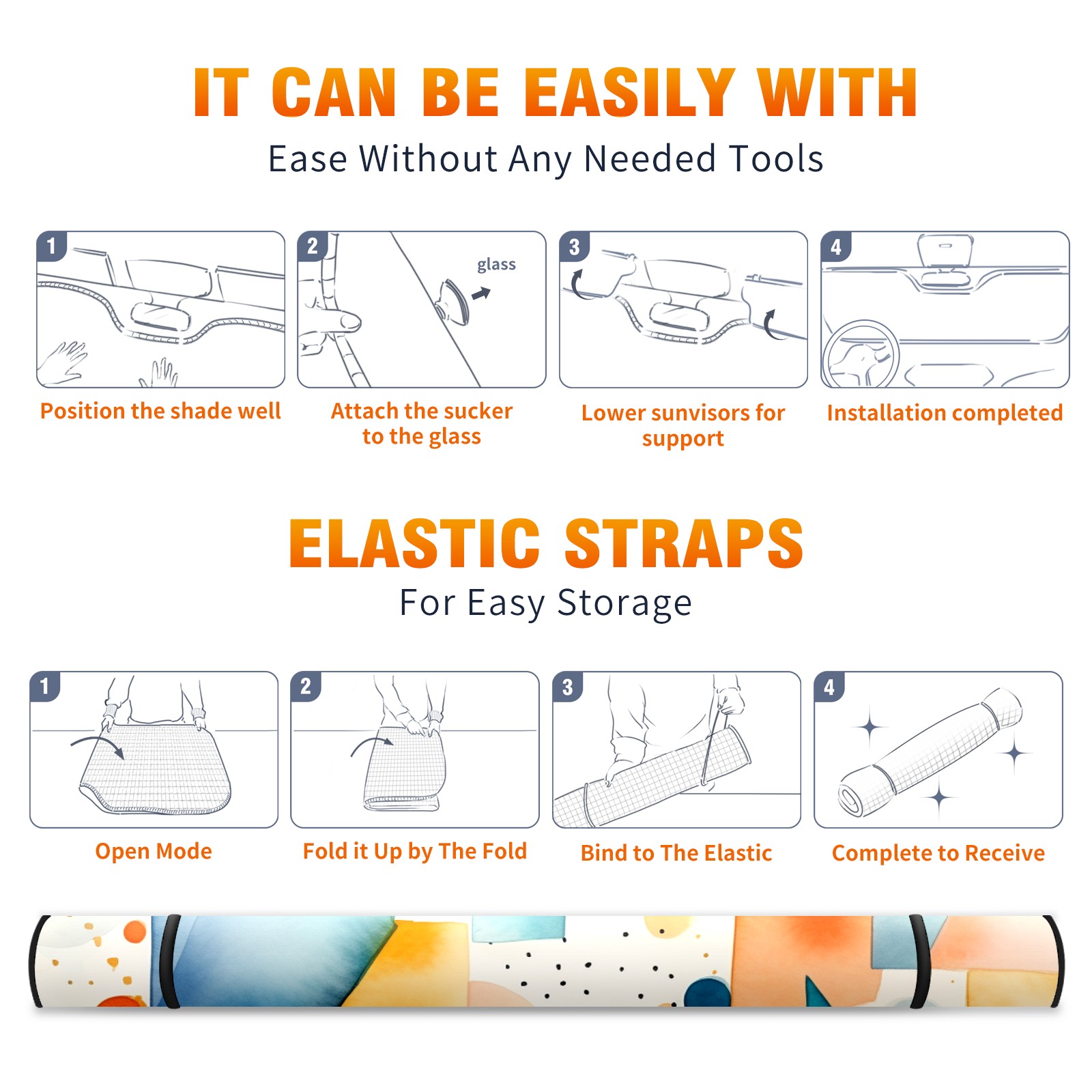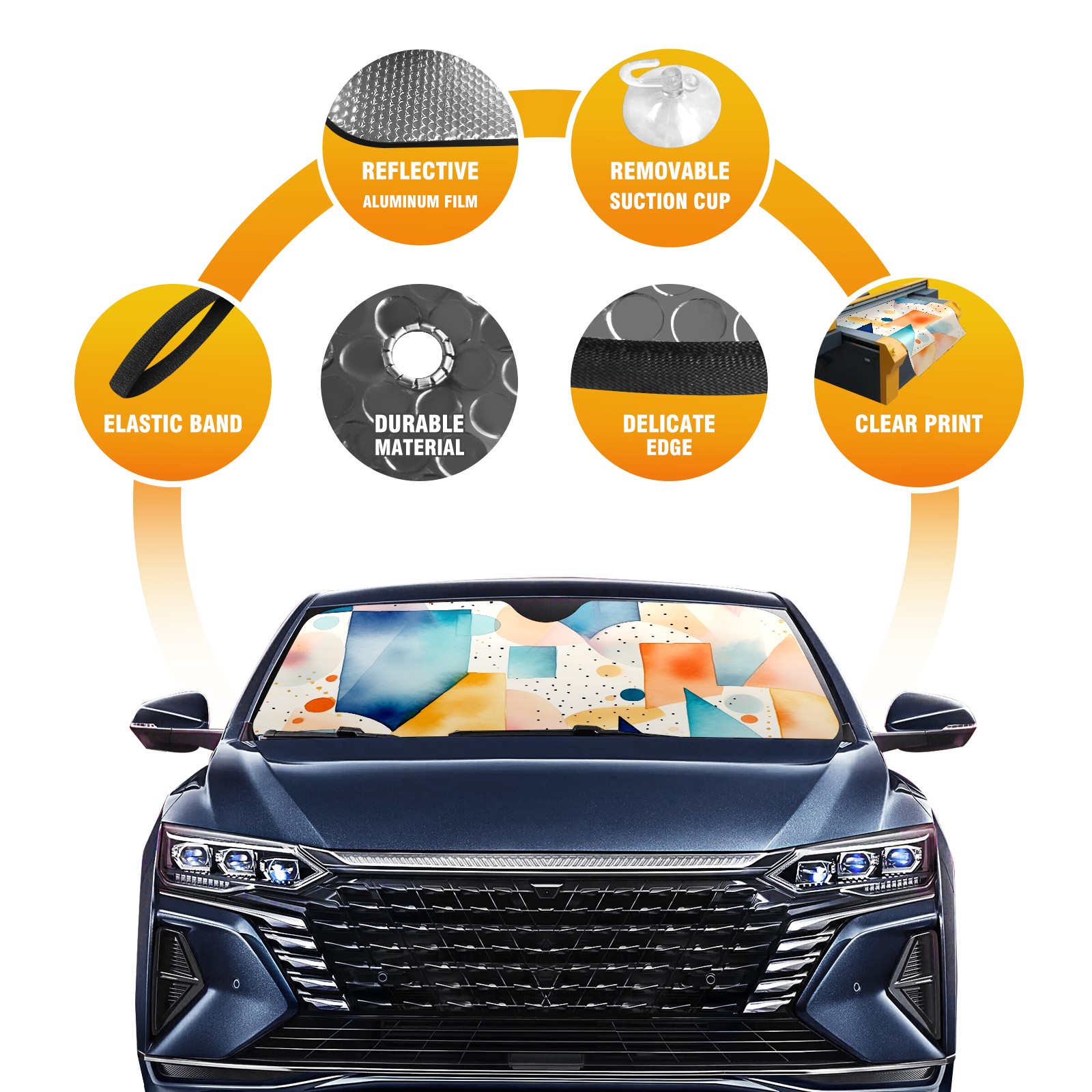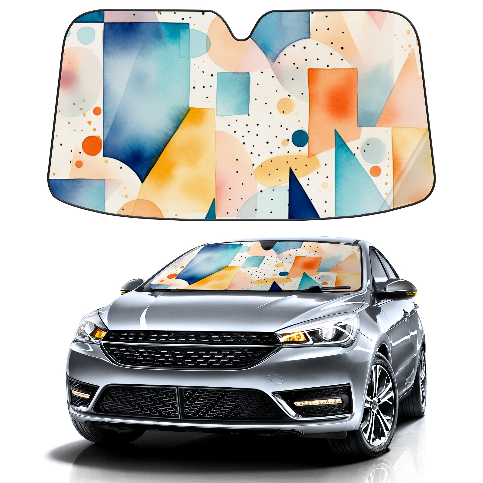 Car Windshield Sun Shade For Front Window Geometric Pictures Foldable Vehicle Windshield Car Sun Visor Covers Automotive Window Protector Car Camping Privacy Sun Blocker