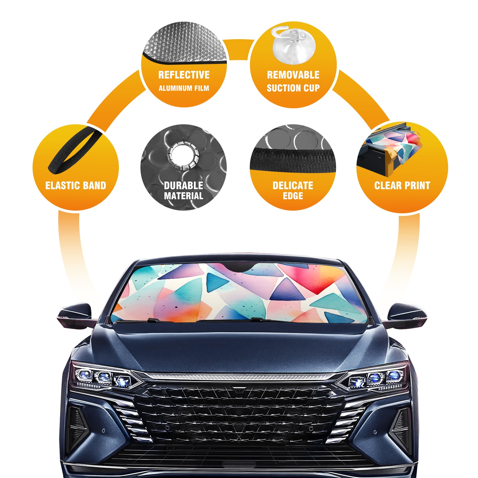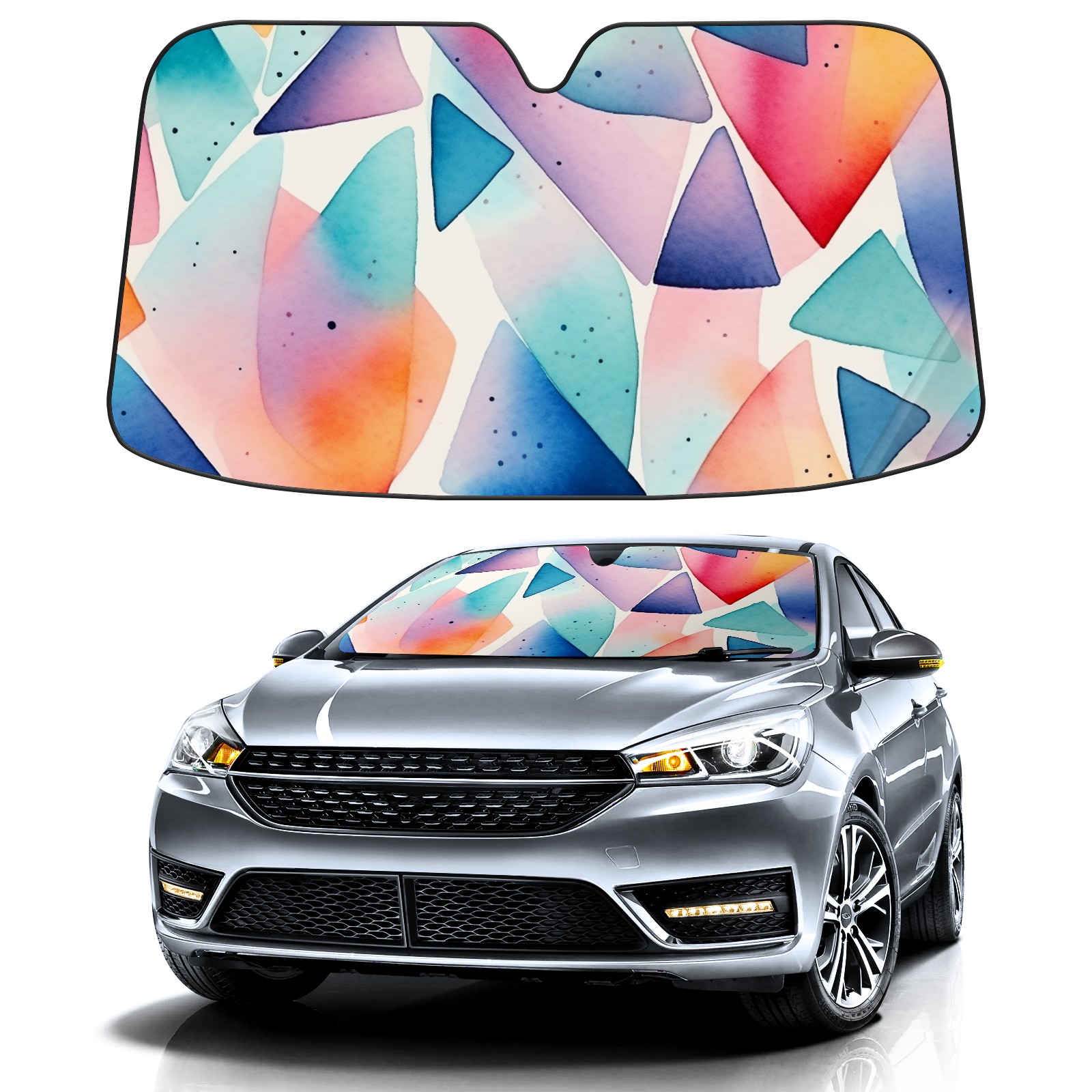 Car Windshield Sun Shade For Front Window Geometric Pictures 2 Foldable Vehicle Windshield Car Sun Visor Covers Automotive Window Protector Car Camping Privacy Sun Blocker