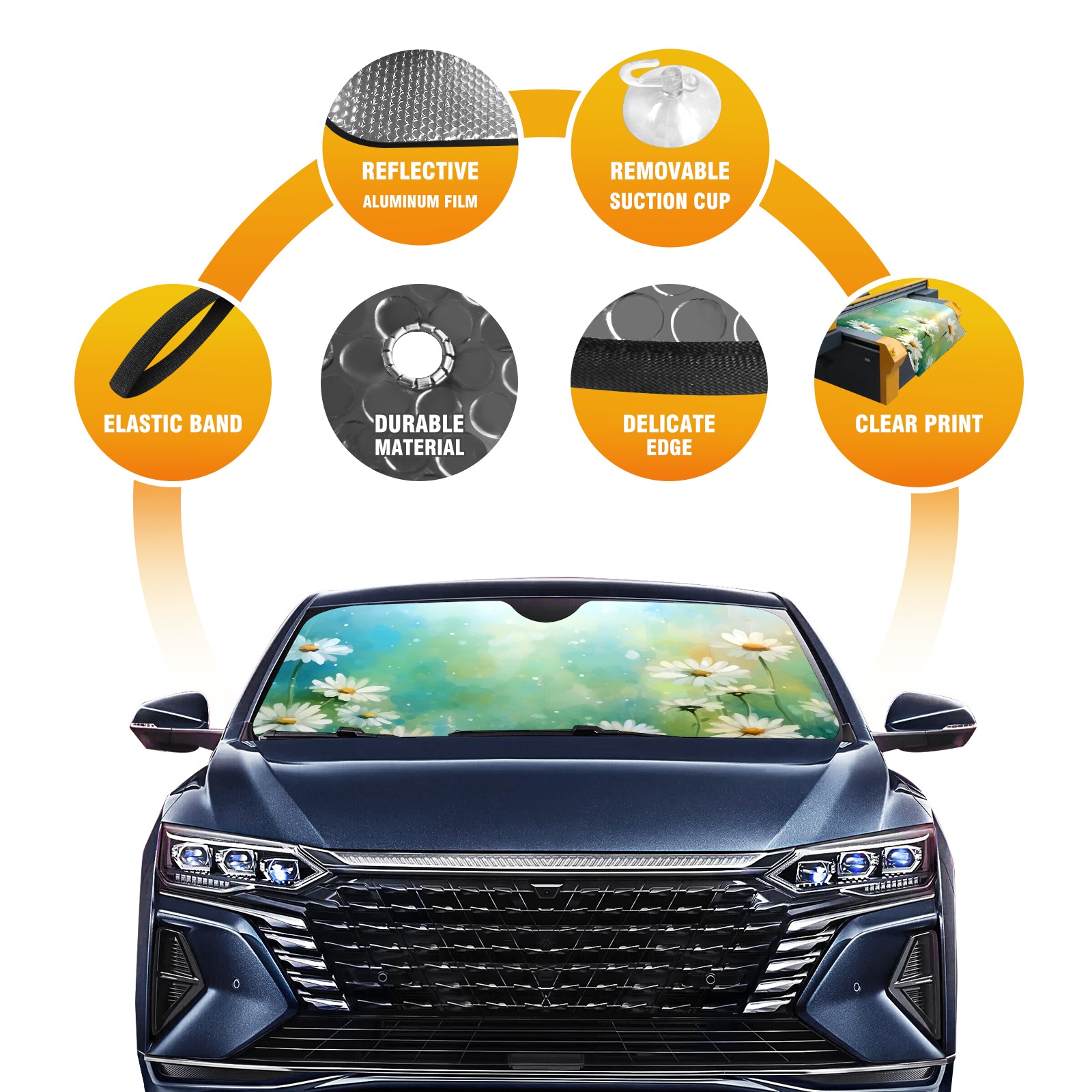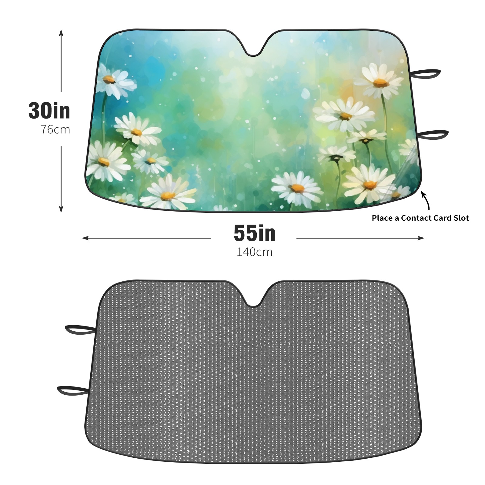 Diameter /Size 63"L x 33.5"W Made from excellent materials which makes it sturdy and protects the car from the sun. Easy to use and pack. Makes the interior of the car cooler.You can easily stash the sunshade in the storage bag or store long term.It open and closes easy. Also the leather storage bag is durable and easy to put the umbrella back into.This windshield sunshade provides complete coverage and keeps your car interior cool under direct sun. It is easy to open and position under the windshield and around the rear-view mirror. Makes Your Car Easy To Identify, Perfect For Finding Your Car In Crowded Parking Lots And Garages.Great Choice: It Is A Great Gift For Dad, Boyfriend, Brother, Brother And Uncle, Friends, Classmates, Family And So On. Notice: Due To Difference Computer Monitors, The Color Maybe Slightly Different From Picture. As Different Measurement Methods, Measurement Data Will Float Within 2%.I Hope You Understand. If You Have Any Question About The Item Please Do Not Hesitate To Contact Us Immediately And We Will Give You A Satisfactory Reply Within 24 Hours.