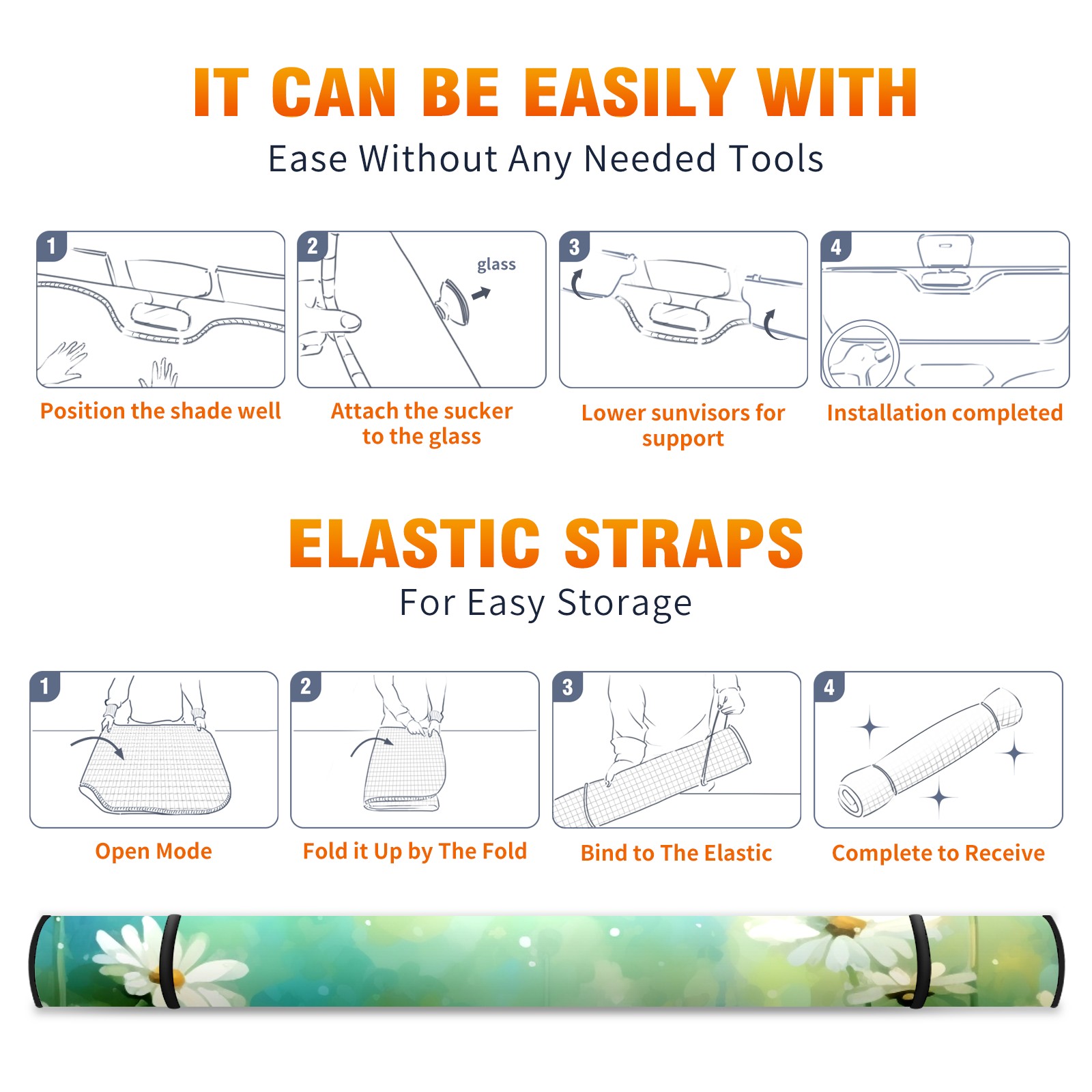 Car Windshield Sun Shade For Front Window Flower 14 Foldable Vehicle Windshield Car Sun Visor Covers Automotive Window Protector Car Camping Privacy Sun Blocker