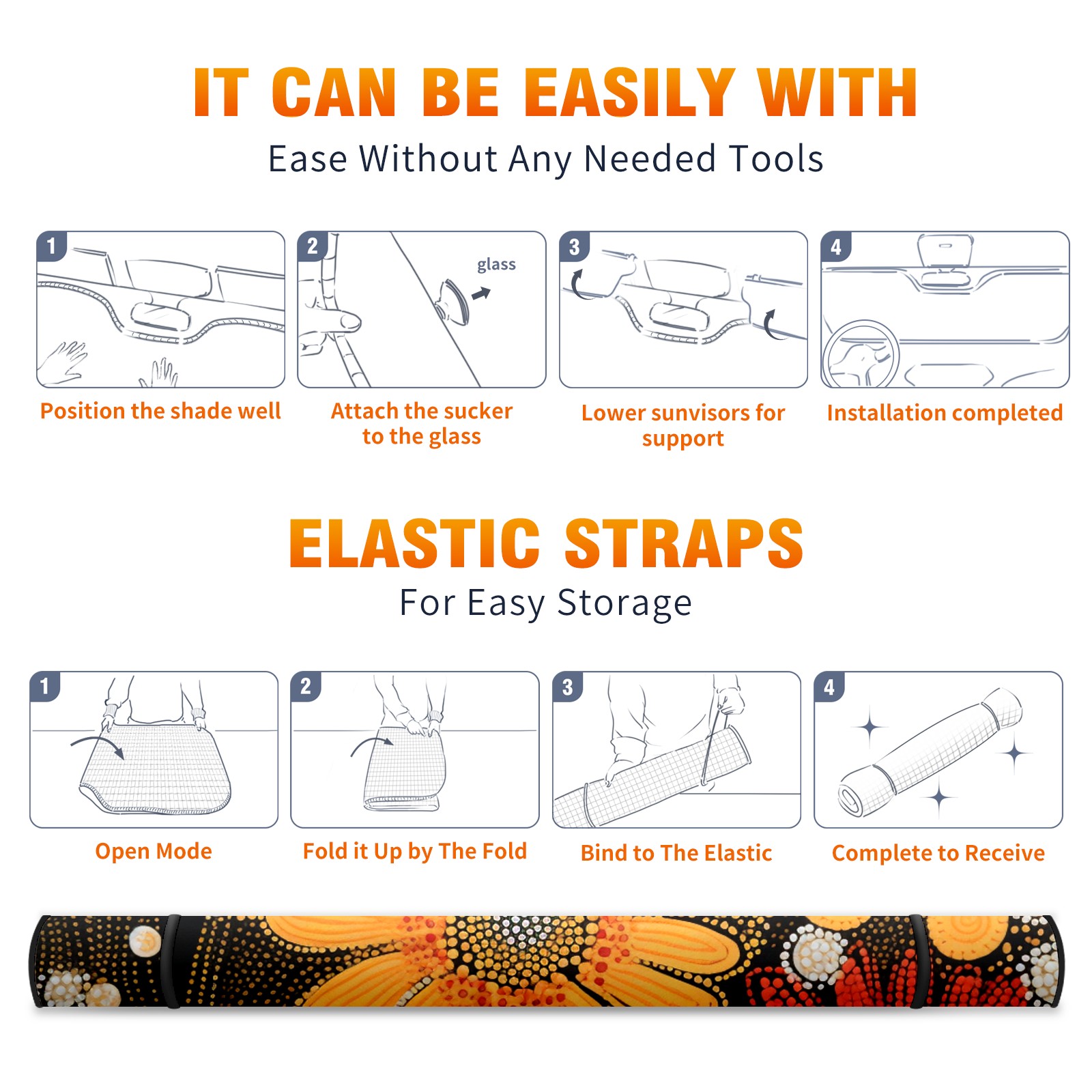 • Diameter /Size 63"L x 33.5"W Made from excellent materials which makes it sturdy and protects the car from the sun. Easy to use and pack. Makes the interior of the car cooler.You can easily stash the sunshade in the storage bag or store long term.It open and closes easy. Also the leather storage bag is durable and easy to put the umbrella back into.This windshield sunshade provides complete coverage and keeps your car interior cool under direct sun. It is easy to open and position under the windshield and around the rear-view mirror. Makes Your Car Easy To Identify, Perfect For Finding Your Car In Crowded Parking Lots And Garages.Great Choice: It Is A Great Gift For Dad, Boyfriend, Brother, Brother And Uncle, Friends, Classmates, Family And So On. Notice: Due To Difference Computer Monitors, The Color Maybe Slightly Different From Picture. As Different Measurement Methods, Measurement Data Will Float Within 2%.I Hope You Understand. If You Have Any Question About The Item Please Do Not Hesitate To Contact Us Immediately And We Will Give You A Satisfactory Reply Within 24 Hours.