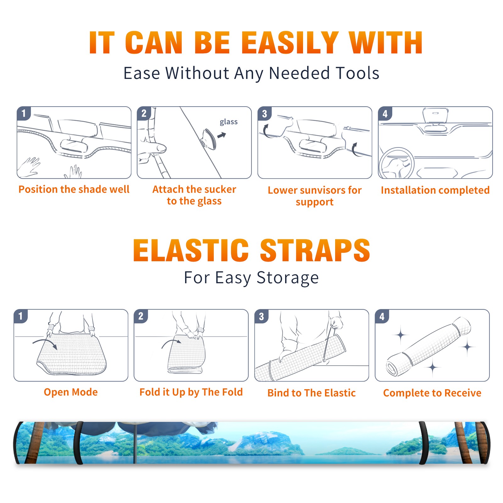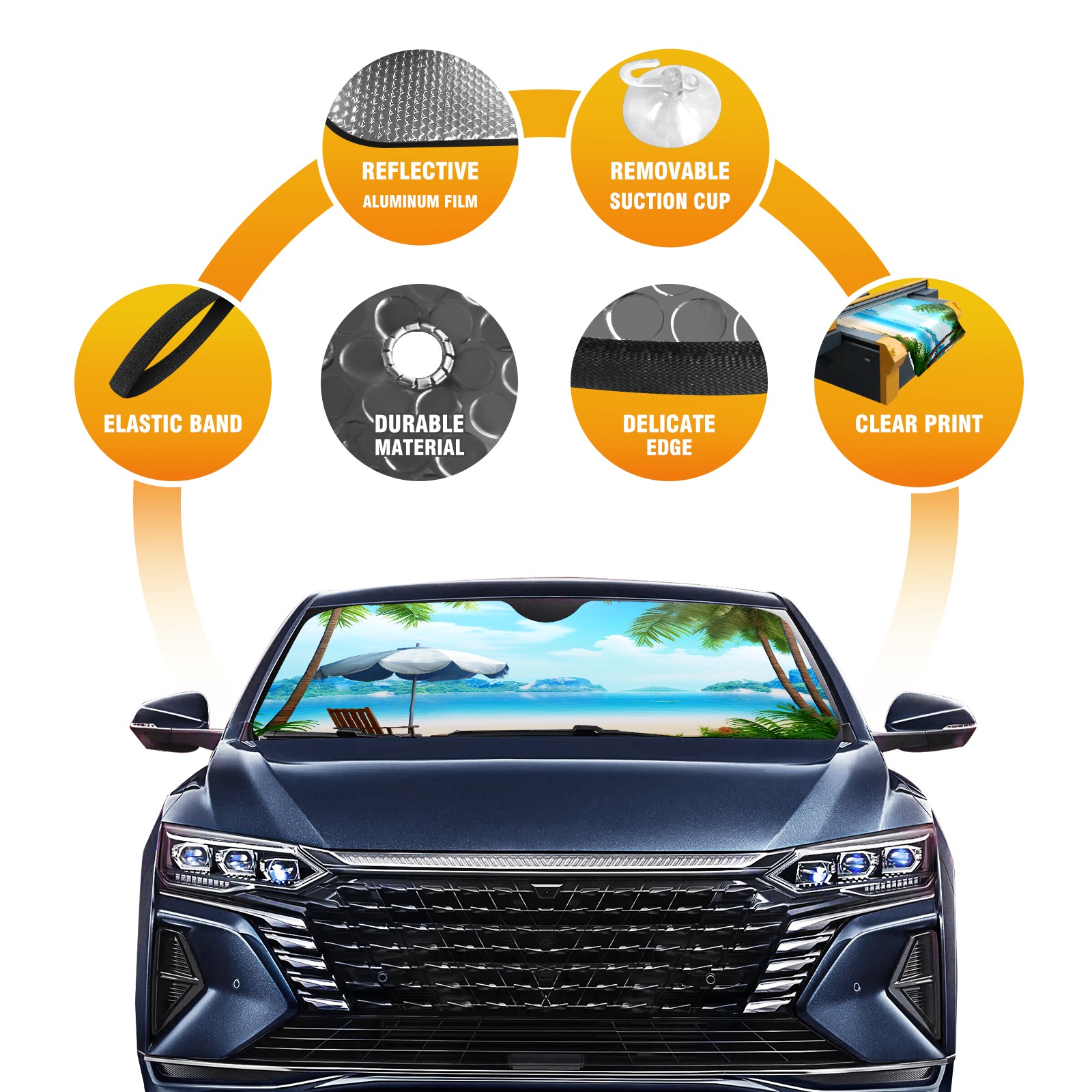 Car Windshield Sun Shade For Front Window Tropical Beach Foldable Vehicle Windshield Car Sun Visor Covers Automotive Window Protector Car Camping Privacy Sun Blocker