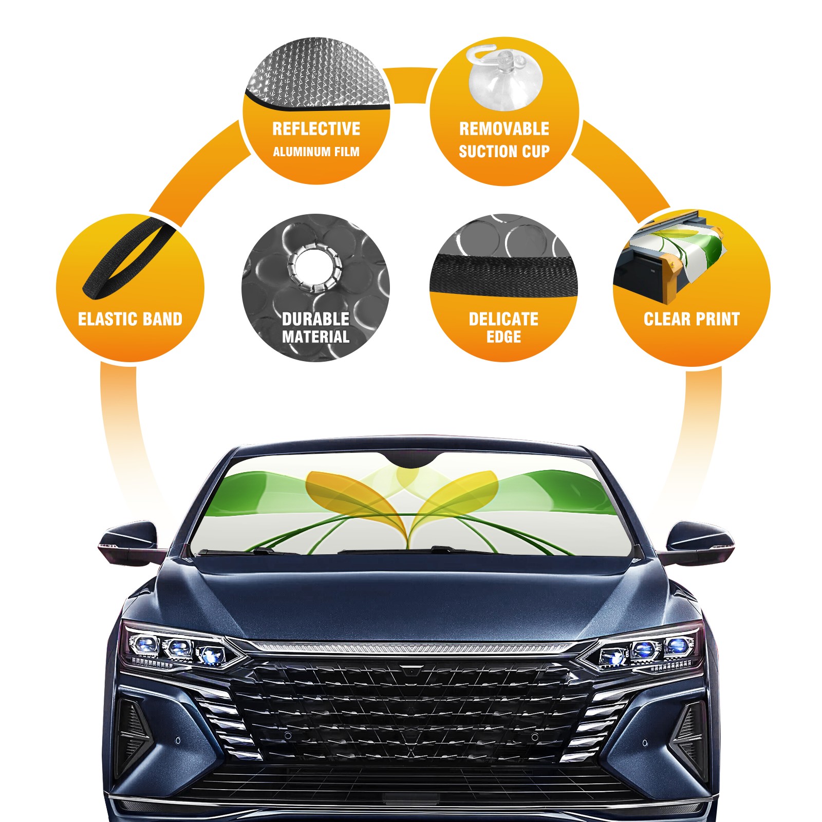 • Diameter /Size 63"L x 33.5"W Made from excellent materials which makes it sturdy and protects the car from the sun. Easy to use and pack. Makes the interior of the car cooler.You can easily stash the sunshade in the storage bag or store long term.It open and closes easy. Also the leather storage bag is durable and easy to put the umbrella back into.This windshield sunshade provides complete coverage and keeps your car interior cool under direct sun. It is easy to open and position under the windshield and around the rear-view mirror. Makes Your Car Easy To Identify, Perfect For Finding Your Car In Crowded Parking Lots And Garages.Great Choice: It Is A Great Gift For Dad, Boyfriend, Brother, Brother And Uncle, Friends, Classmates, Family And So On. Notice: Due To Difference Computer Monitors, The Color Maybe Slightly Different From Picture. As Different Measurement Methods, Measurement Data Will Float Within 2%.I Hope You Understand. If You Have Any Question About The Item Please Do Not Hesitate To Contact Us Immediately And We Will Give You A Satisfactory Reply Within 24 Hours.