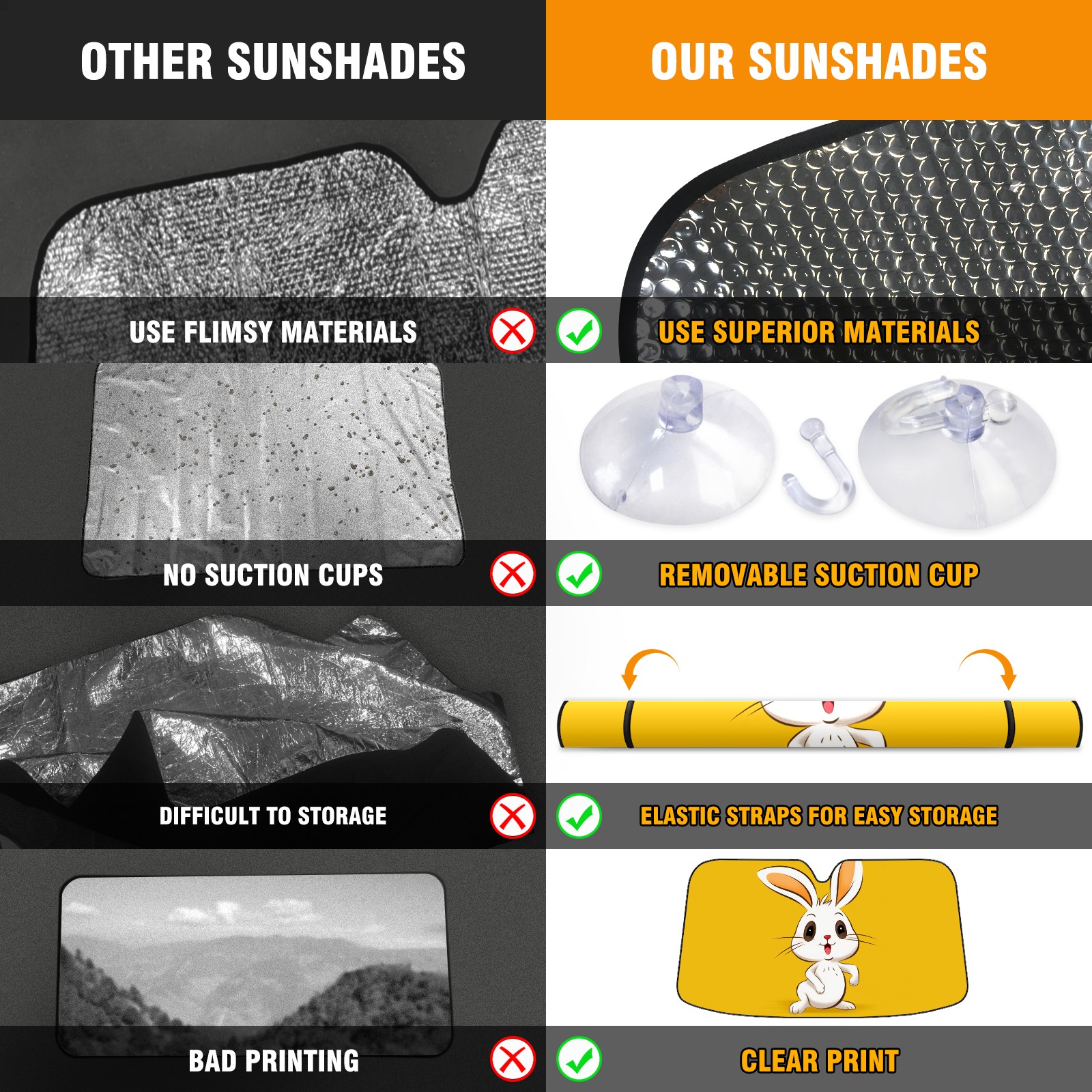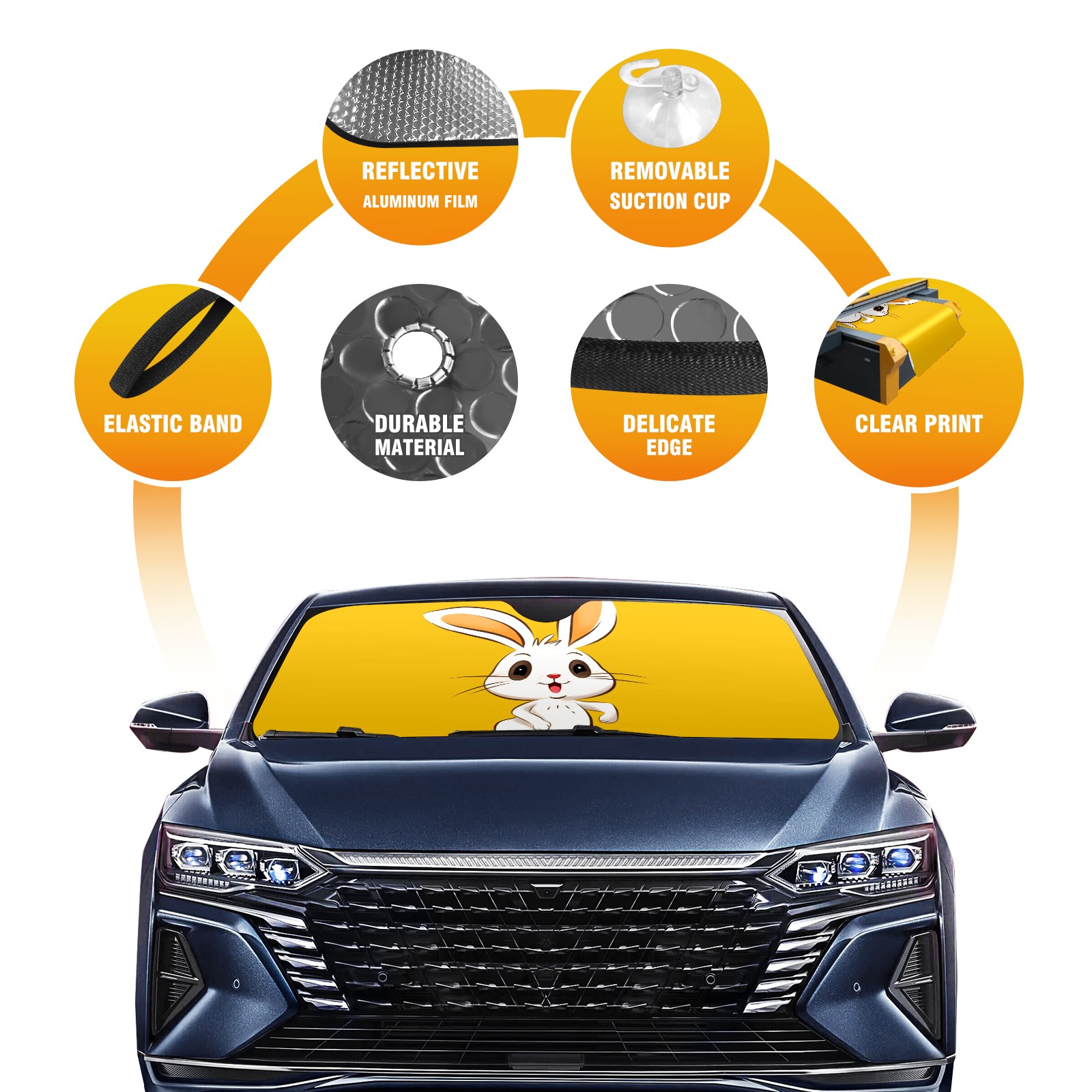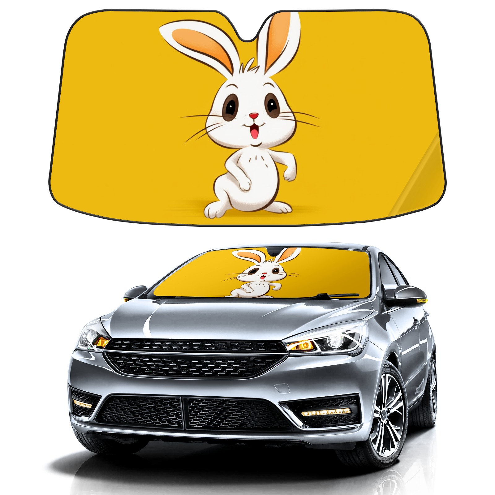 Car Windshield Sun Shade For Front Window Little Rabbit Foldable Vehicle Windshield Car Sun Visor Covers Automotive Window Protector Car Camping Privacy Sun Blocker