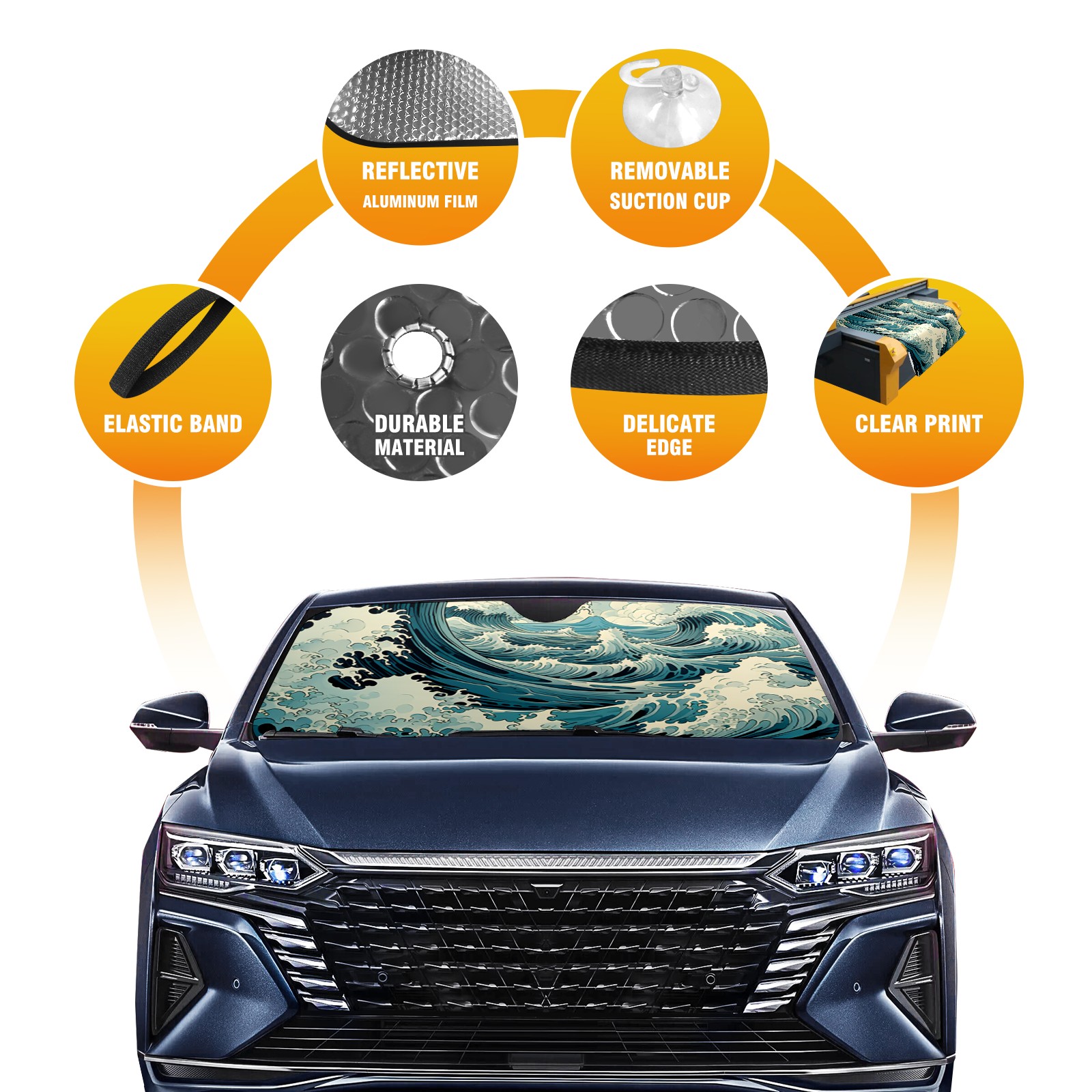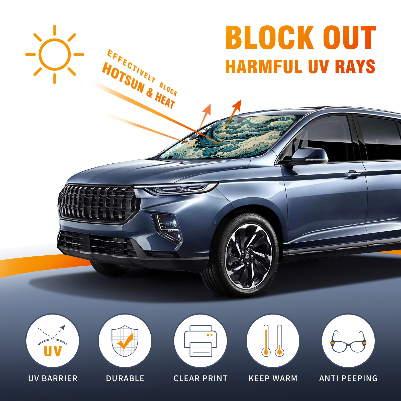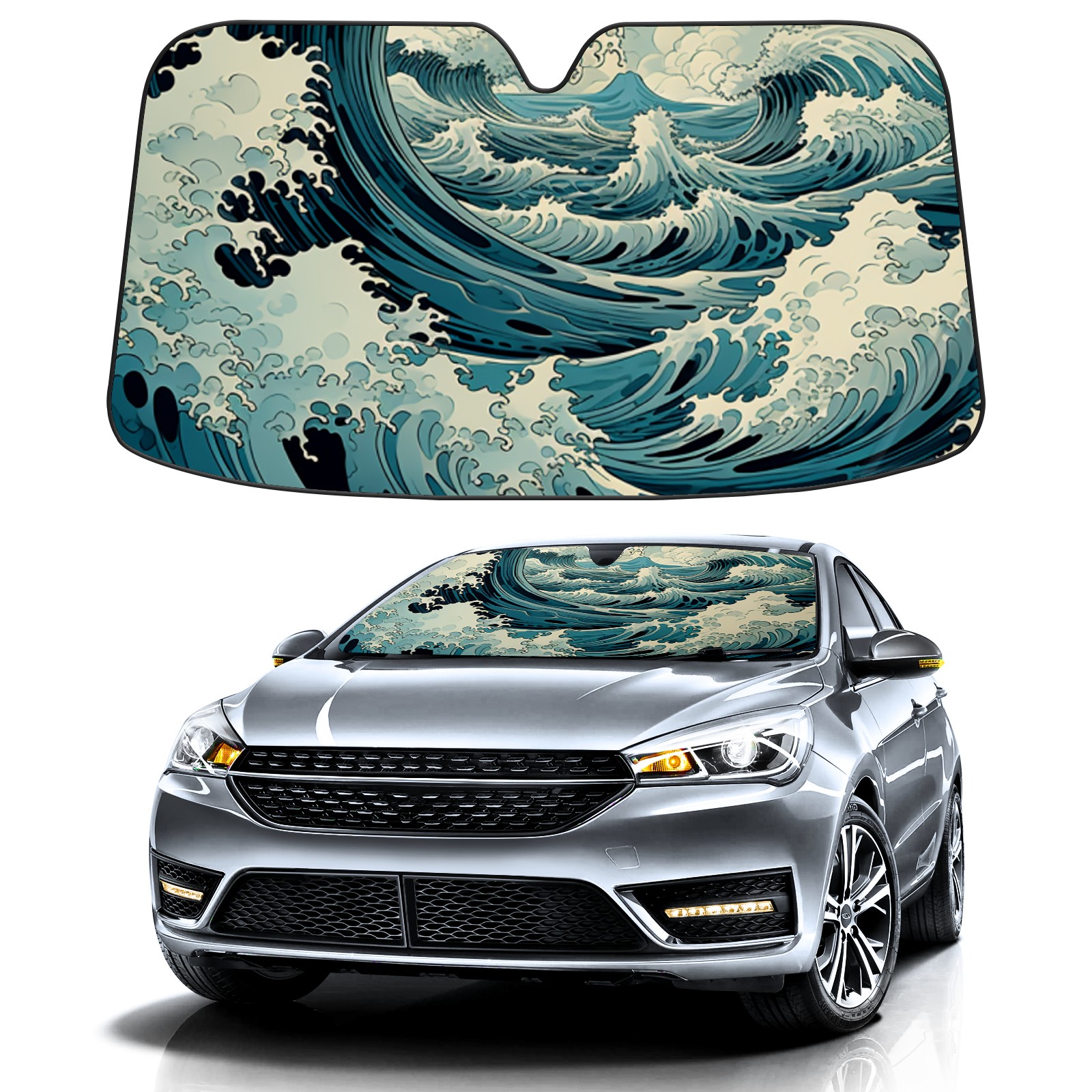 Car Windshield Sun Shade For Front Window Ocean Foldable Vehicle Windshield Car Sun Visor Covers Automotive Window Protector Car Camping Privacy Sun Blocker