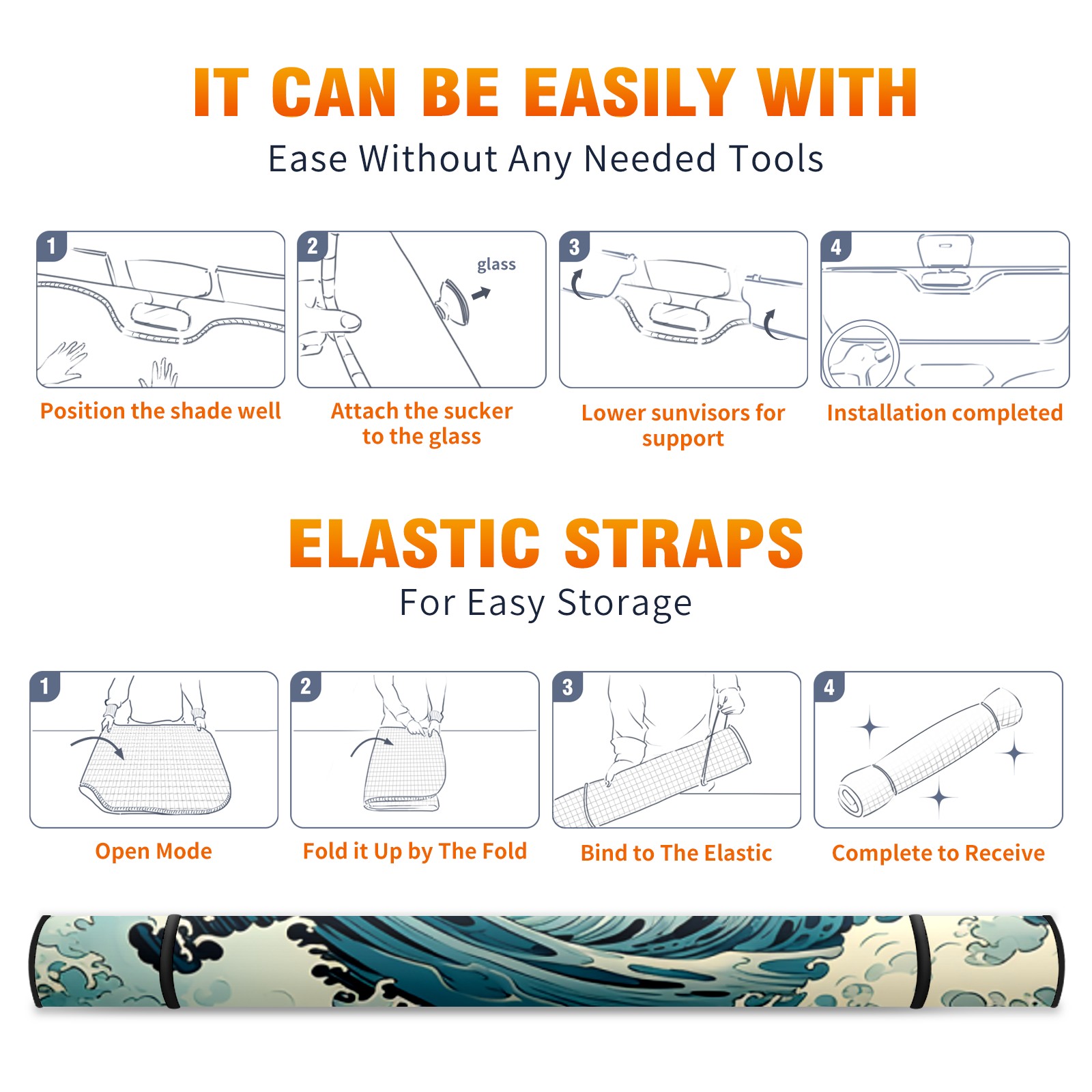 • Diameter /Size 63"L x 33.5"W Made from excellent materials which makes it sturdy and protects the car from the sun. Easy to use and pack. Makes the interior of the car cooler.You can easily stash the sunshade in the storage bag or store long term.It open and closes easy. Also the leather storage bag is durable and easy to put the umbrella back into.This windshield sunshade provides complete coverage and keeps your car interior cool under direct sun. It is easy to open and position under the windshield and around the rear-view mirror. Makes Your Car Easy To Identify, Perfect For Finding Your Car In Crowded Parking Lots And Garages.Great Choice: It Is A Great Gift For Dad, Boyfriend, Brother, Brother And Uncle, Friends, Classmates, Family And So On. Notice: Due To Difference Computer Monitors, The Color Maybe Slightly Different From Picture. As Different Measurement Methods, Measurement Data Will Float Within 2%.I Hope You Understand. If You Have Any Question About The Item Please Do Not Hesitate To Contact Us Immediately And We Will Give You A Satisfactory Reply Within 24 Hours.
