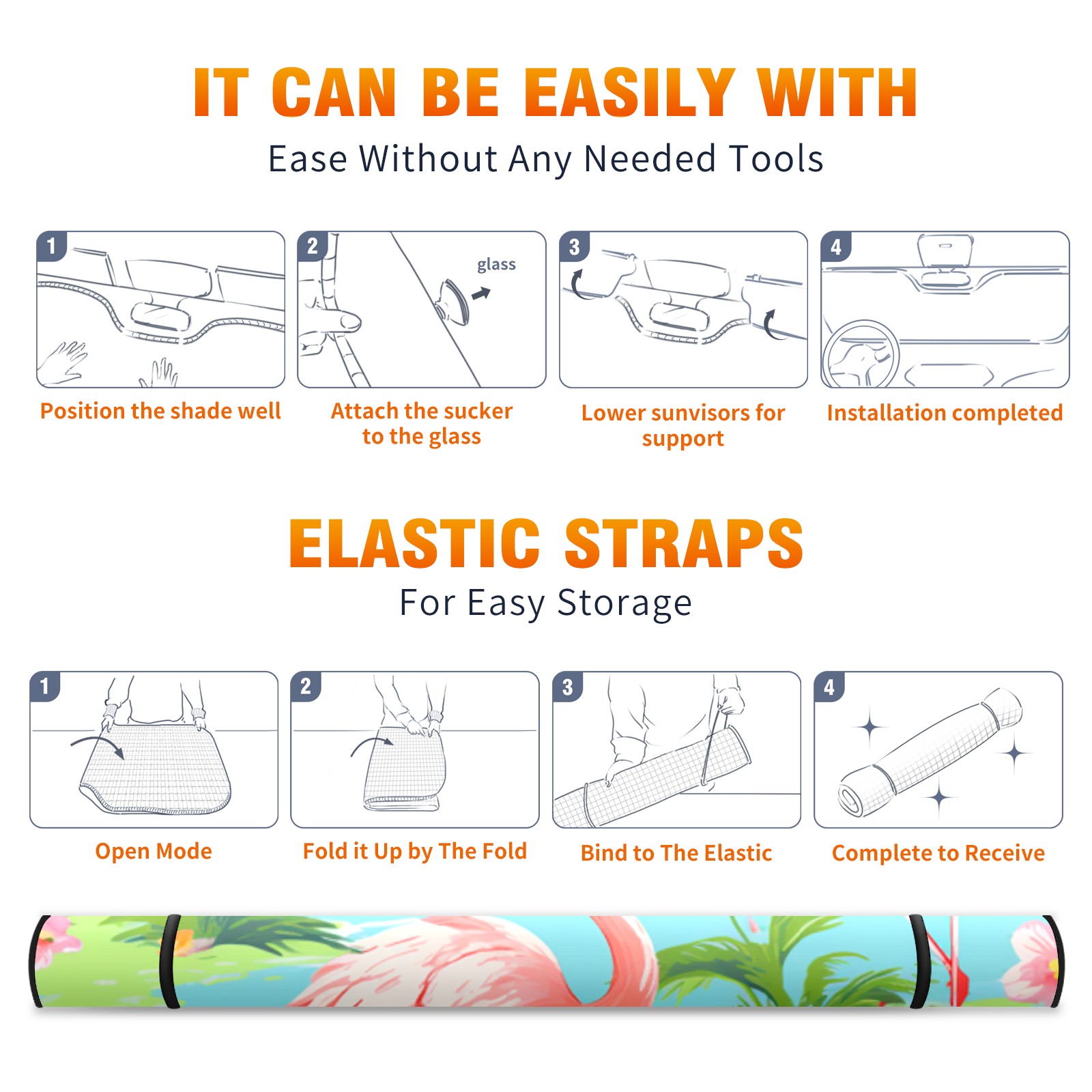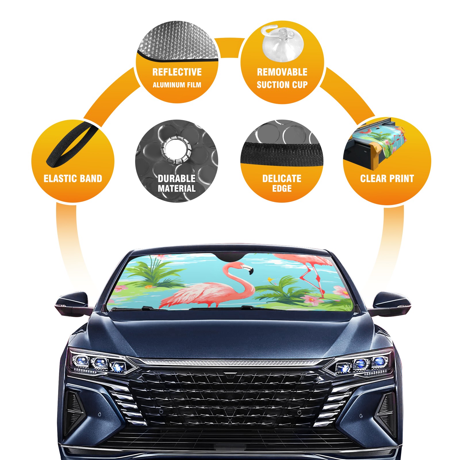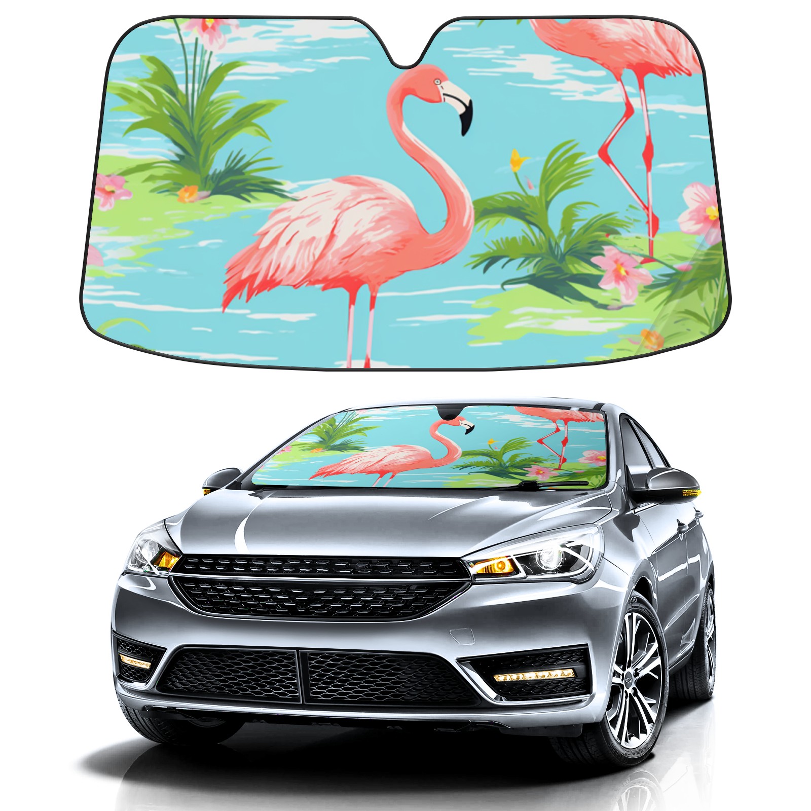 Car Windshield Sun Shade For Front Window Flamingo Foldable Vehicle Windshield Car Sun Visor Covers Automotive Window Protector Car Camping Privacy Sun Blocker