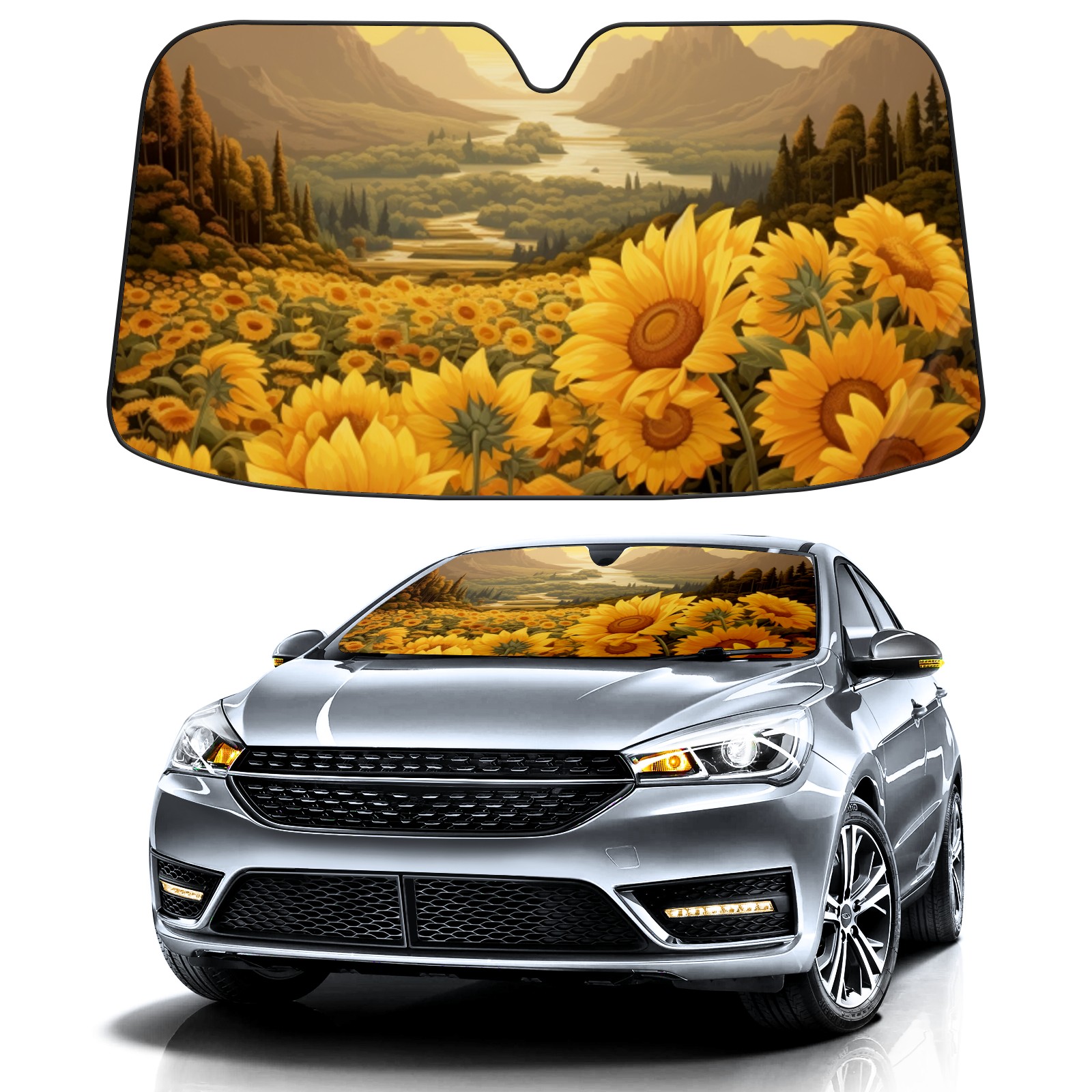 Car Windshield Sun Shade For Front Window Sunflower Foldable Vehicle Windshield Car Sun Visor Covers Automotive Window Protector Car Camping Privacy Sun Blocker