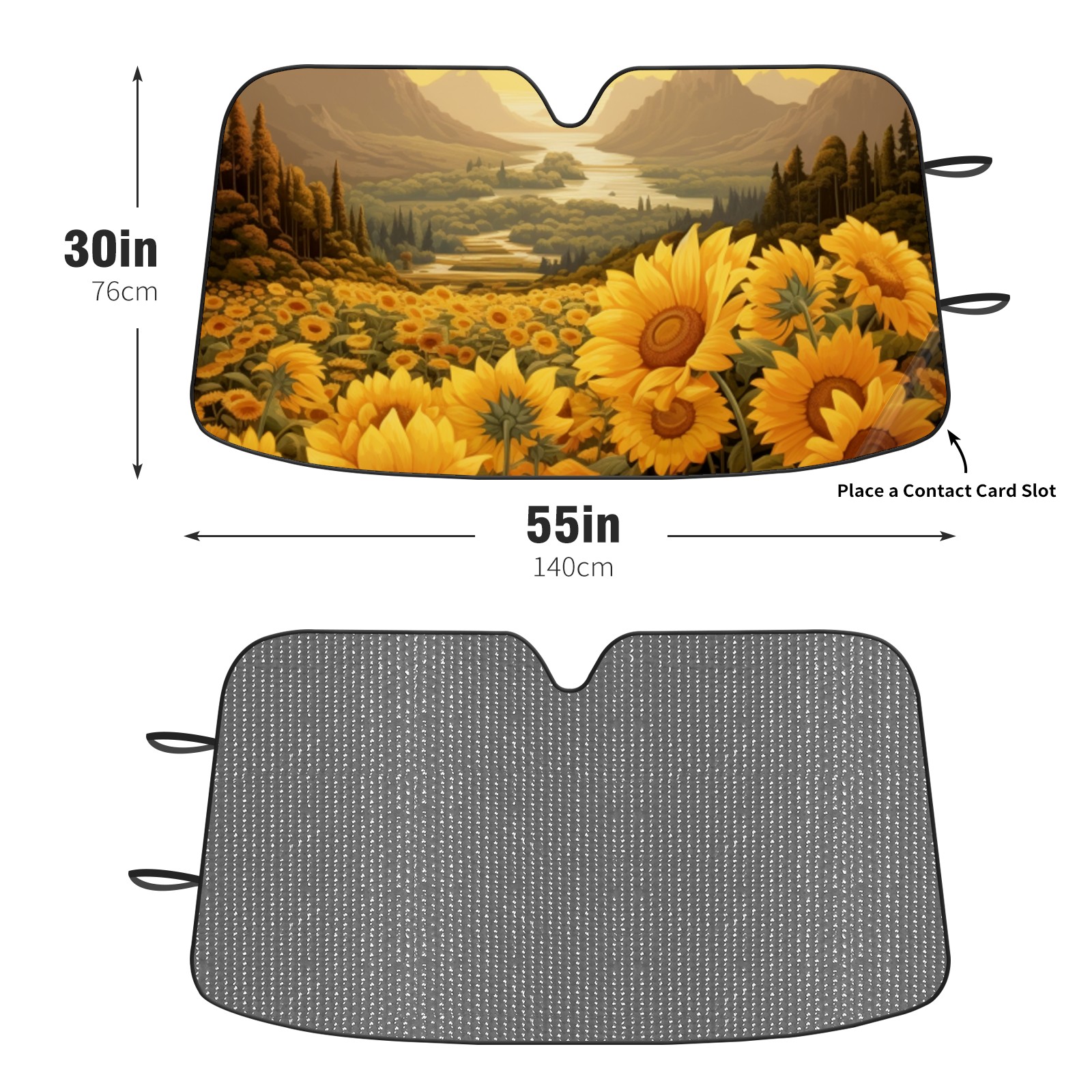 Diameter /Size 63"L x 33.5"W Made from excellent materials which makes it sturdy and protects the car from the sun. Easy to use and pack. Makes the interior of the car cooler.You can easily stash the sunshade in the storage bag or store long term.It open and closes easy. Also the leather storage bag is durable and easy to put the umbrella back into.This windshield sunshade provides complete coverage and keeps your car interior cool under direct sun. It is easy to open and position under the windshield and around the rear-view mirror. Makes Your Car Easy To Identify, Perfect For Finding Your Car In Crowded Parking Lots And Garages.Great Choice: It Is A Great Gift For Dad, Boyfriend, Brother, Brother And Uncle, Friends, Classmates, Family And So On. Notice: Due To Difference Computer Monitors, The Color Maybe Slightly Different From Picture. As Different Measurement Methods, Measurement Data Will Float Within 2%.I Hope You Understand. If You Have Any Question About The Item Please Do Not Hesitate To Contact Us Immediately And We Will Give You A Satisfactory Reply Within 24 Hours.