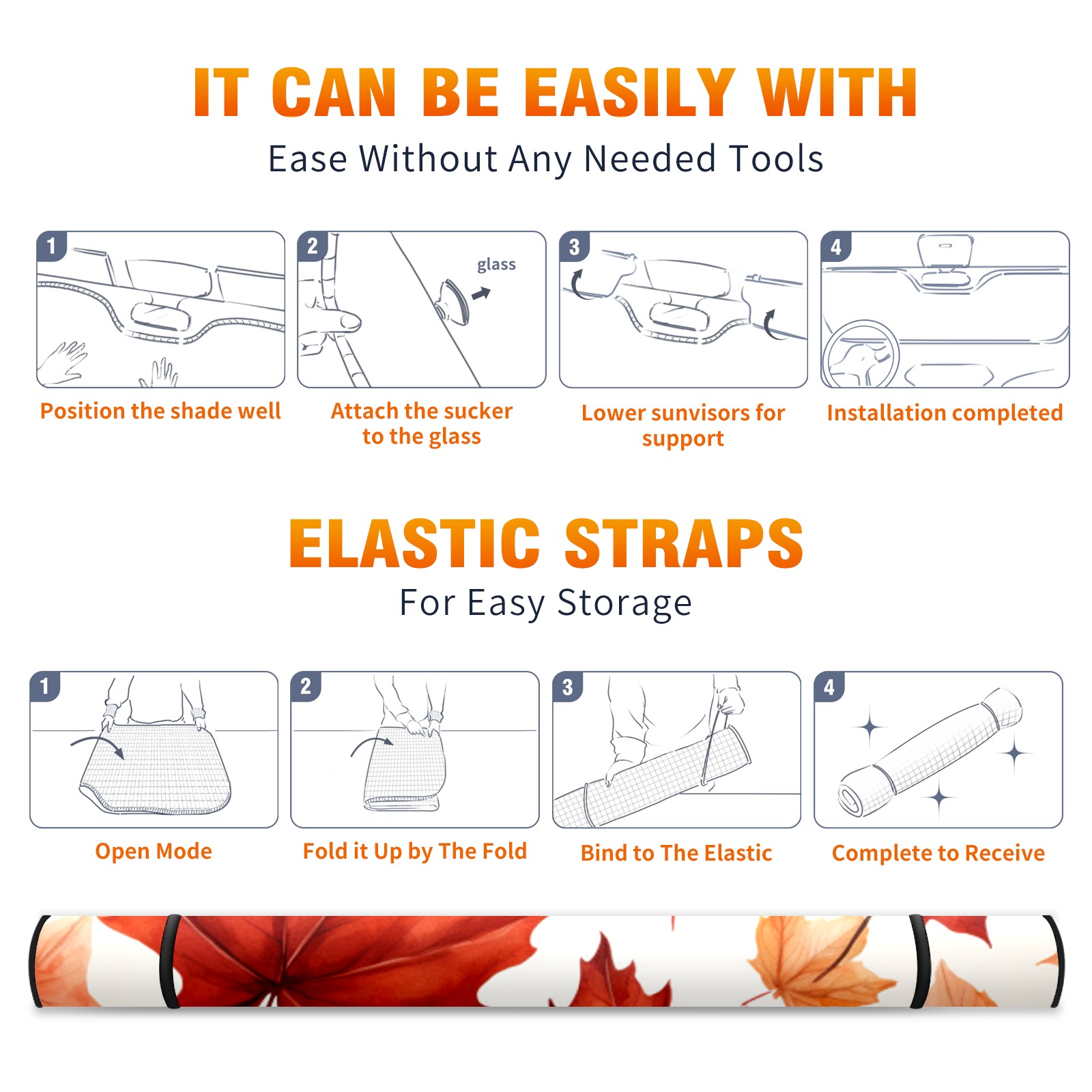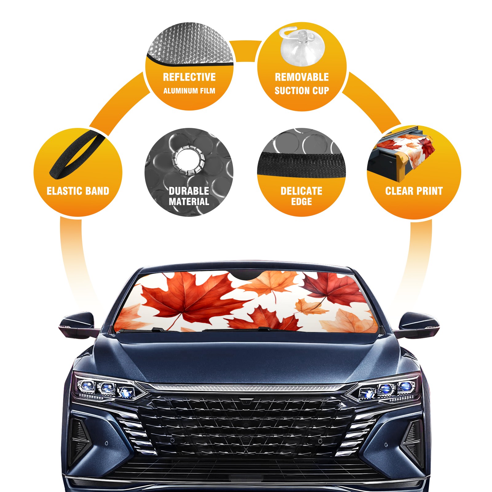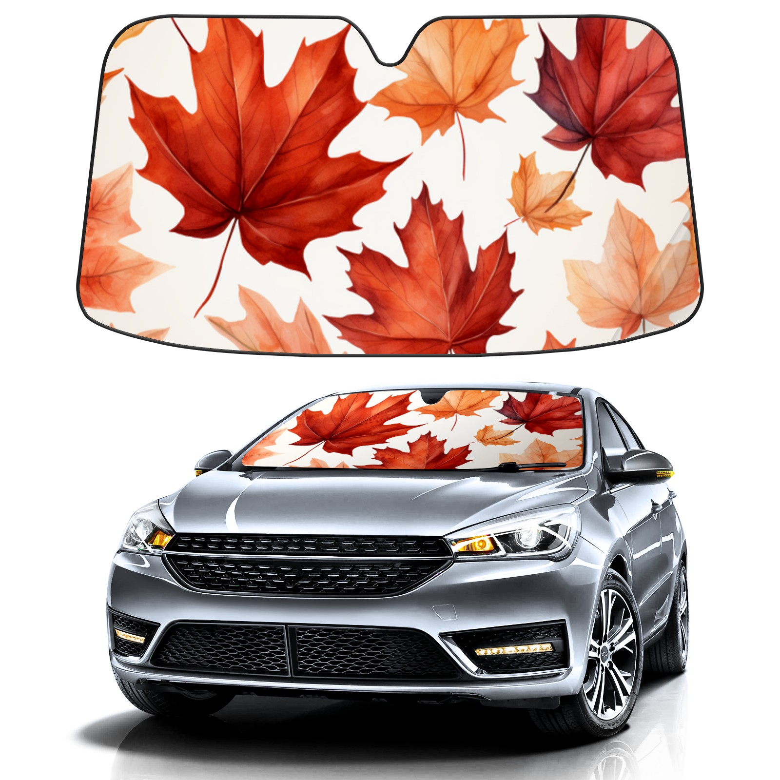 Car Windshield Sun Shade For Front Window Maple Leaf Foldable Vehicle Windshield Car Sun Visor Covers Automotive Window Protector Car Camping Privacy Sun Blocker