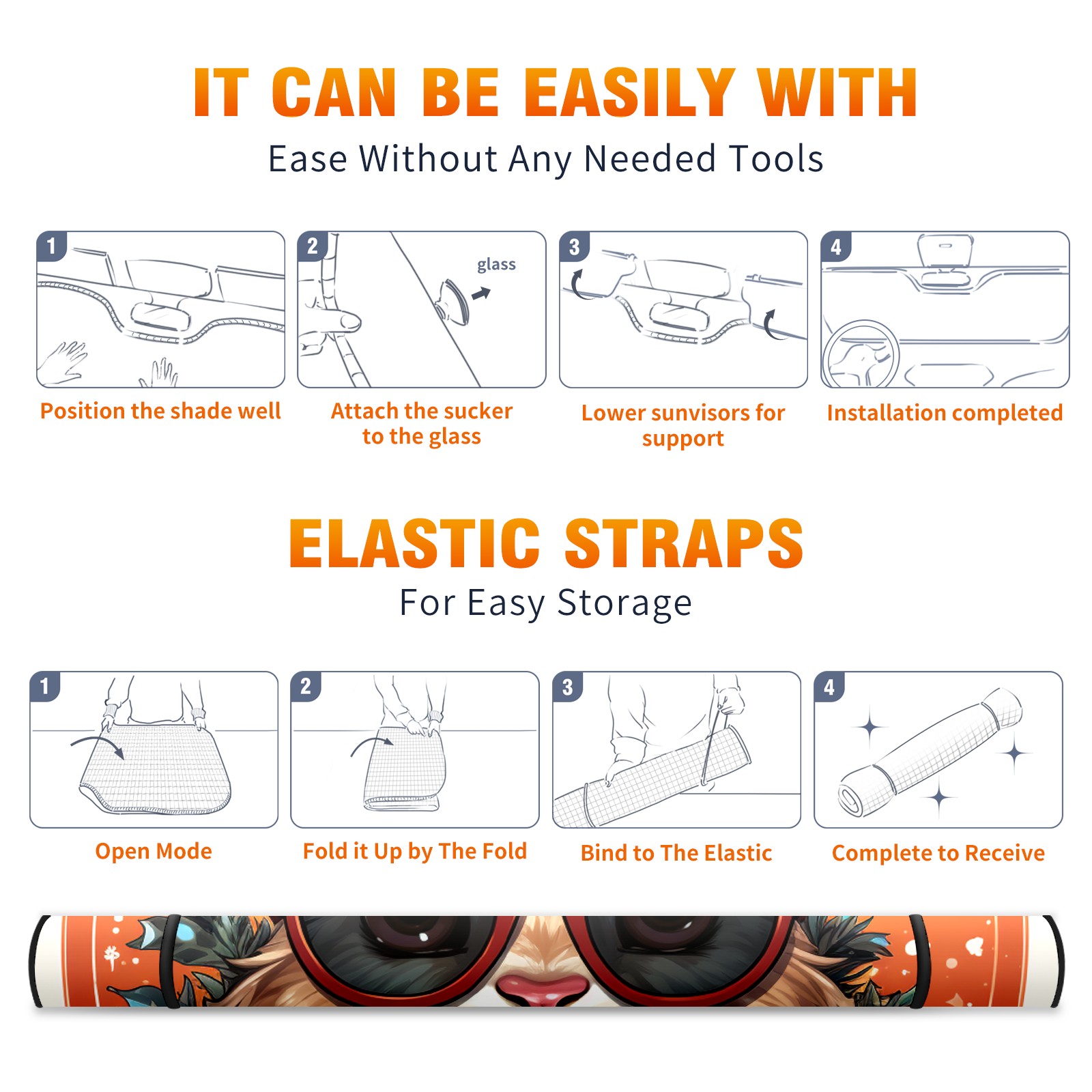 • Diameter /Size 63"L x 33.5"W Made from excellent materials which makes it sturdy and protects the car from the sun. Easy to use and pack. Makes the interior of the car cooler.You can easily stash the sunshade in the storage bag or store long term.It open and closes easy. Also the leather storage bag is durable and easy to put the umbrella back into.This windshield sunshade provides complete coverage and keeps your car interior cool under direct sun. It is easy to open and position under the windshield and around the rear-view mirror. Makes Your Car Easy To Identify, Perfect For Finding Your Car In Crowded Parking Lots And Garages.Great Choice: It Is A Great Gift For Dad, Boyfriend, Brother, Brother And Uncle, Friends, Classmates, Family And So On. Notice: Due To Difference Computer Monitors, The Color Maybe Slightly Different From Picture. As Different Measurement Methods, Measurement Data Will Float Within 2%.I Hope You Understand. If You Have Any Question About The Item Please Do Not Hesitate To Contact Us Immediately And We Will Give You A Satisfactory Reply Within 24 Hours.
