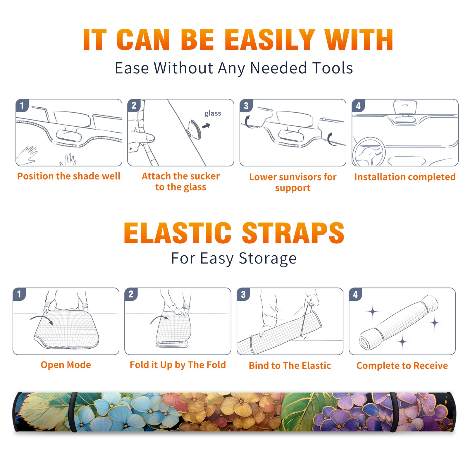 Car Windshield Sun Shade For Front Window Iridescent Hydrangea3 Foldable Vehicle Windshield Car Sun Visor Covers Automotive Window Protector Car Camping Privacy Sun Blocker
