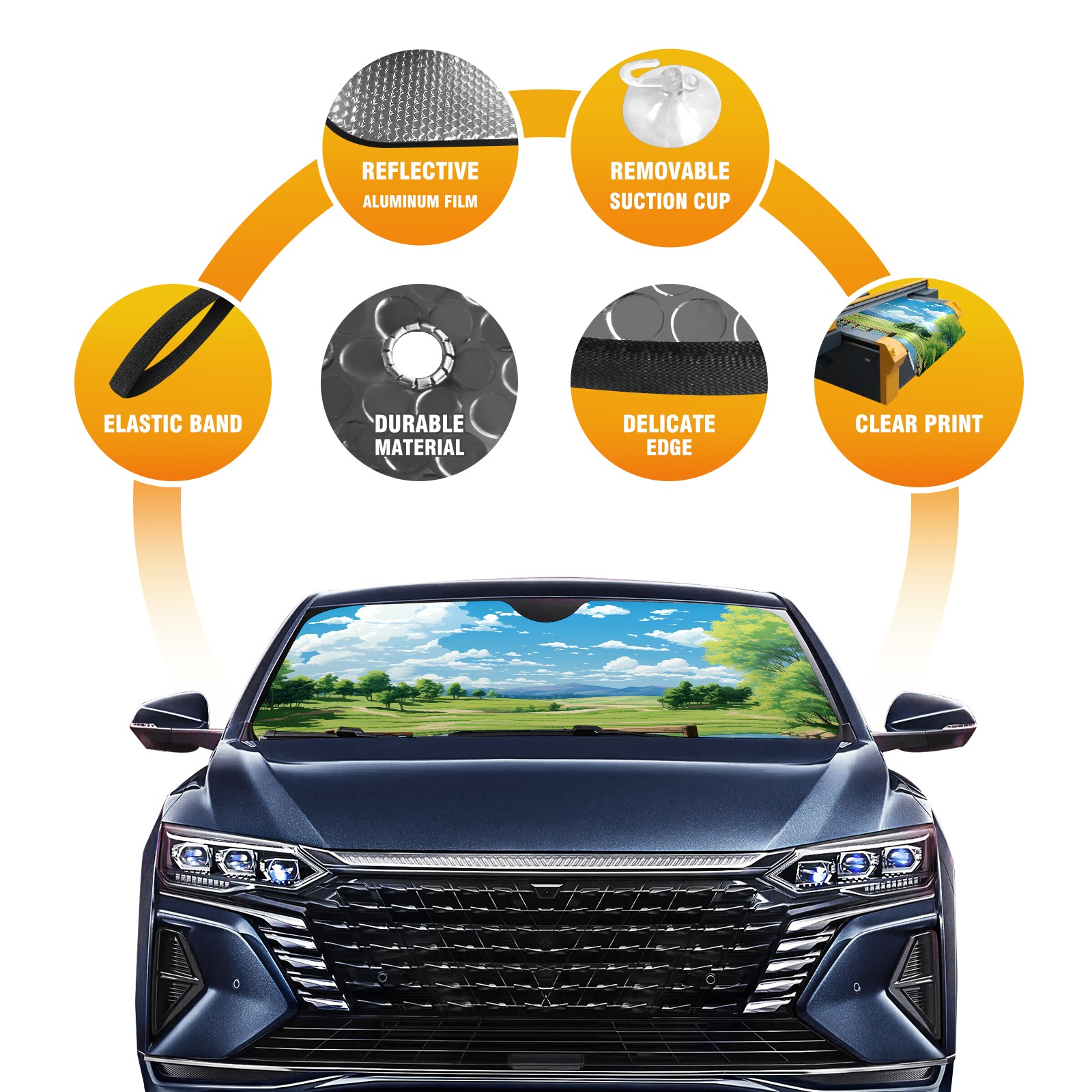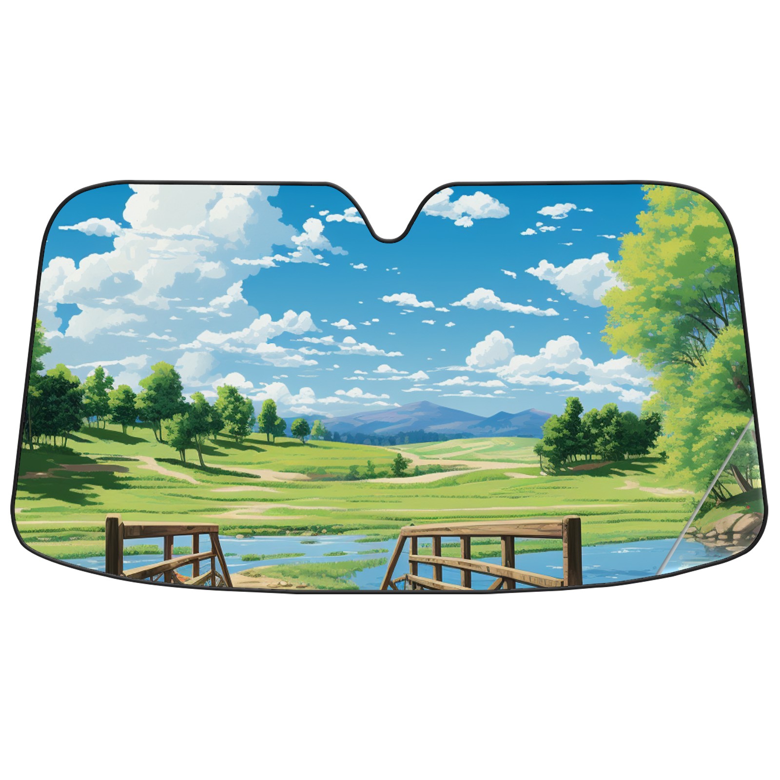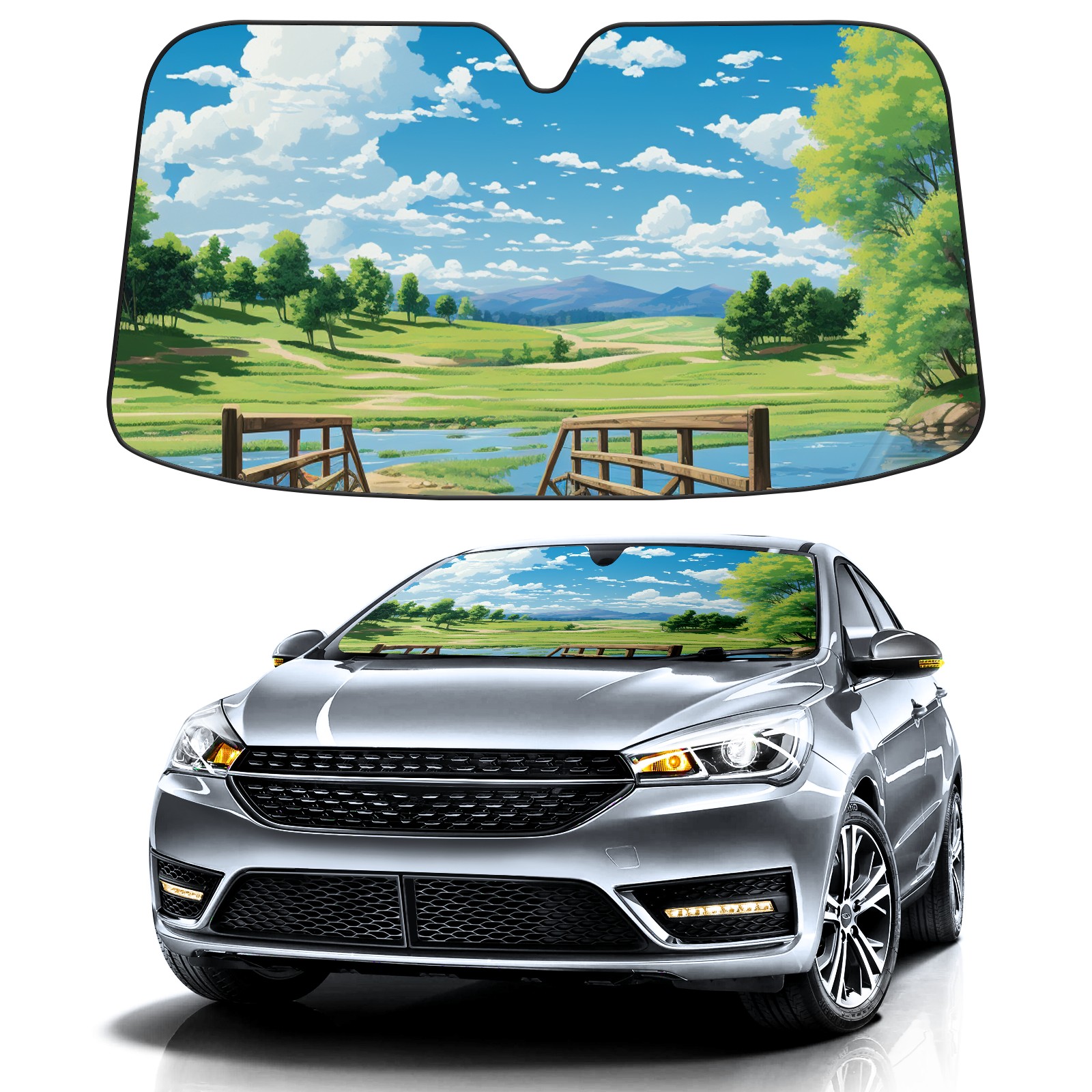 Car Windshield Sun Shade For Front Window Blue Sky White Foldable Vehicle Windshield Car Sun Visor Covers Automotive Window Protector Car Camping Privacy Sun Blocker