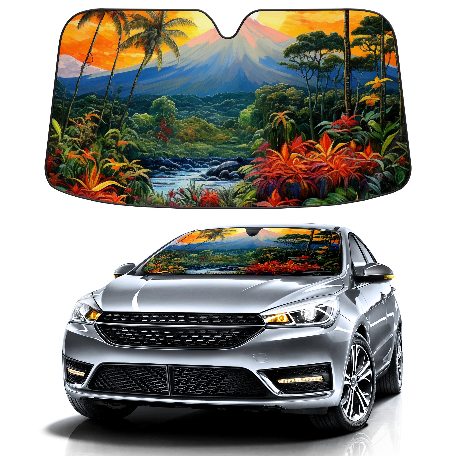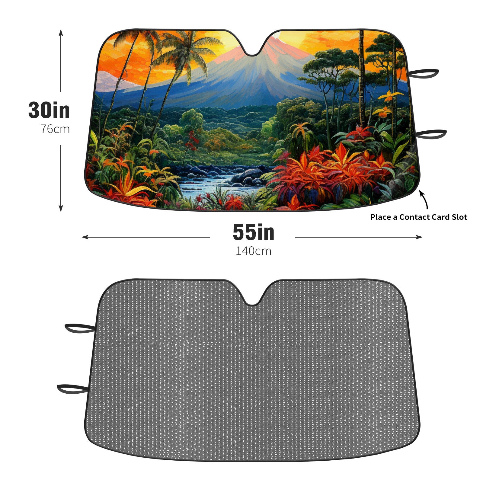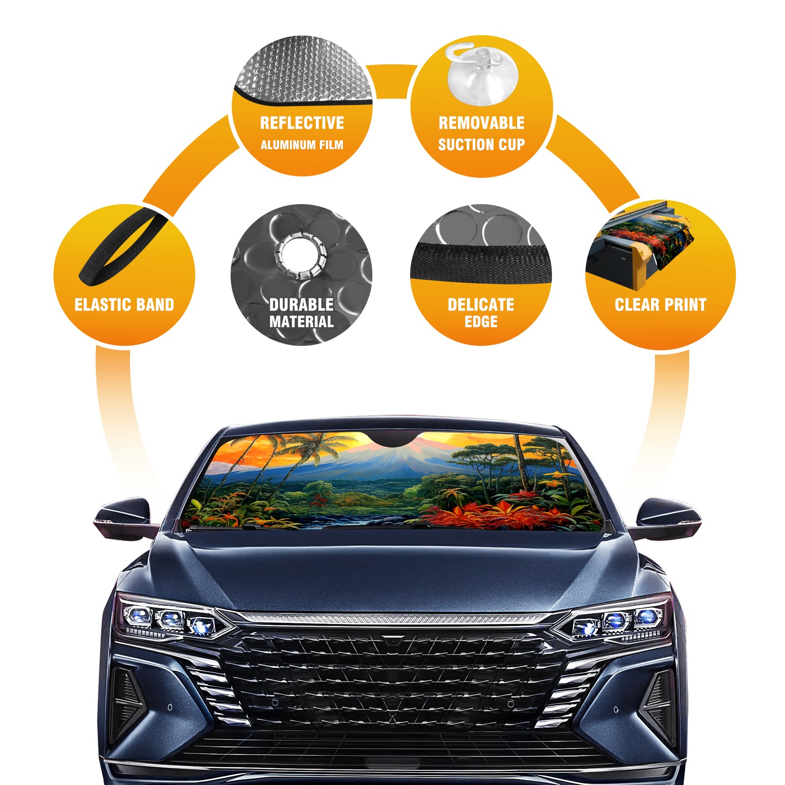 Diameter /Size 63"L x 33.5"W Made from excellent materials which makes it sturdy and protects the car from the sun. Easy to use and pack. Makes the interior of the car cooler.You can easily stash the sunshade in the storage bag or store long term.It open and closes easy. Also the leather storage bag is durable and easy to put the umbrella back into.This windshield sunshade provides complete coverage and keeps your car interior cool under direct sun. It is easy to open and position under the windshield and around the rear-view mirror. Makes Your Car Easy To Identify, Perfect For Finding Your Car In Crowded Parking Lots And Garages.Great Choice: It Is A Great Gift For Dad, Boyfriend, Brother, Brother And Uncle, Friends, Classmates, Family And So On. Notice: Due To Difference Computer Monitors, The Color Maybe Slightly Different From Picture. As Different Measurement Methods, Measurement Data Will Float Within 2%.I Hope You Understand. If You Have Any Question About The Item Please Do Not Hesitate To Contact Us Immediately And We Will Give You A Satisfactory Reply Within 24 Hours.
