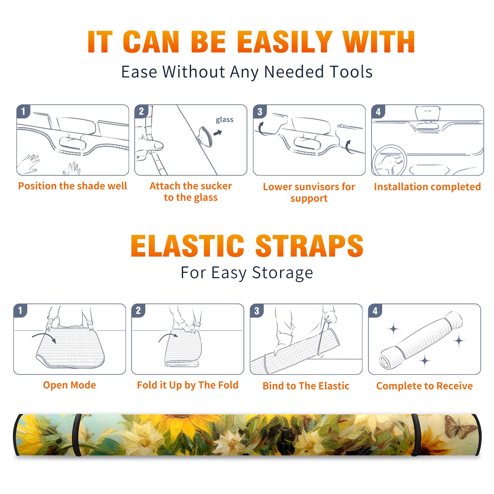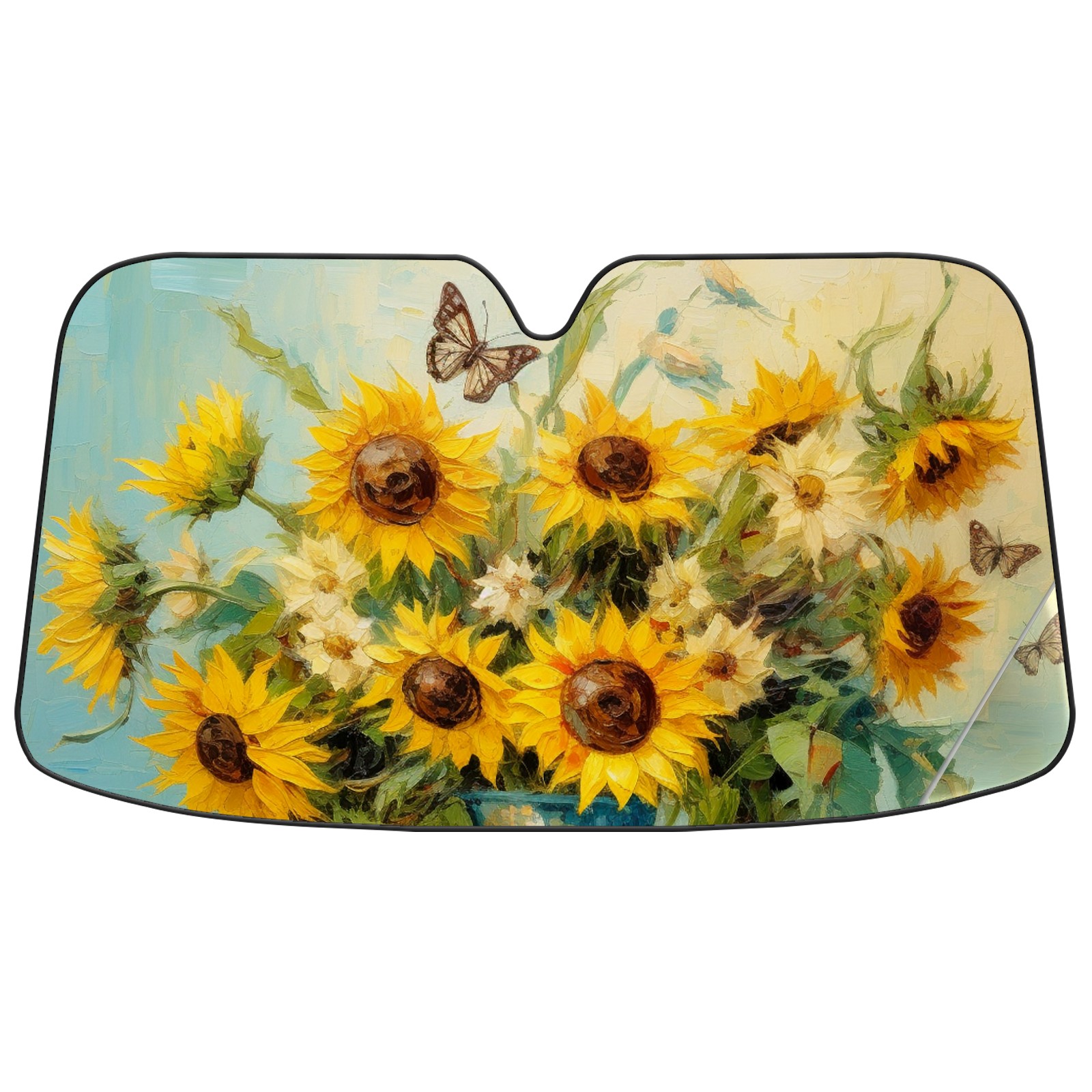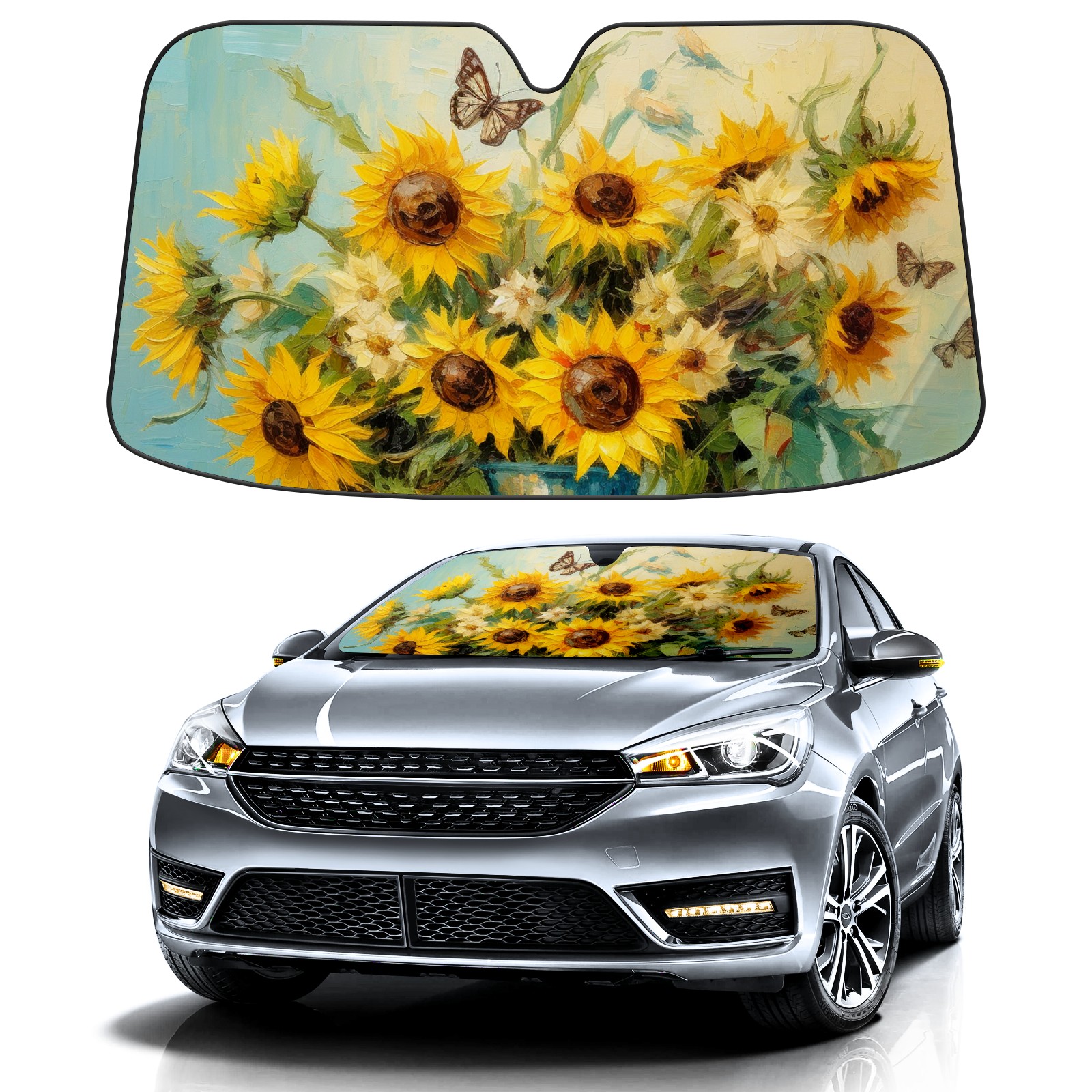 Car Windshield Sun Shade For Front Window Sunflowers Foldable Vehicle Windshield Car Sun Visor Covers Automotive Window Protector Car Camping Privacy Sun Blocker