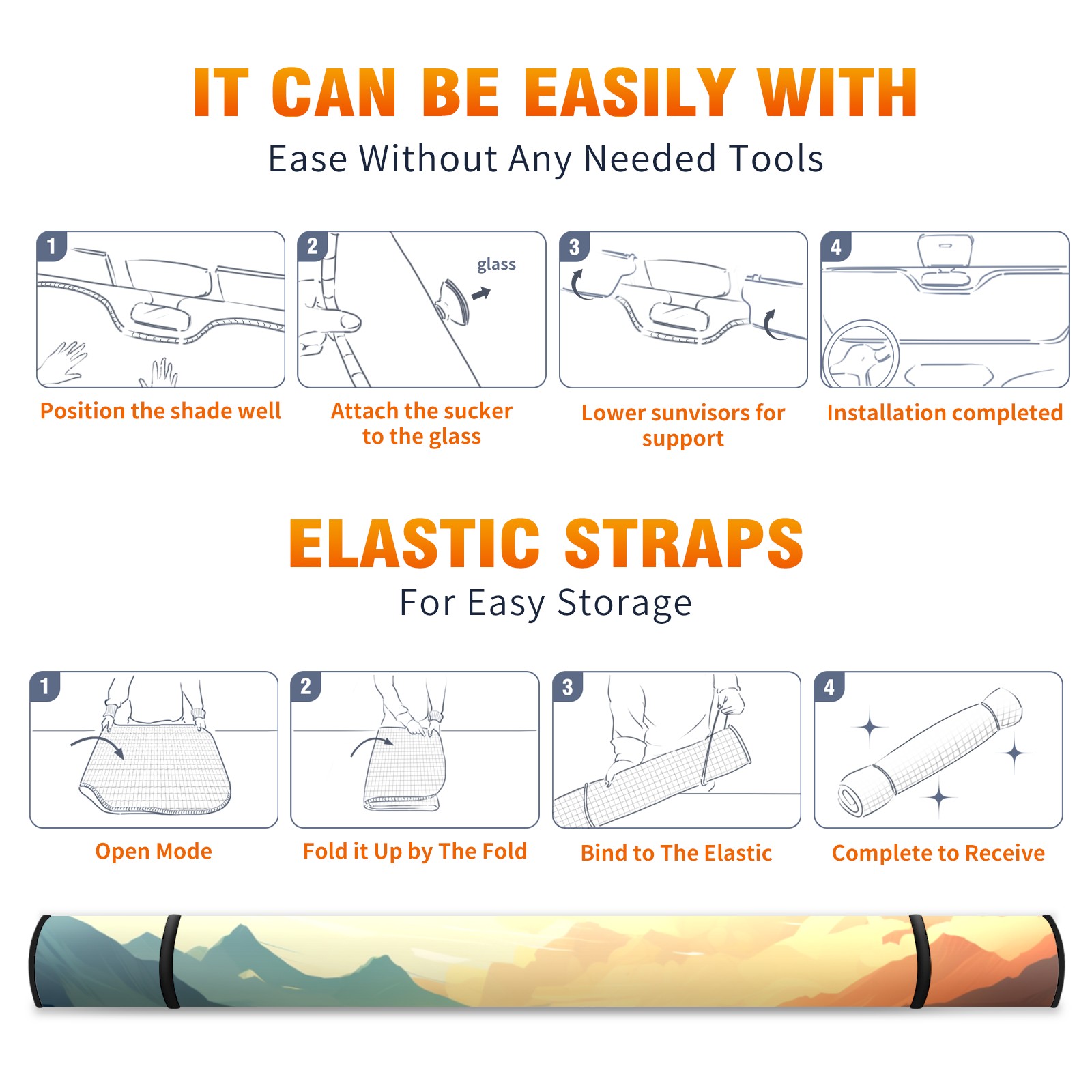 • Diameter /Size 63"L x 33.5"W Made from excellent materials which makes it sturdy and protects the car from the sun. Easy to use and pack. Makes the interior of the car cooler.You can easily stash the sunshade in the storage bag or store long term.It open and closes easy. Also the leather storage bag is durable and easy to put the umbrella back into.This windshield sunshade provides complete coverage and keeps your car interior cool under direct sun. It is easy to open and position under the windshield and around the rear-view mirror. Makes Your Car Easy To Identify, Perfect For Finding Your Car In Crowded Parking Lots And Garages.Great Choice: It Is A Great Gift For Dad, Boyfriend, Brother, Brother And Uncle, Friends, Classmates, Family And So On. Notice: Due To Difference Computer Monitors, The Color Maybe Slightly Different From Picture. As Different Measurement Methods, Measurement Data Will Float Within 2%.I Hope You Understand. If You Have Any Question About The Item Please Do Not Hesitate To Contact Us Immediately And We Will Give You A Satisfactory Reply Within 24 Hours.