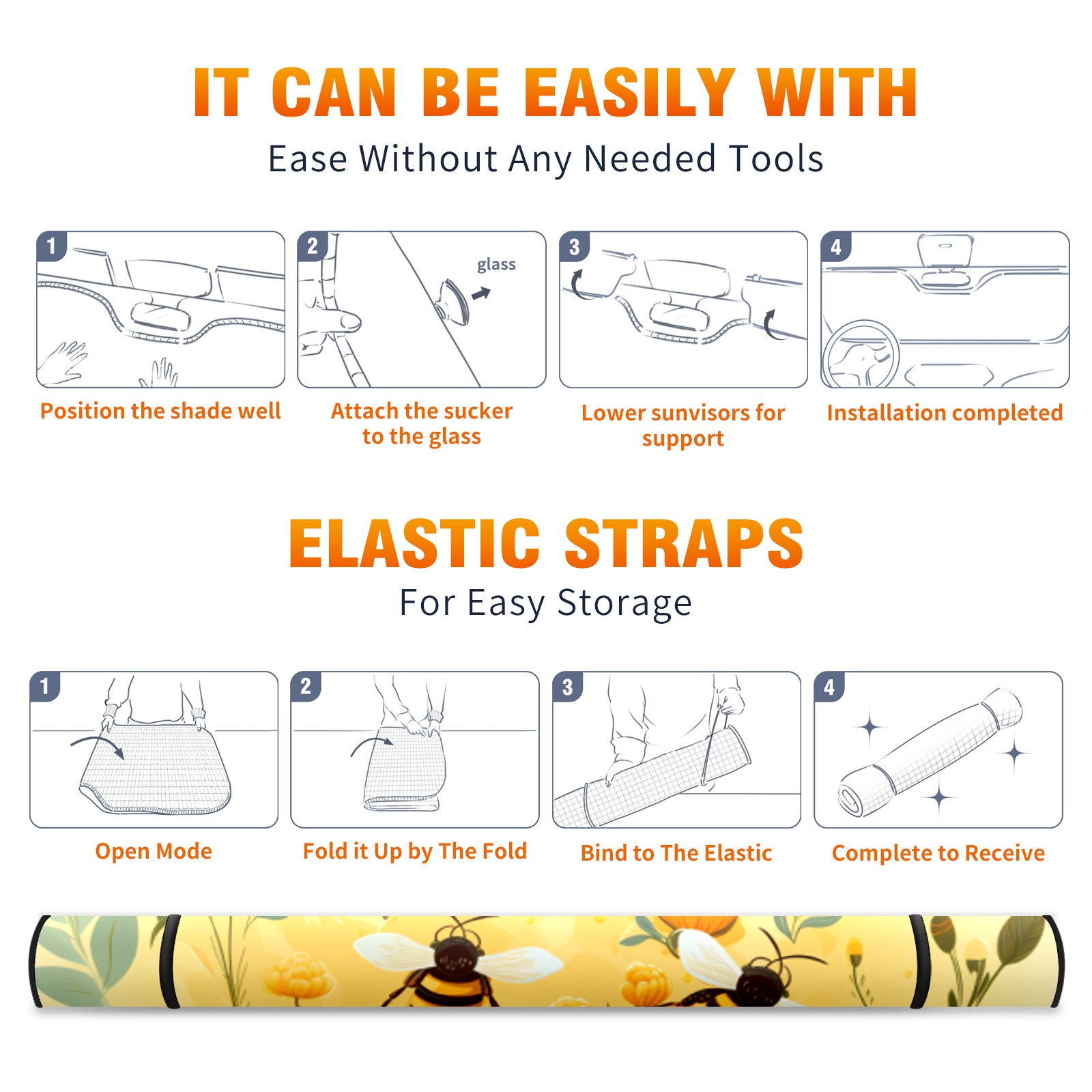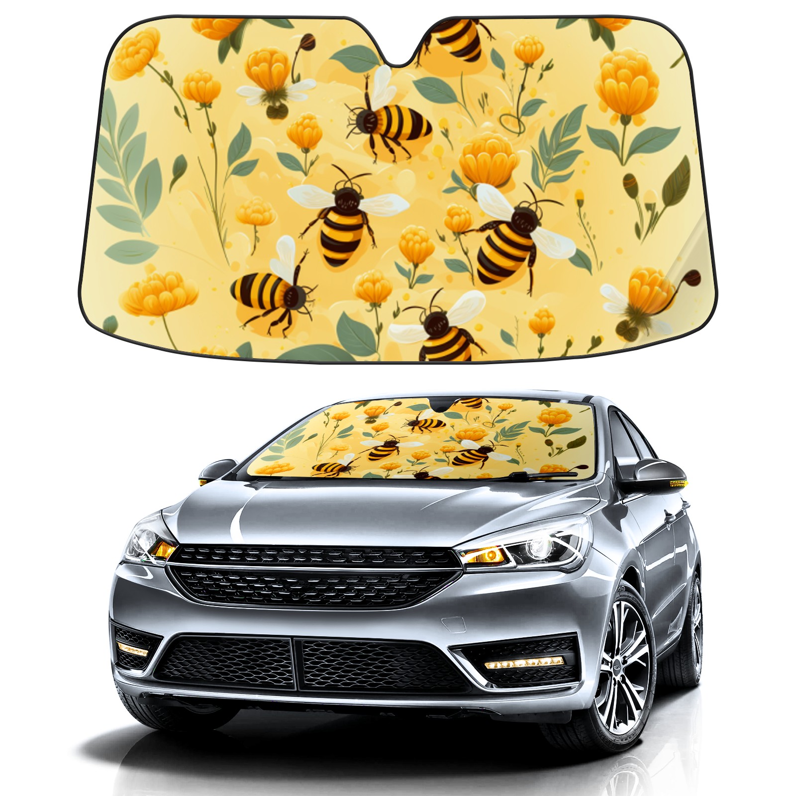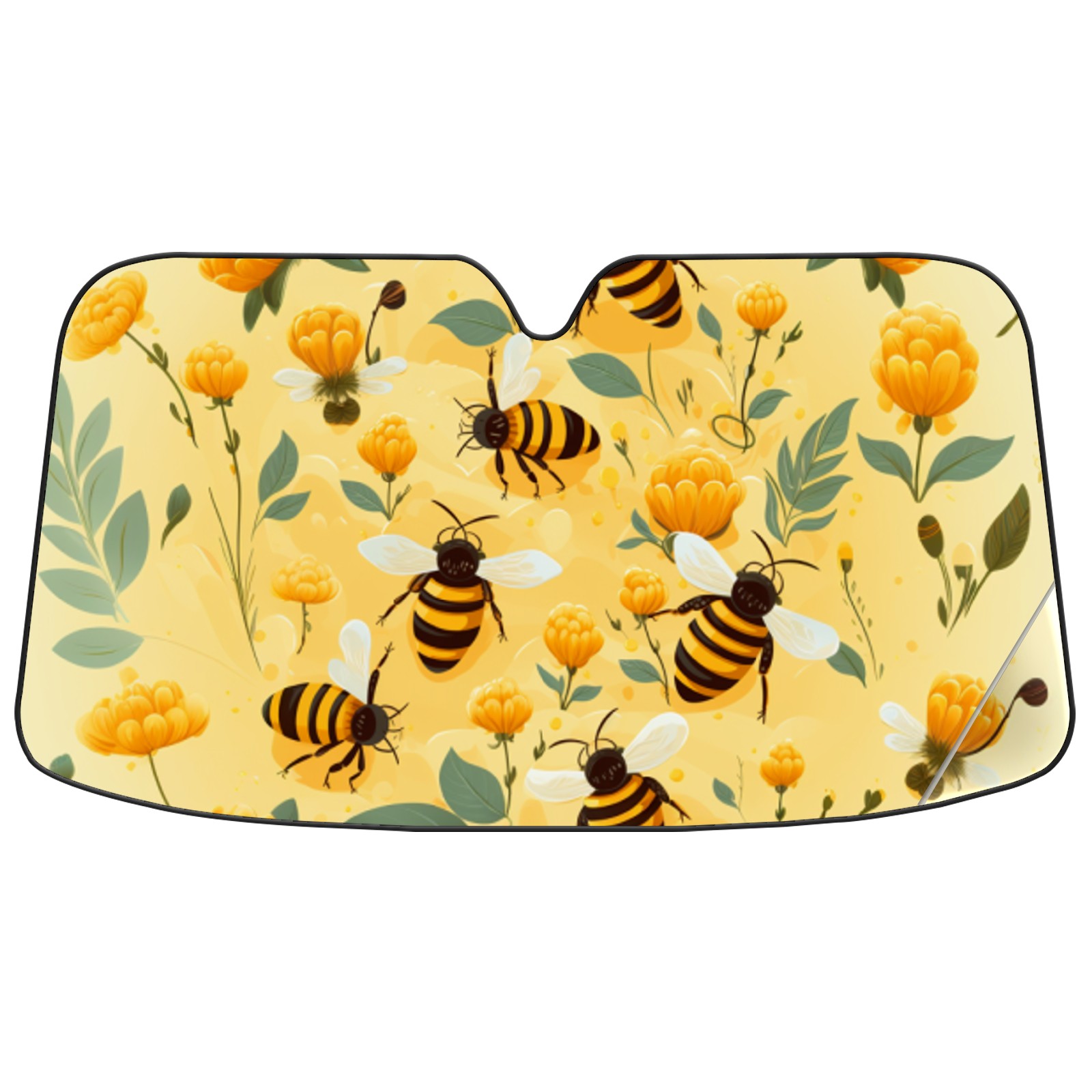 Car Windshield Sun Shade For Front Window Flower Bees Foldable Vehicle Windshield Car Sun Visor Covers Automotive Window Protector Car Camping Privacy Sun Blocker