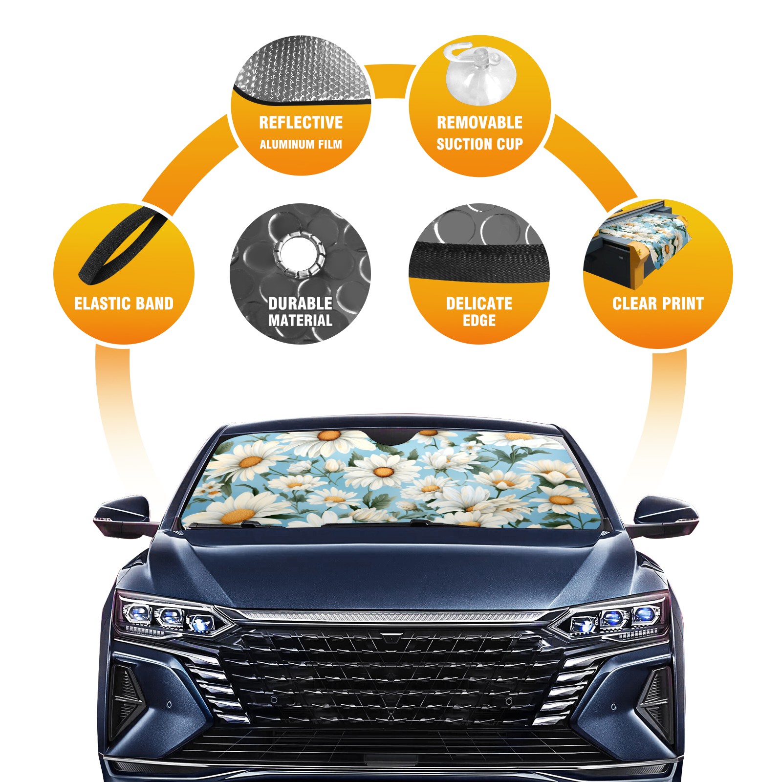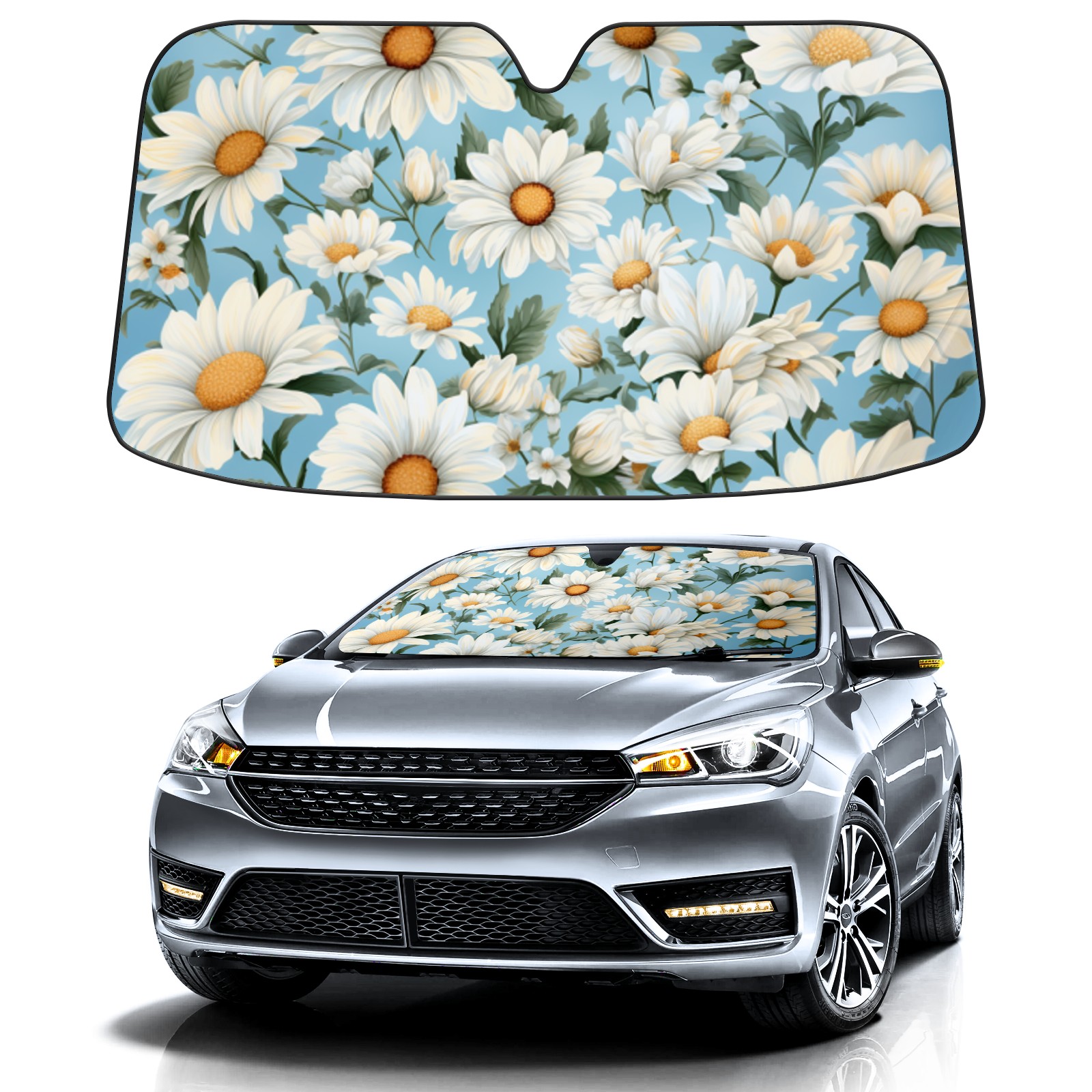 Car Windshield Sun Shade For Front Window Daisy Flower Foldable Vehicle Windshield Car Sun Visor Covers Automotive Window Protector Car Camping Privacy Sun Blocker