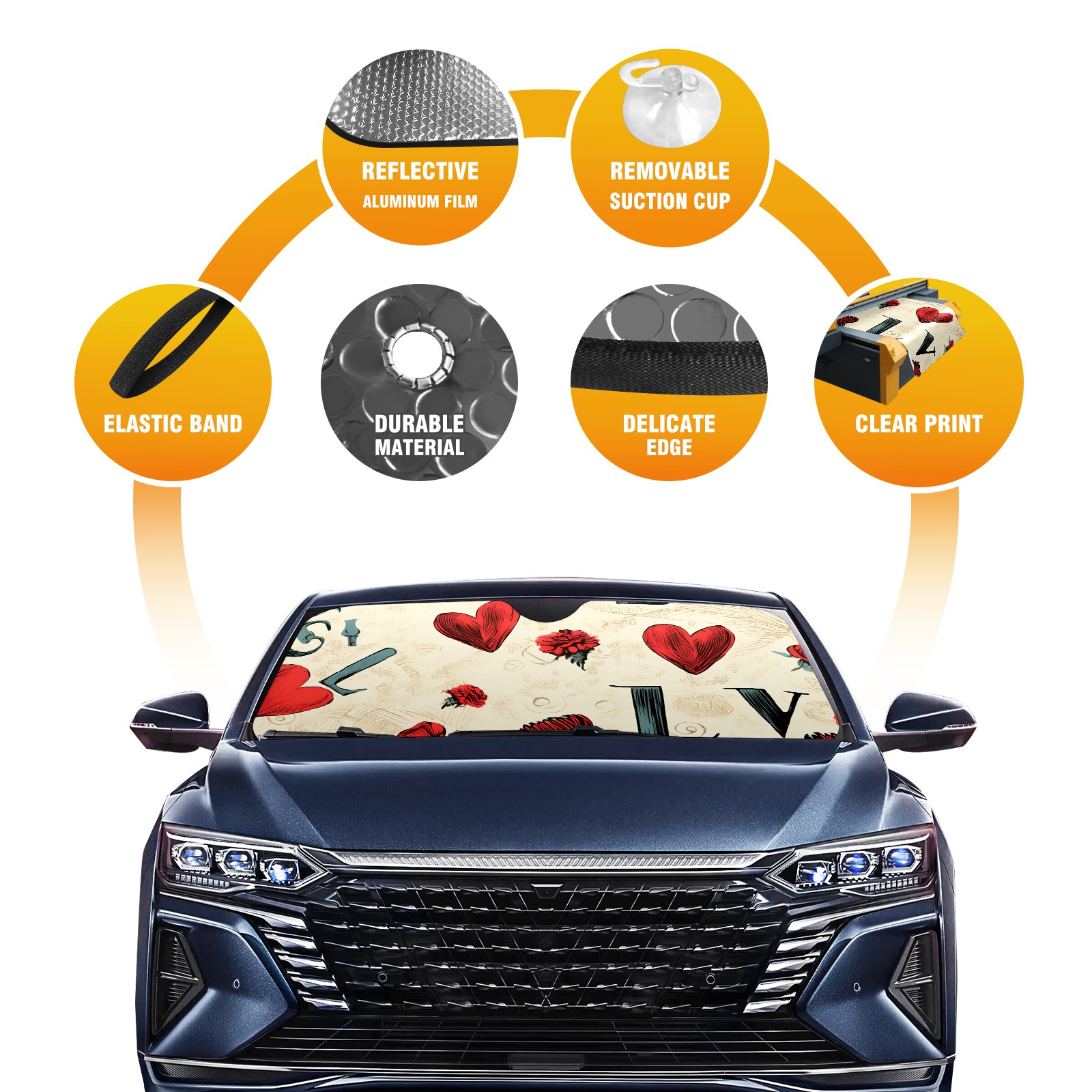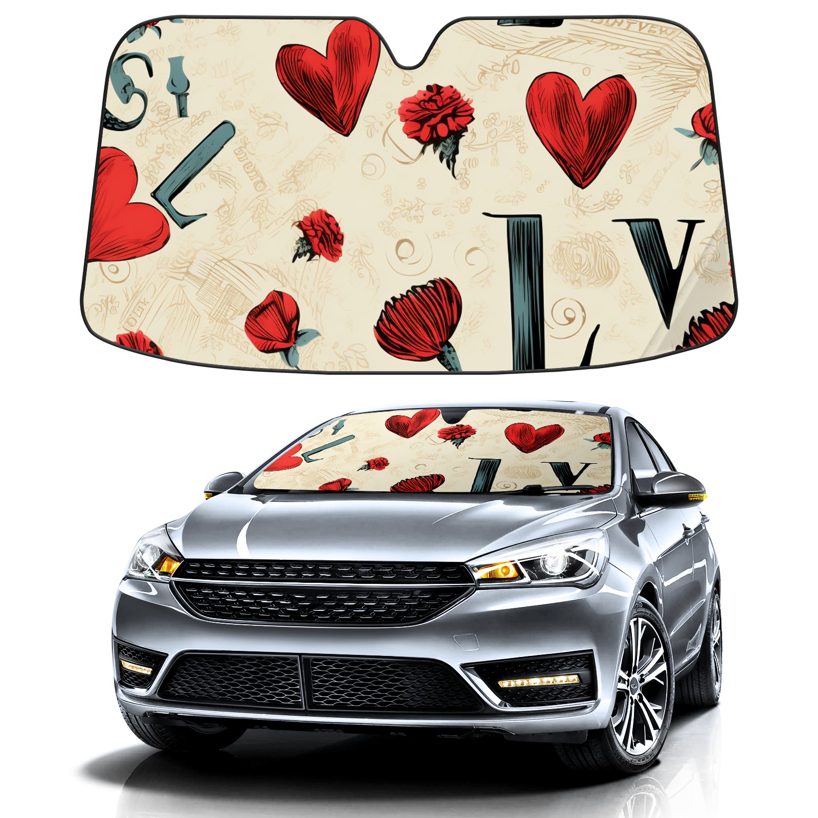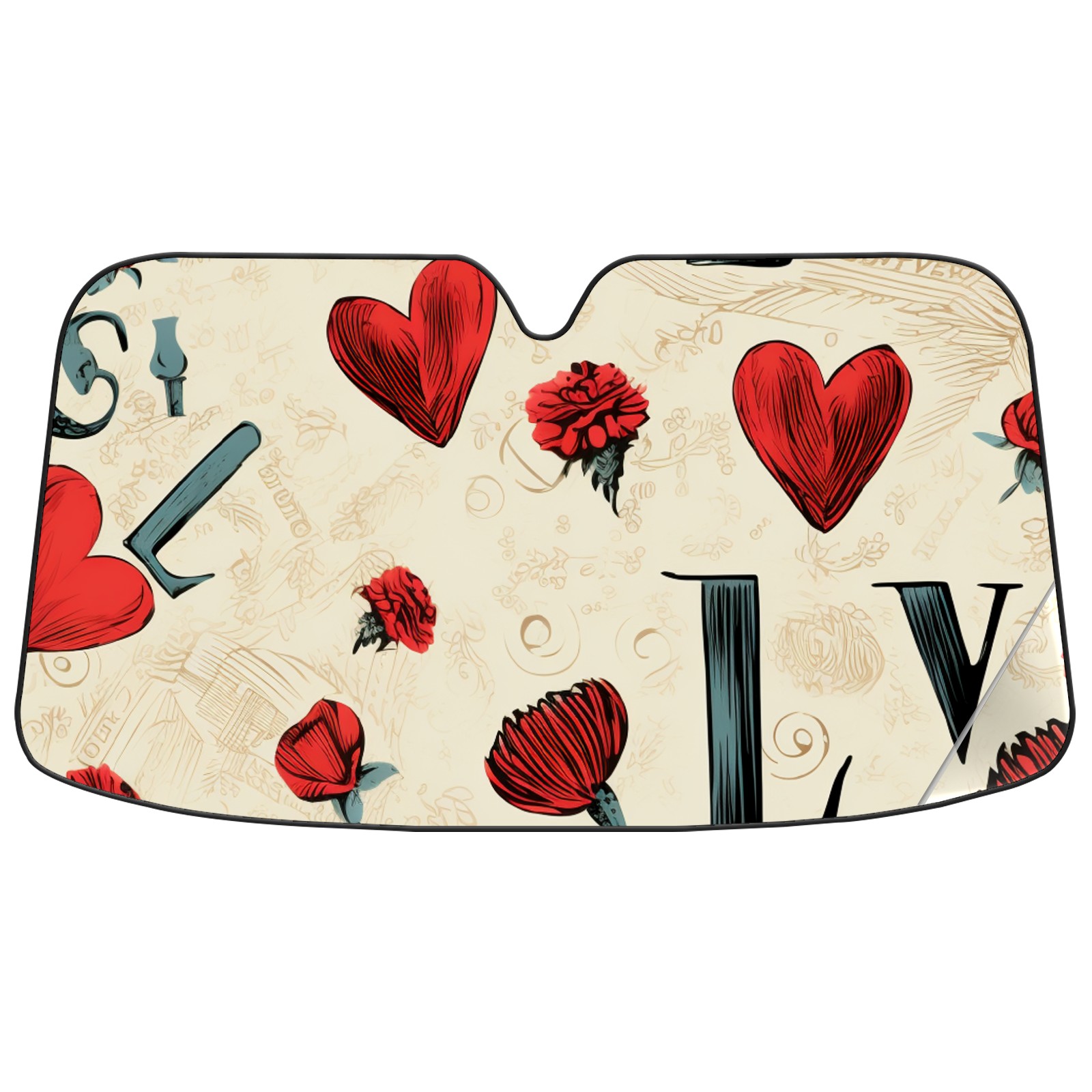 Car Windshield Sun Shade For Front Window Love Foldable Vehicle Windshield Car Sun Visor Covers Automotive Window Protector Car Camping Privacy Sun Blocker