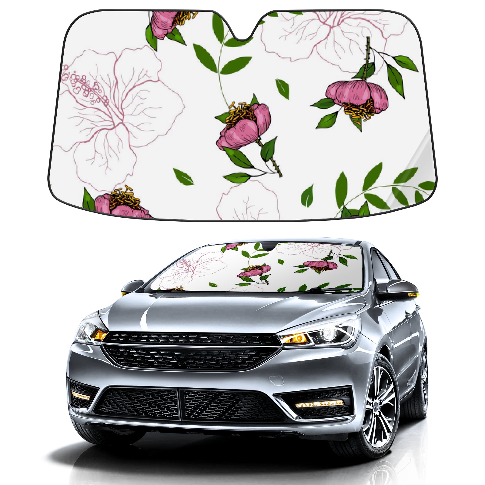 Car Windshield Sun Shade For Front Window White Background Pink Retro Foldable Vehicle Windshield Car Sun Visor Covers Automotive Window Protector Car Camping Privacy Sun Blocker