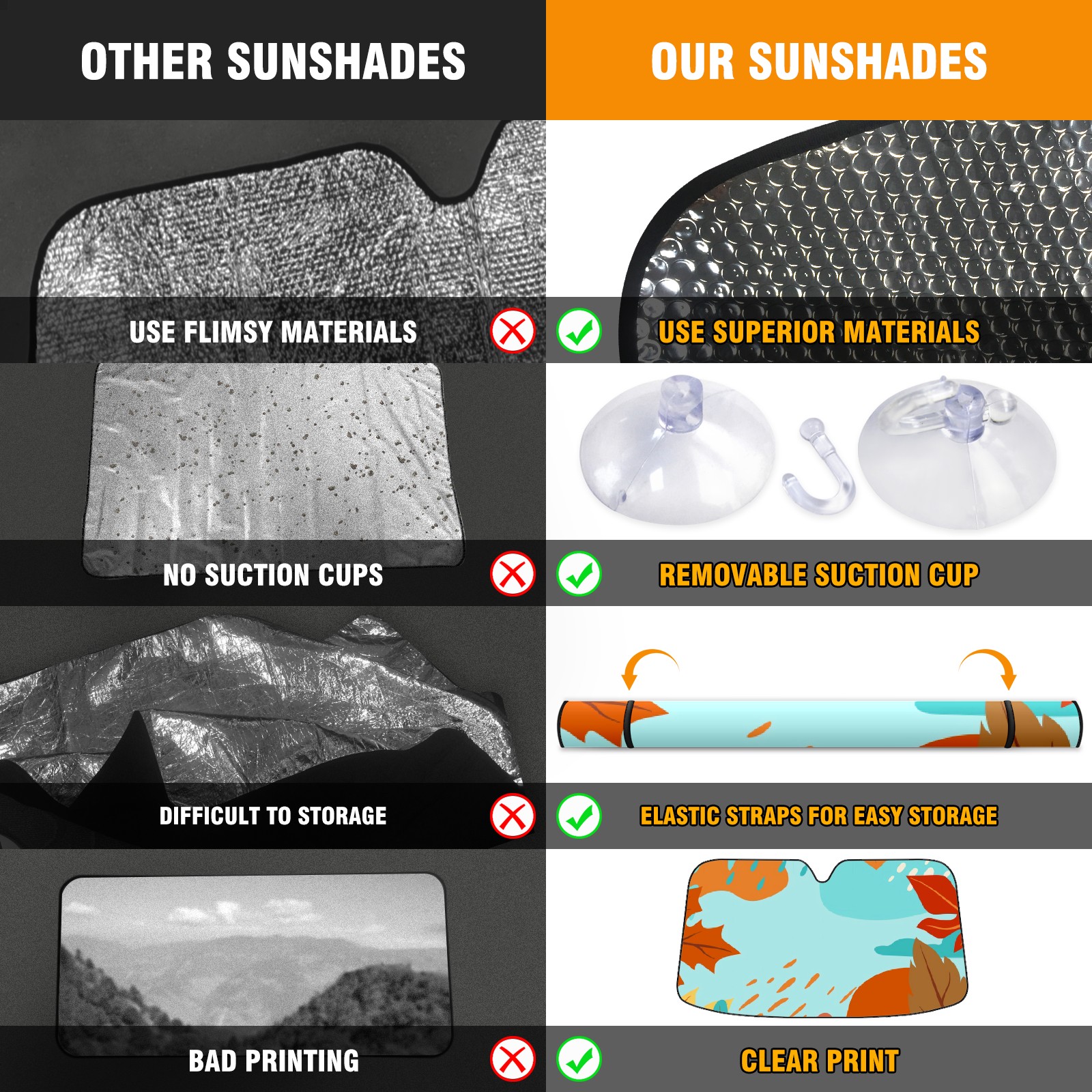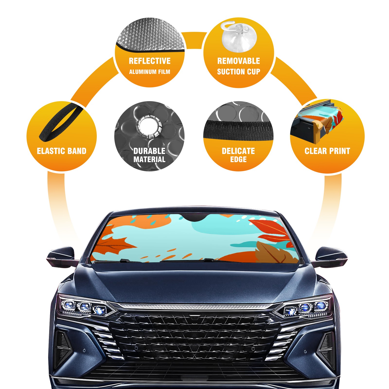 • Diameter /Size 63"L x 33.5"W Made from excellent materials which makes it sturdy and protects the car from the sun. Easy to use and pack. Makes the interior of the car cooler.You can easily stash the sunshade in the storage bag or store long term.It open and closes easy. Also the leather storage bag is durable and easy to put the umbrella back into.This windshield sunshade provides complete coverage and keeps your car interior cool under direct sun. It is easy to open and position under the windshield and around the rear-view mirror. Makes Your Car Easy To Identify, Perfect For Finding Your Car In Crowded Parking Lots And Garages.Great Choice: It Is A Great Gift For Dad, Boyfriend, Brother, Brother And Uncle, Friends, Classmates, Family And So On. Notice: Due To Difference Computer Monitors, The Color Maybe Slightly Different From Picture. As Different Measurement Methods, Measurement Data Will Float Within 2%.I Hope You Understand. If You Have Any Question About The Item Please Do Not Hesitate To Contact Us Immediately And We Will Give You A Satisfactory Reply Within 24 Hours.