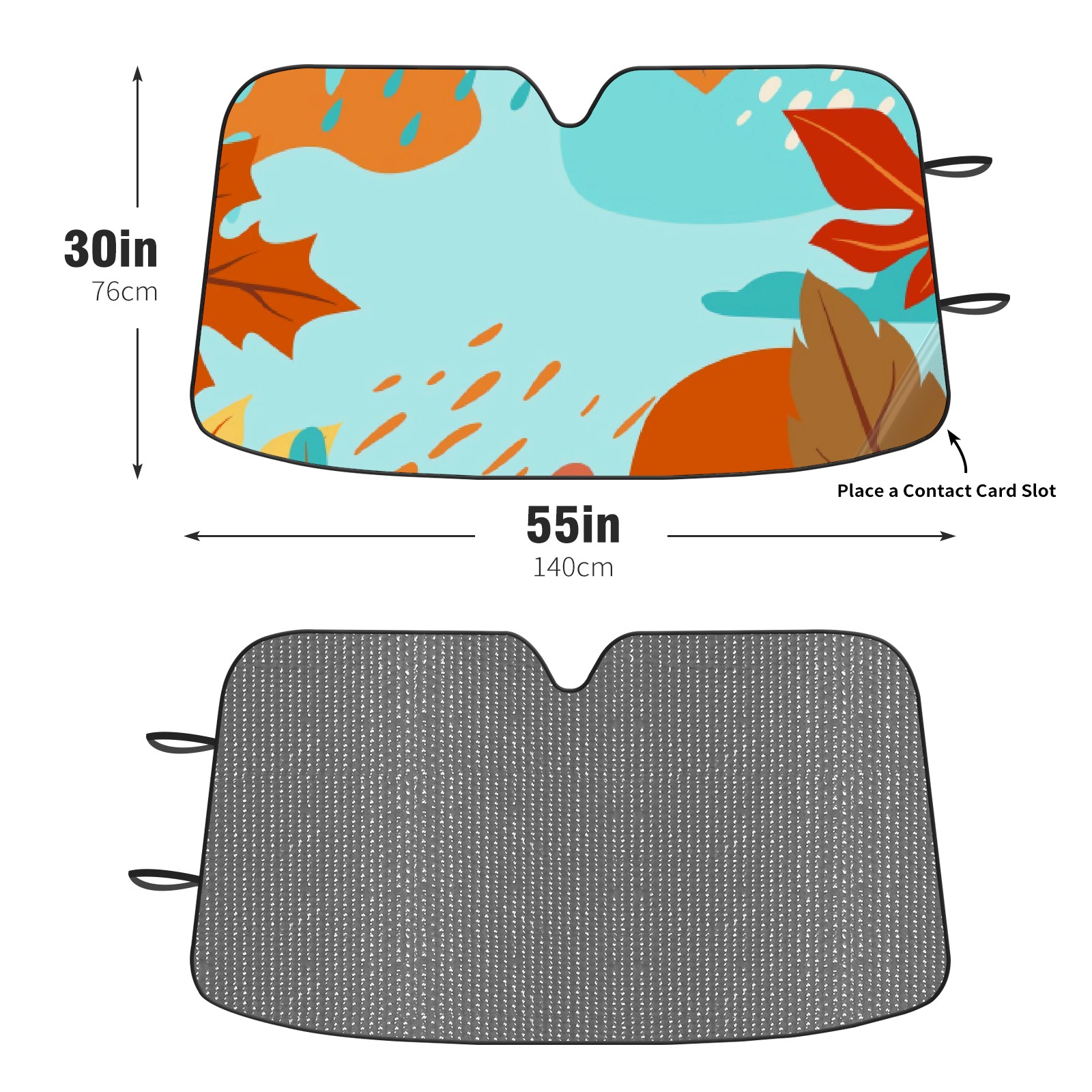 Diameter /Size 63"L x 33.5"W Made from excellent materials which makes it sturdy and protects the car from the sun. Easy to use and pack. Makes the interior of the car cooler.You can easily stash the sunshade in the storage bag or store long term.It open and closes easy. Also the leather storage bag is durable and easy to put the umbrella back into.This windshield sunshade provides complete coverage and keeps your car interior cool under direct sun. It is easy to open and position under the windshield and around the rear-view mirror. Makes Your Car Easy To Identify, Perfect For Finding Your Car In Crowded Parking Lots And Garages.Great Choice: It Is A Great Gift For Dad, Boyfriend, Brother, Brother And Uncle, Friends, Classmates, Family And So On. Notice: Due To Difference Computer Monitors, The Color Maybe Slightly Different From Picture. As Different Measurement Methods, Measurement Data Will Float Within 2%.I Hope You Understand. If You Have Any Question About The Item Please Do Not Hesitate To Contact Us Immediately And We Will Give You A Satisfactory Reply Within 24 Hours.