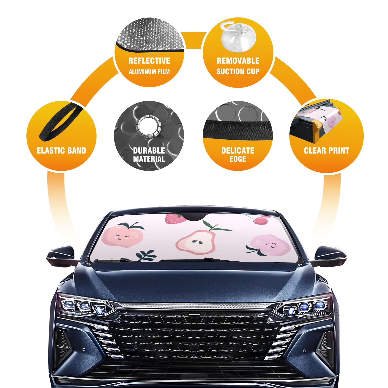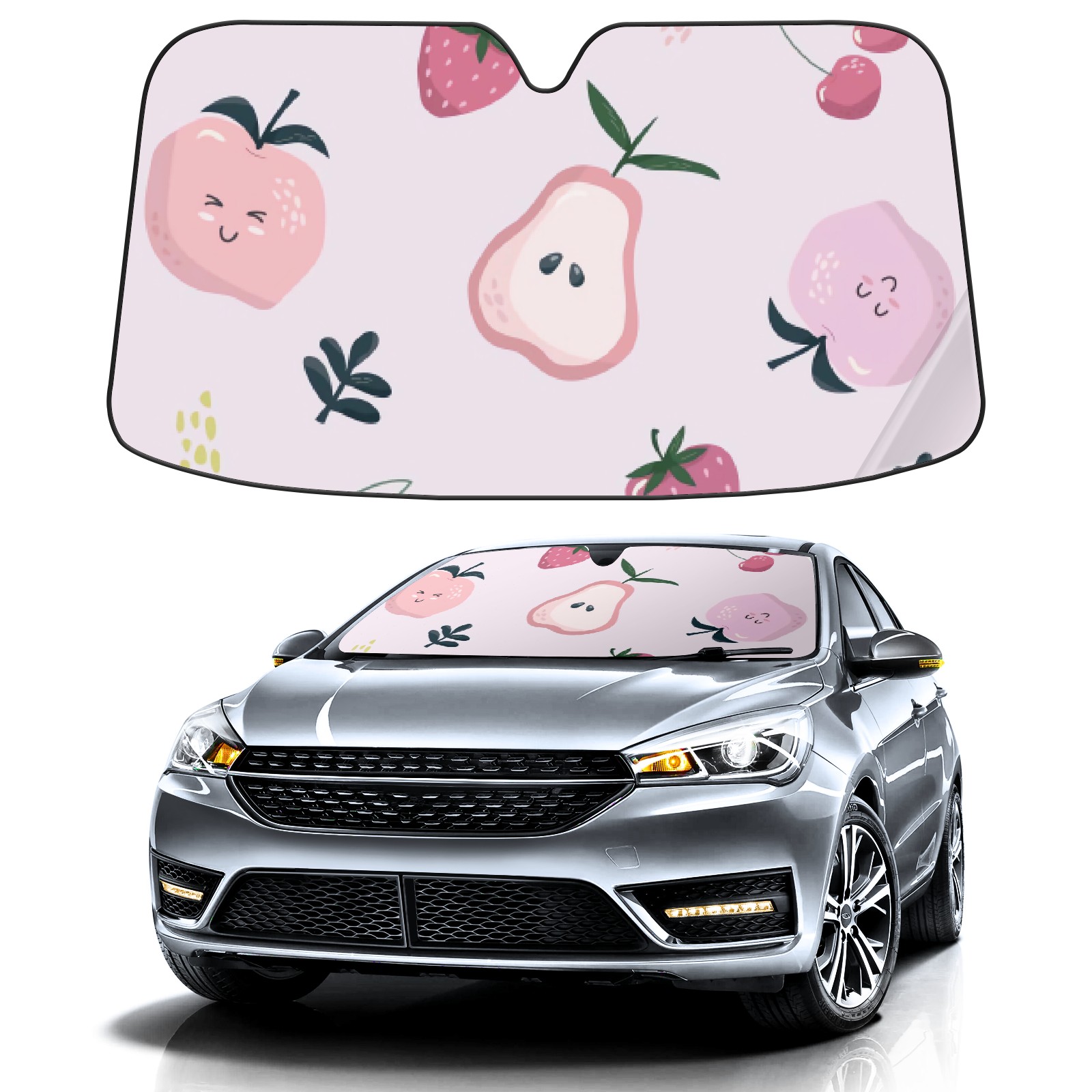Car Windshield Sun Shade For Front Window Pink Base Fruit Foldable Vehicle Windshield Car Sun Visor Covers Automotive Window Protector Car Camping Privacy Sun Blocker