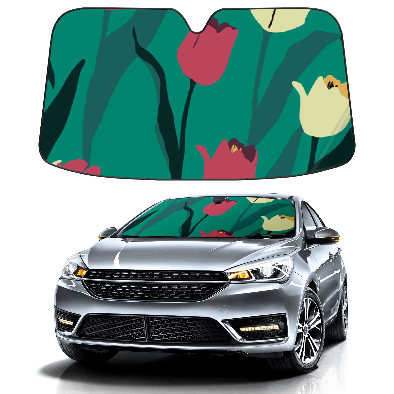Car Windshield Sun Shade For Front Window Red And Yellow Tulips Foldable Vehicle Windshield Car Sun Visor Covers Automotive Window Protector Car Camping Privacy Sun Blocker