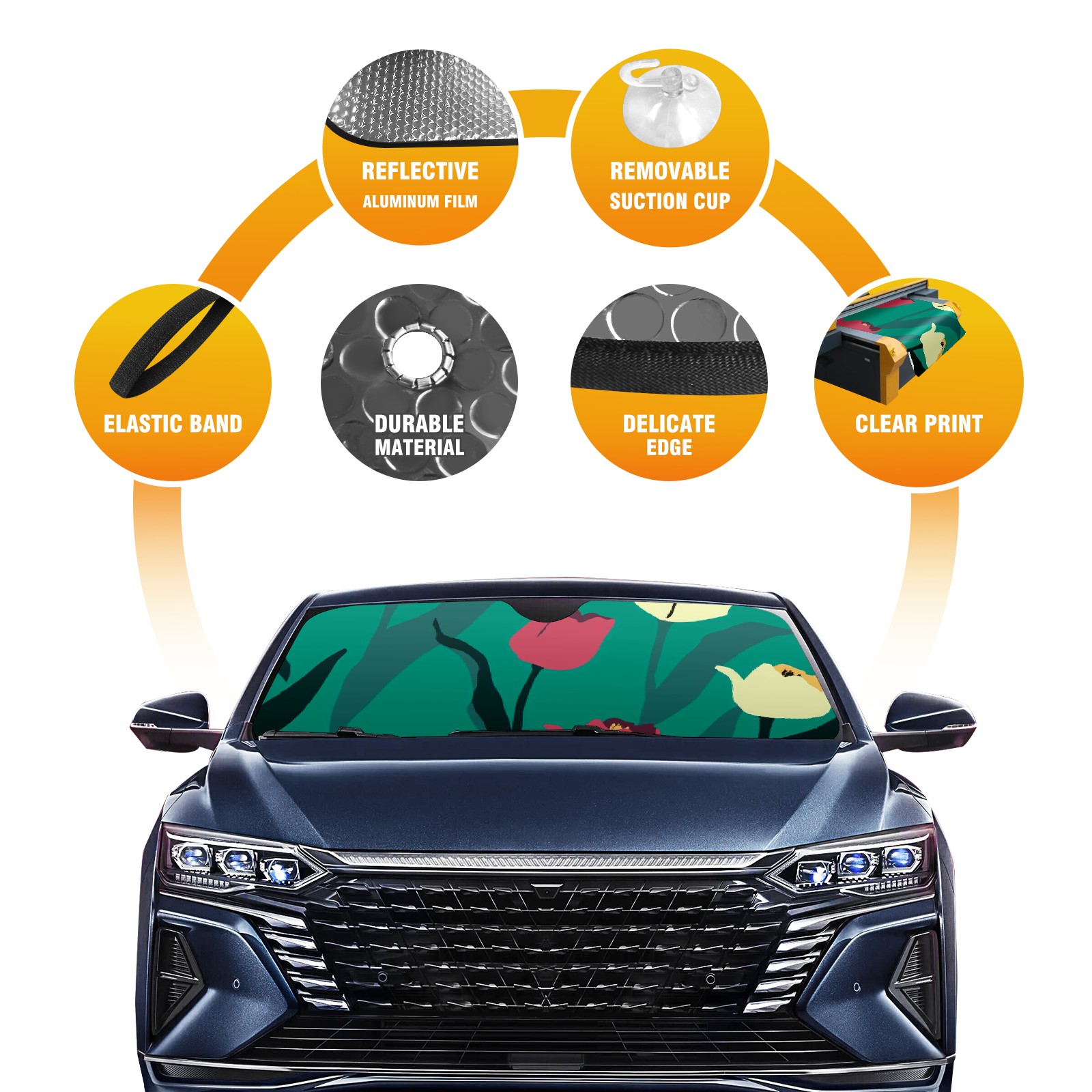 • Diameter /Size 63"L x 33.5"W Made from excellent materials which makes it sturdy and protects the car from the sun. Easy to use and pack. Makes the interior of the car cooler.You can easily stash the sunshade in the storage bag or store long term.It open and closes easy. Also the leather storage bag is durable and easy to put the umbrella back into.This windshield sunshade provides complete coverage and keeps your car interior cool under direct sun. It is easy to open and position under the windshield and around the rear-view mirror. Makes Your Car Easy To Identify, Perfect For Finding Your Car In Crowded Parking Lots And Garages.Great Choice: It Is A Great Gift For Dad, Boyfriend, Brother, Brother And Uncle, Friends, Classmates, Family And So On. Notice: Due To Difference Computer Monitors, The Color Maybe Slightly Different From Picture. As Different Measurement Methods, Measurement Data Will Float Within 2%.I Hope You Understand. If You Have Any Question About The Item Please Do Not Hesitate To Contact Us Immediately And We Will Give You A Satisfactory Reply Within 24 Hours.