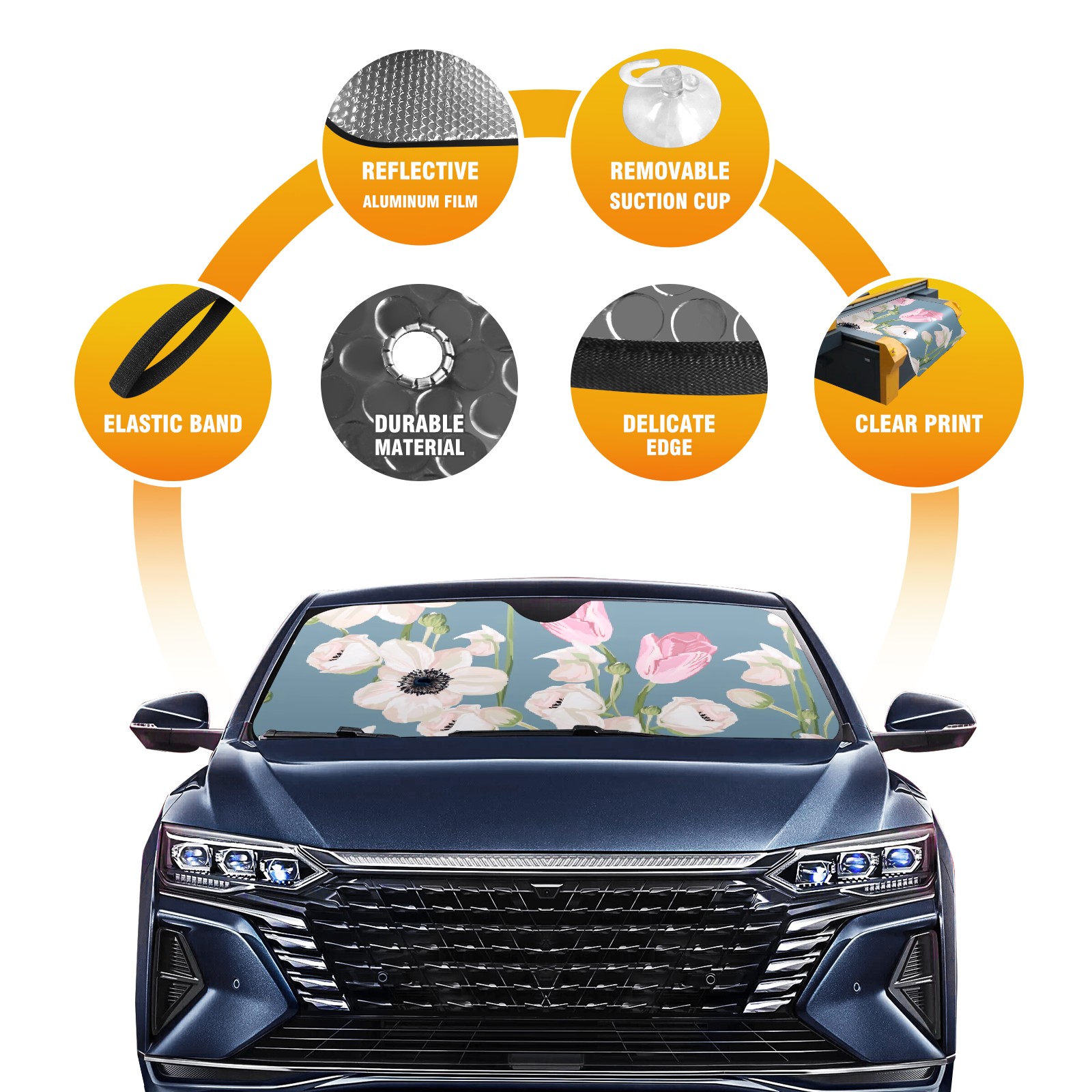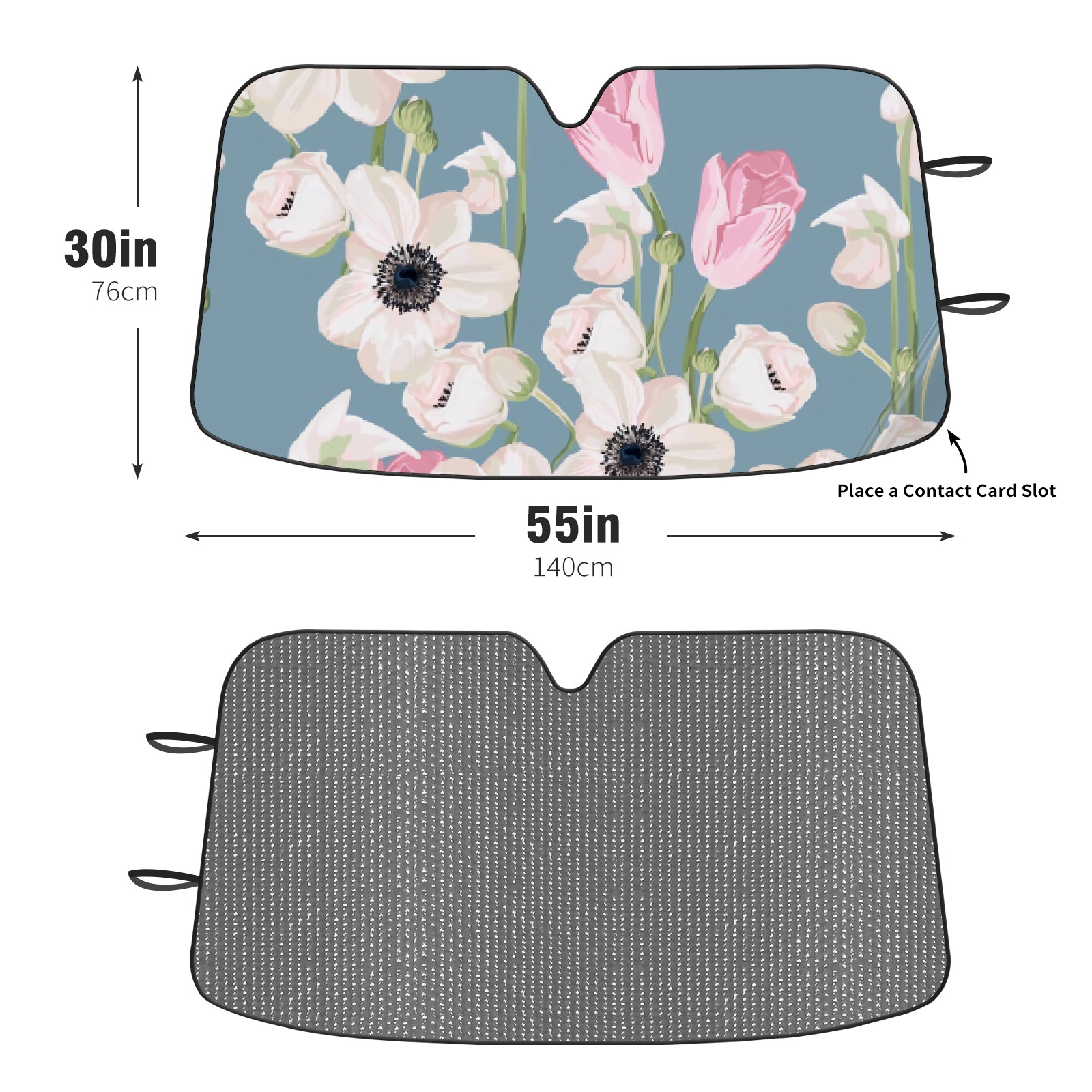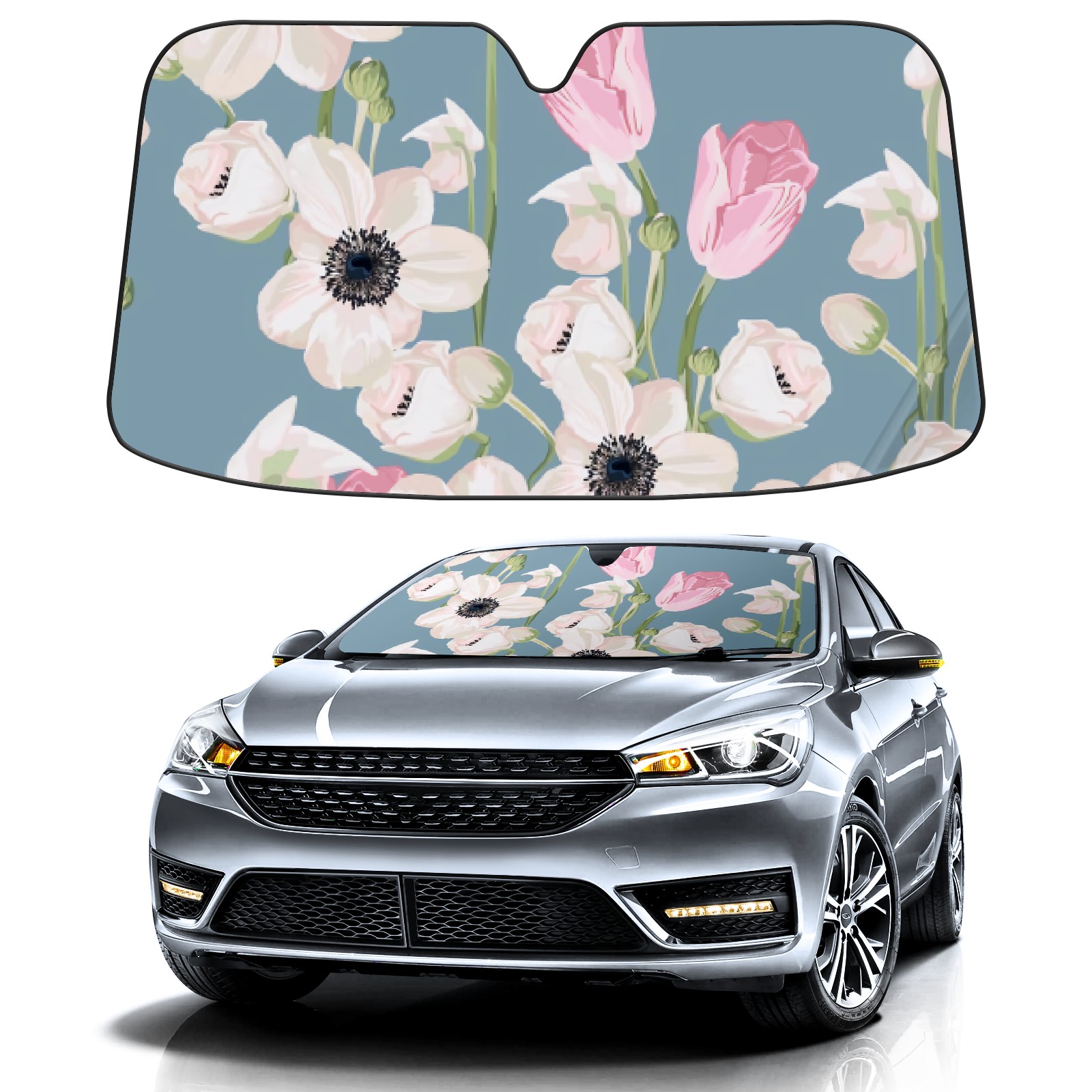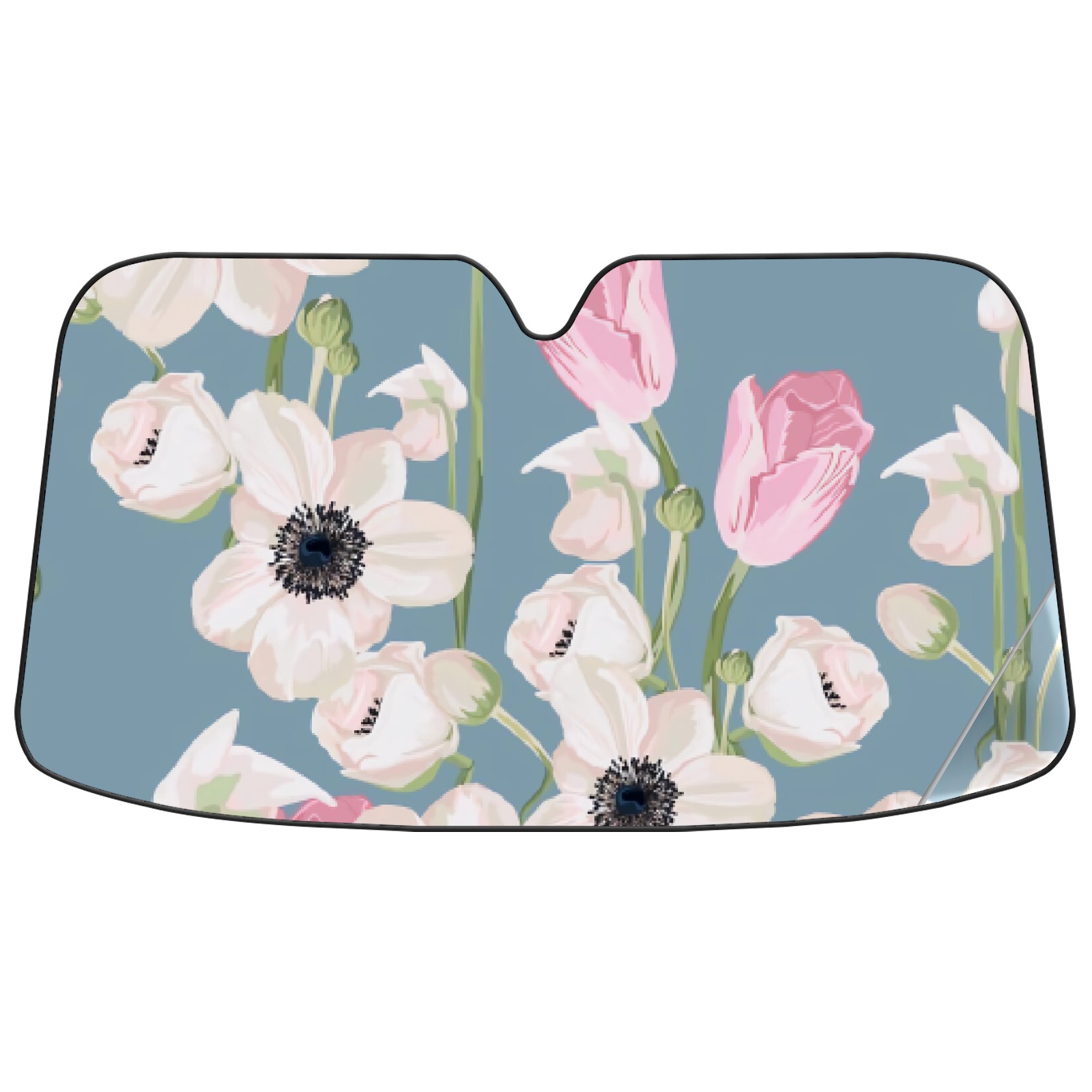 Car Windshield Sun Shade For Front Window Blue Background Anemone Foldable Vehicle Windshield Car Sun Visor Covers Automotive Window Protector Car Camping Privacy Sun Blocker