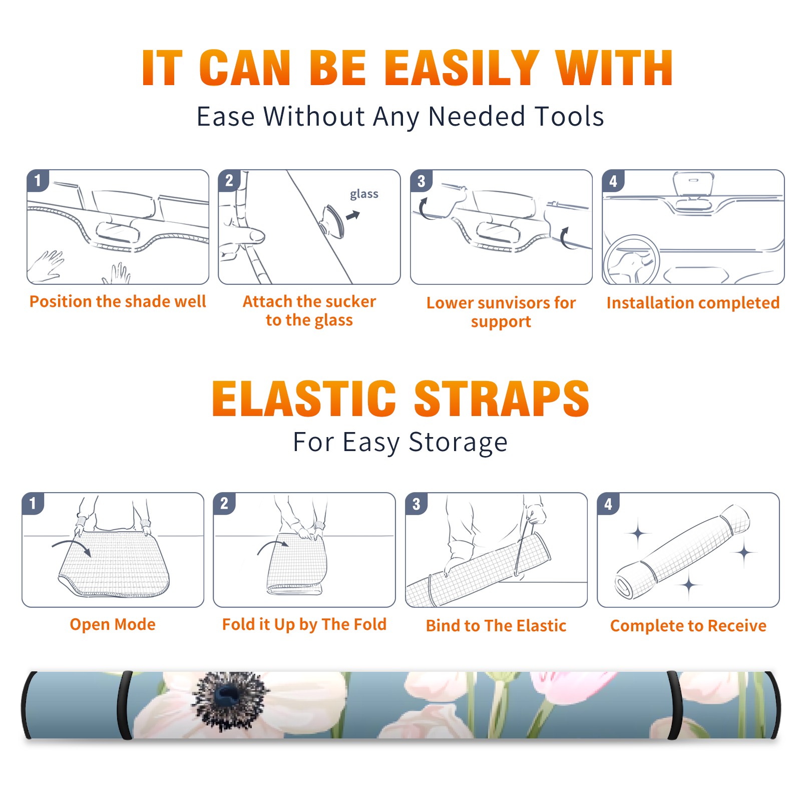 • Diameter /Size 63"L x 33.5"W Made from excellent materials which makes it sturdy and protects the car from the sun. Easy to use and pack. Makes the interior of the car cooler.You can easily stash the sunshade in the storage bag or store long term.It open and closes easy. Also the leather storage bag is durable and easy to put the umbrella back into.This windshield sunshade provides complete coverage and keeps your car interior cool under direct sun. It is easy to open and position under the windshield and around the rear-view mirror. Makes Your Car Easy To Identify, Perfect For Finding Your Car In Crowded Parking Lots And Garages.Great Choice: It Is A Great Gift For Dad, Boyfriend, Brother, Brother And Uncle, Friends, Classmates, Family And So On. Notice: Due To Difference Computer Monitors, The Color Maybe Slightly Different From Picture. As Different Measurement Methods, Measurement Data Will Float Within 2%.I Hope You Understand. If You Have Any Question About The Item Please Do Not Hesitate To Contact Us Immediately And We Will Give You A Satisfactory Reply Within 24 Hours.
