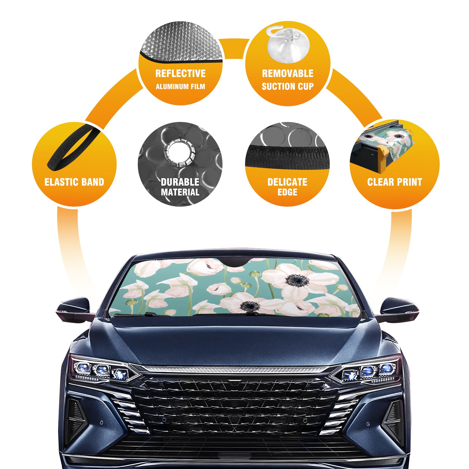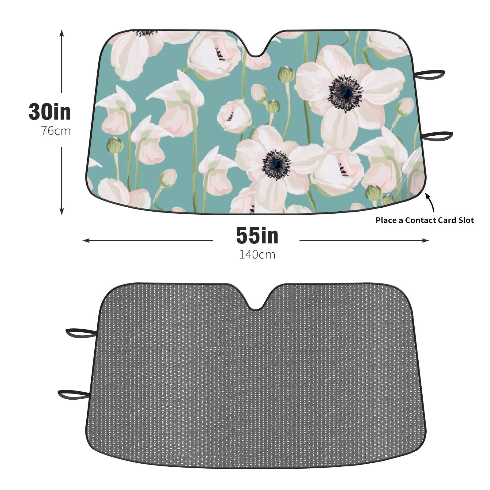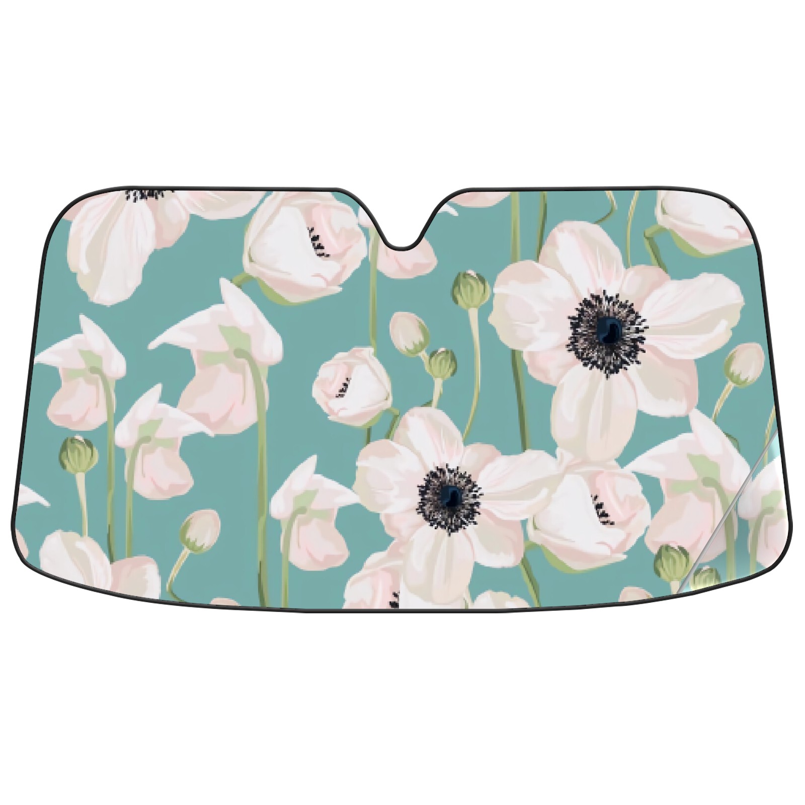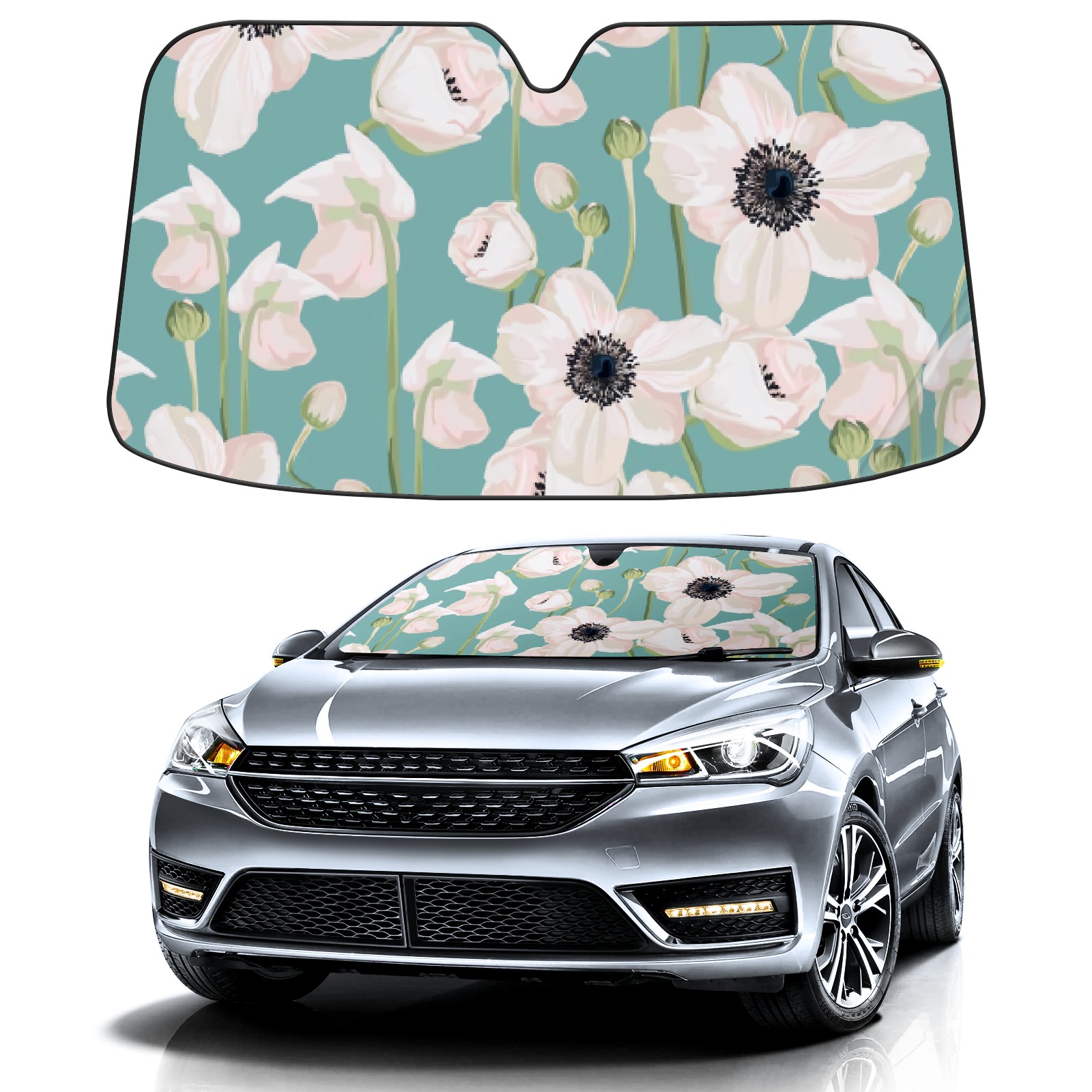 Car Windshield Sun Shade For Front Window Green Anemone Foldable Vehicle Windshield Car Sun Visor Covers Automotive Window Protector Car Camping Privacy Sun Blocker