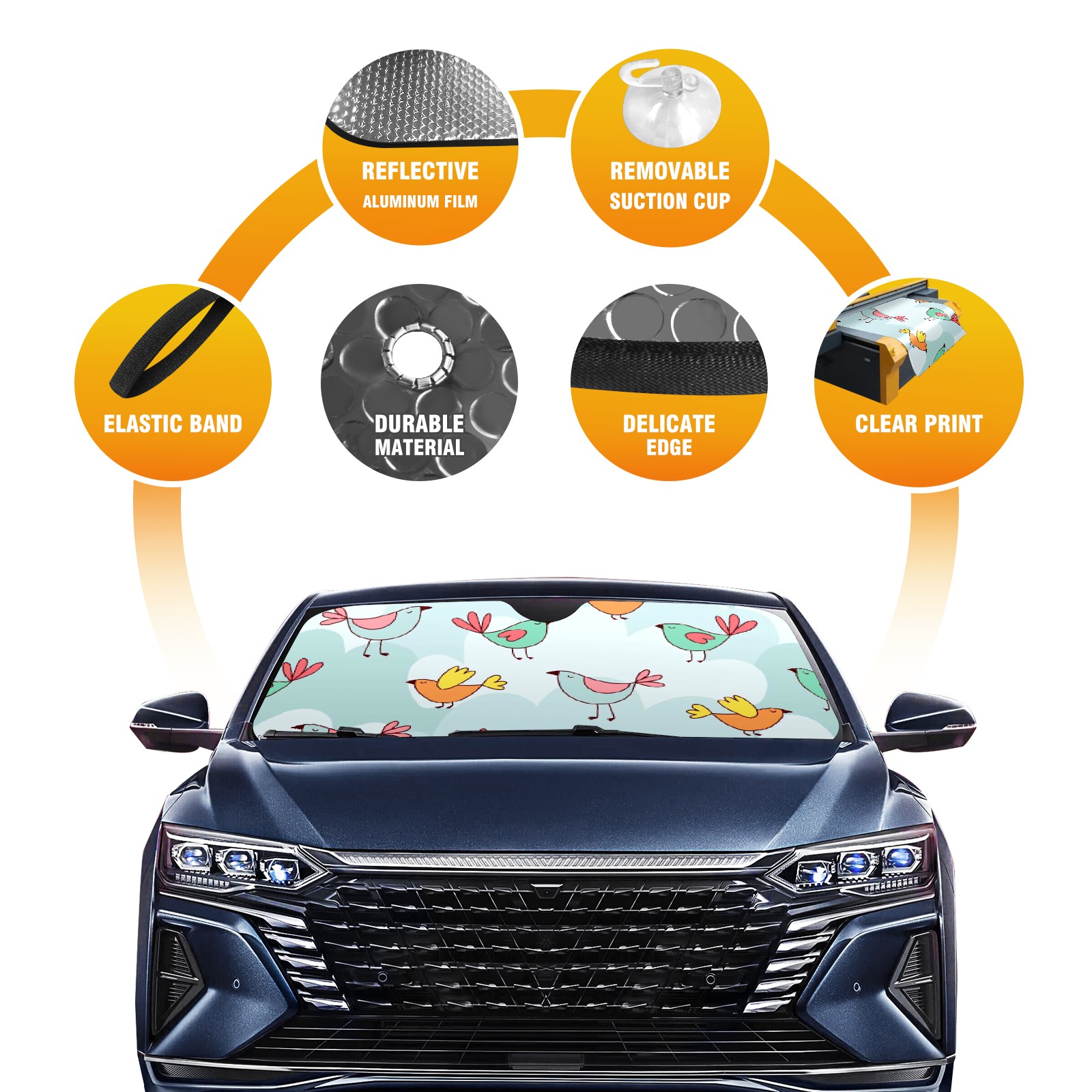Car Windshield Sun Shade For Front Window Colored Bird Foldable Vehicle Windshield Car Sun Visor Covers Automotive Window Protector Car Camping Privacy Sun Blocker