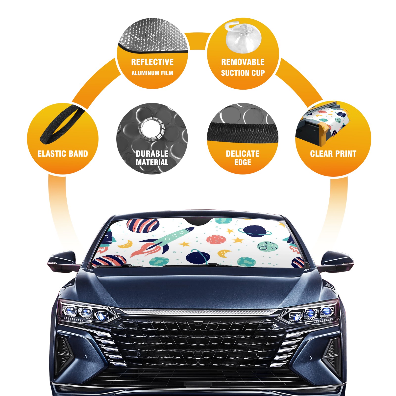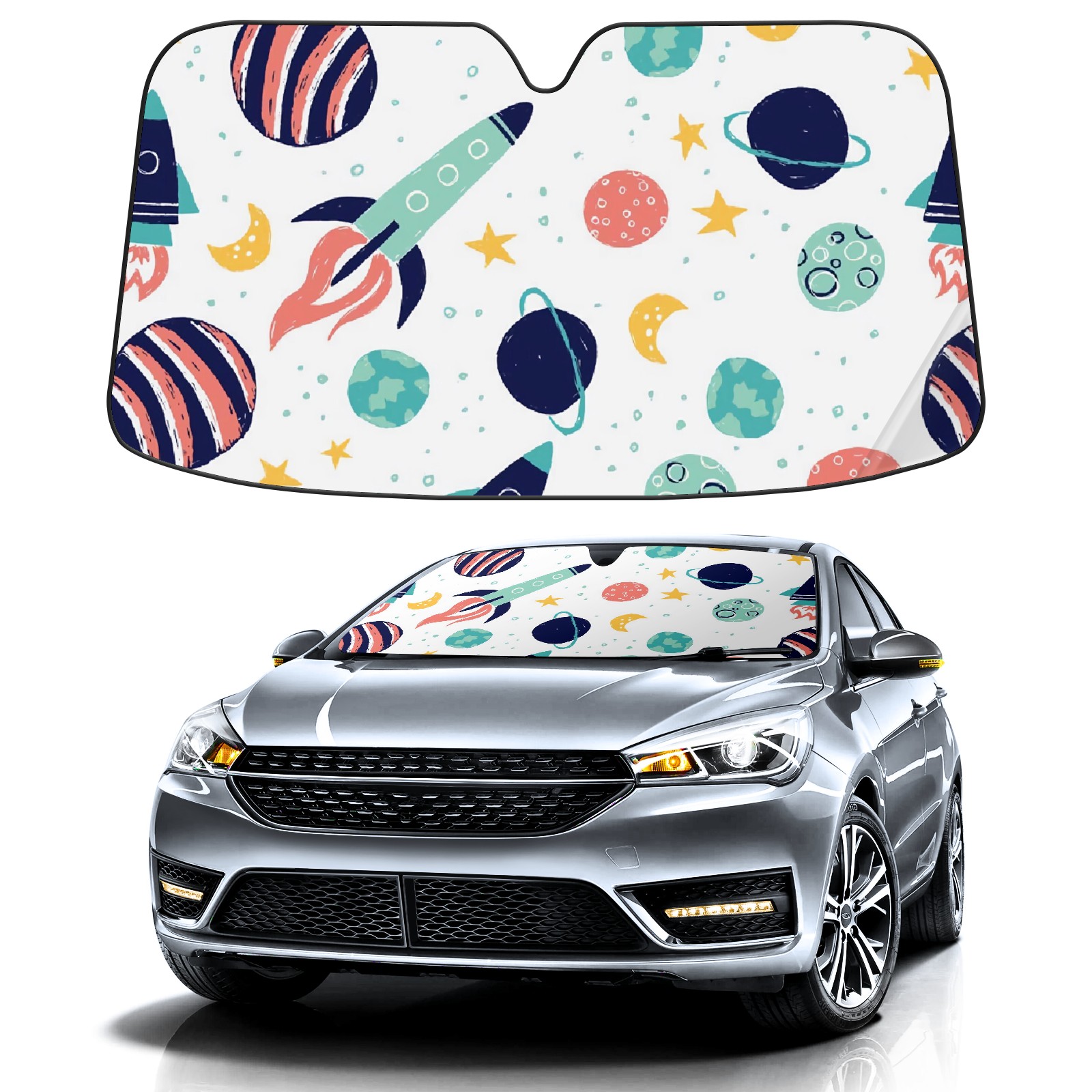 Car Windshield Sun Shade For Front Window Space Rocket Foldable Vehicle Windshield Car Sun Visor Covers Automotive Window Protector Car Camping Privacy Sun Blocker