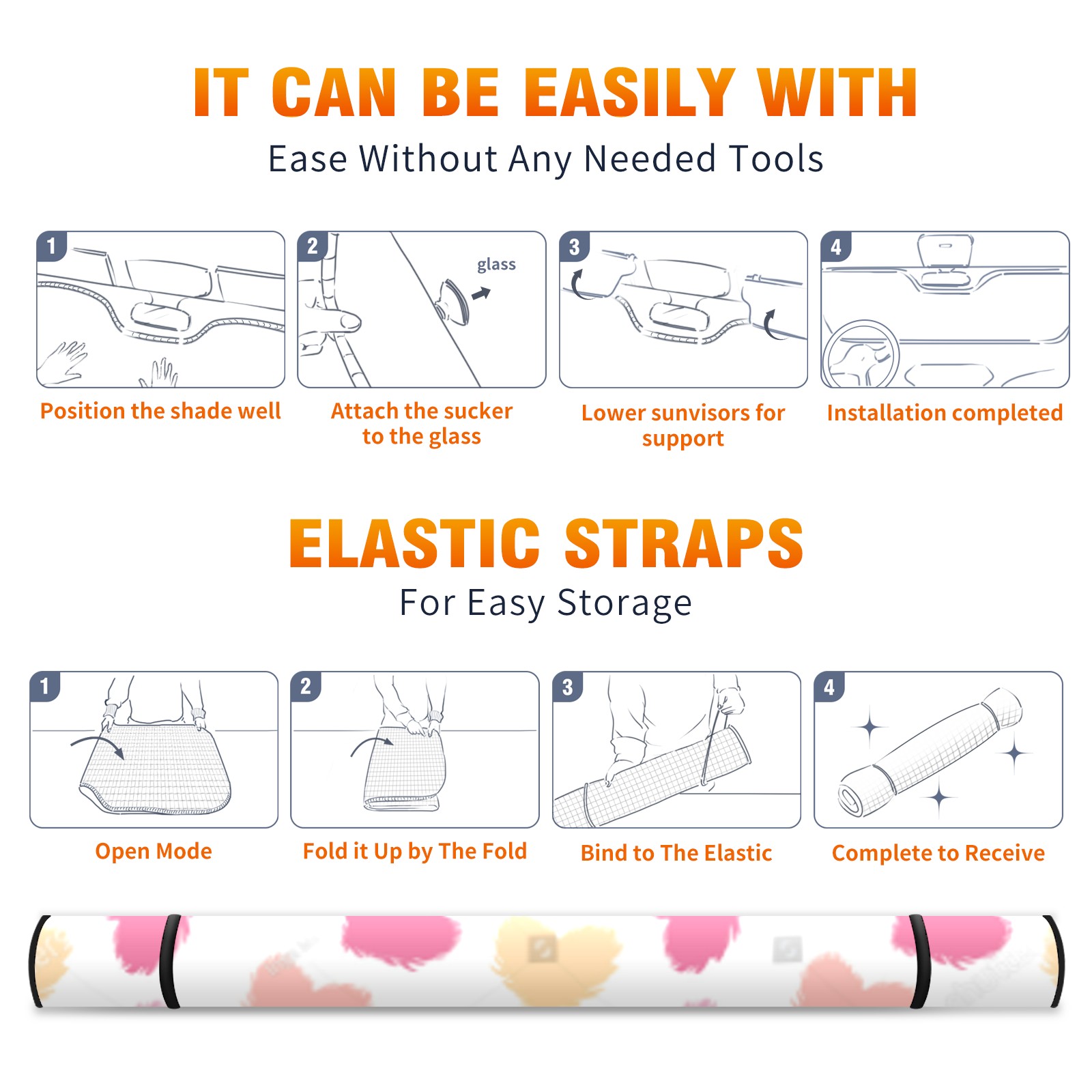 • Diameter /Size 63"L x 33.5"W Made from excellent materials which makes it sturdy and protects the car from the sun. Easy to use and pack. Makes the interior of the car cooler.You can easily stash the sunshade in the storage bag or store long term.It open and closes easy. Also the leather storage bag is durable and easy to put the umbrella back into.This windshield sunshade provides complete coverage and keeps your car interior cool under direct sun. It is easy to open and position under the windshield and around the rear-view mirror. Makes Your Car Easy To Identify, Perfect For Finding Your Car In Crowded Parking Lots And Garages.Great Choice: It Is A Great Gift For Dad, Boyfriend, Brother, Brother And Uncle, Friends, Classmates, Family And So On. Notice: Due To Difference Computer Monitors, The Color Maybe Slightly Different From Picture. As Different Measurement Methods, Measurement Data Will Float Within 2%.I Hope You Understand. If You Have Any Question About The Item Please Do Not Hesitate To Contact Us Immediately And We Will Give You A Satisfactory Reply Within 24 Hours.