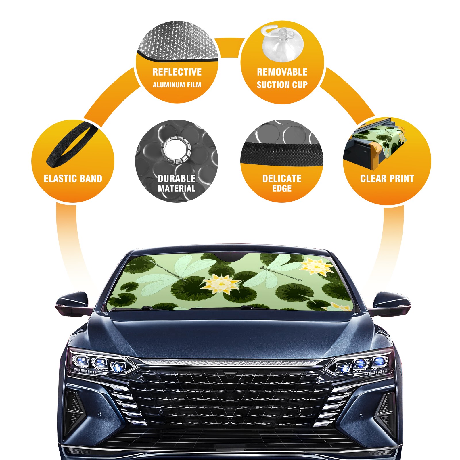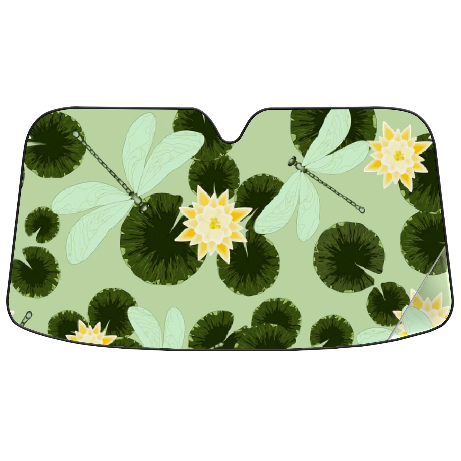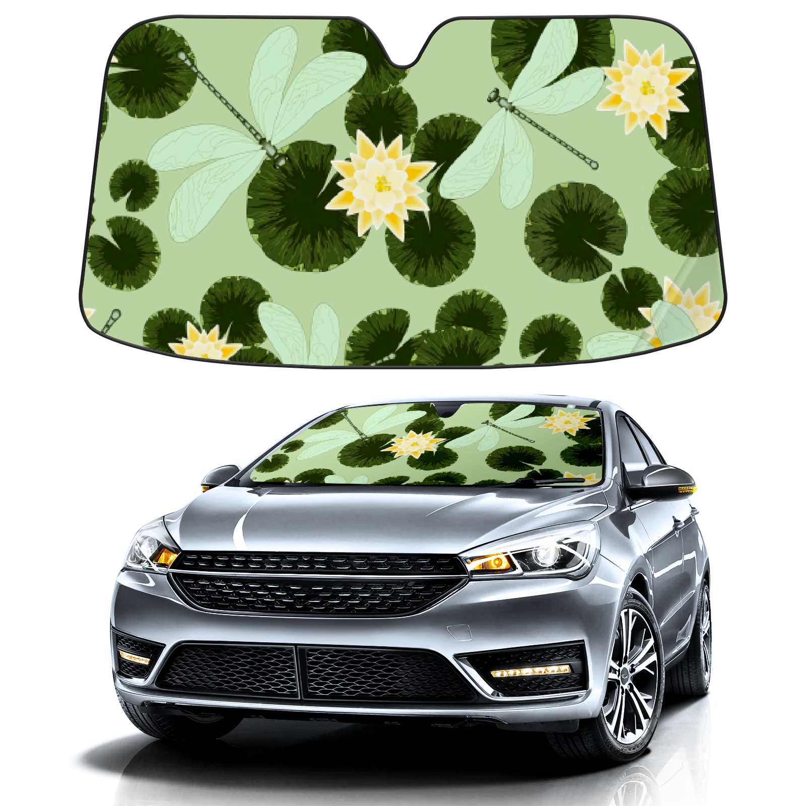 Car Windshield Sun Shade For Front Window Green Lotus Leaf Dragonfly Foldable Vehicle Windshield Car Sun Visor Covers Automotive Window Protector Car Camping Privacy Sun Blocker