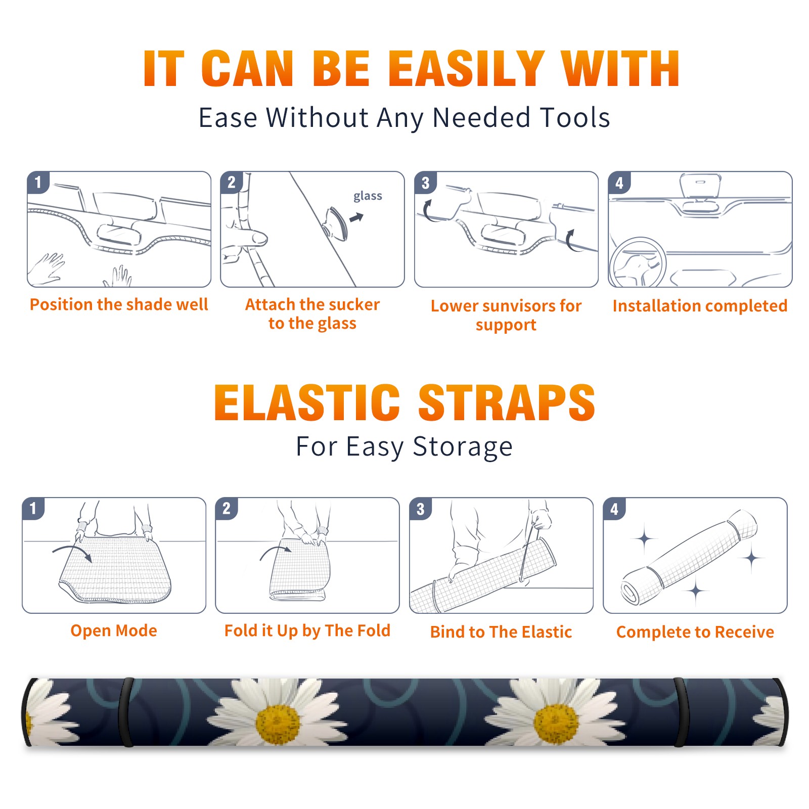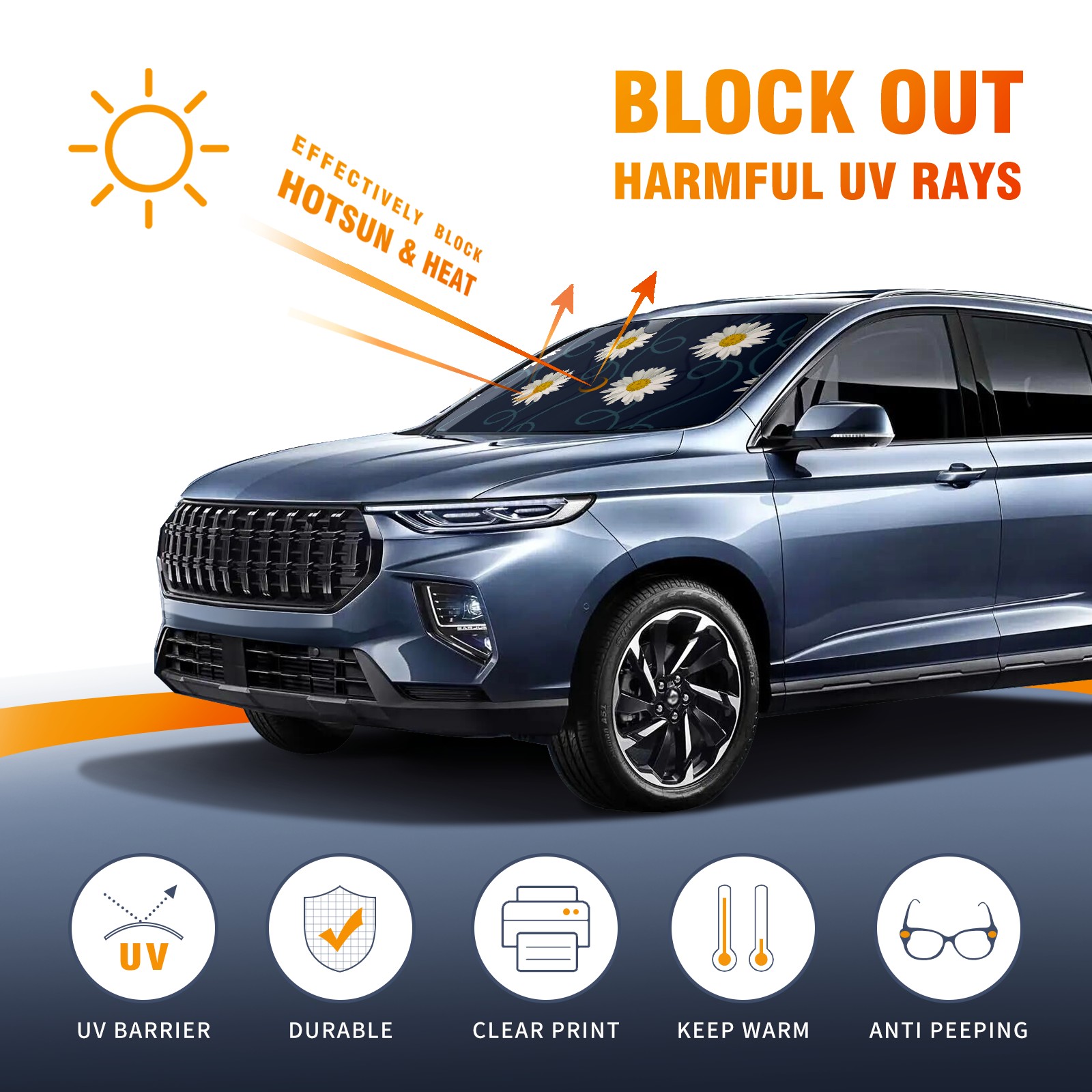Car Windshield Sun Shade For Front Window Dark Chain Chrysanthemum Foldable Vehicle Windshield Car Sun Visor Covers Automotive Window Protector Car Camping Privacy Sun Blocker