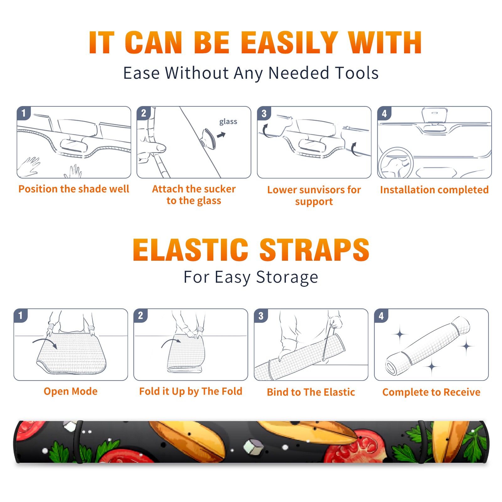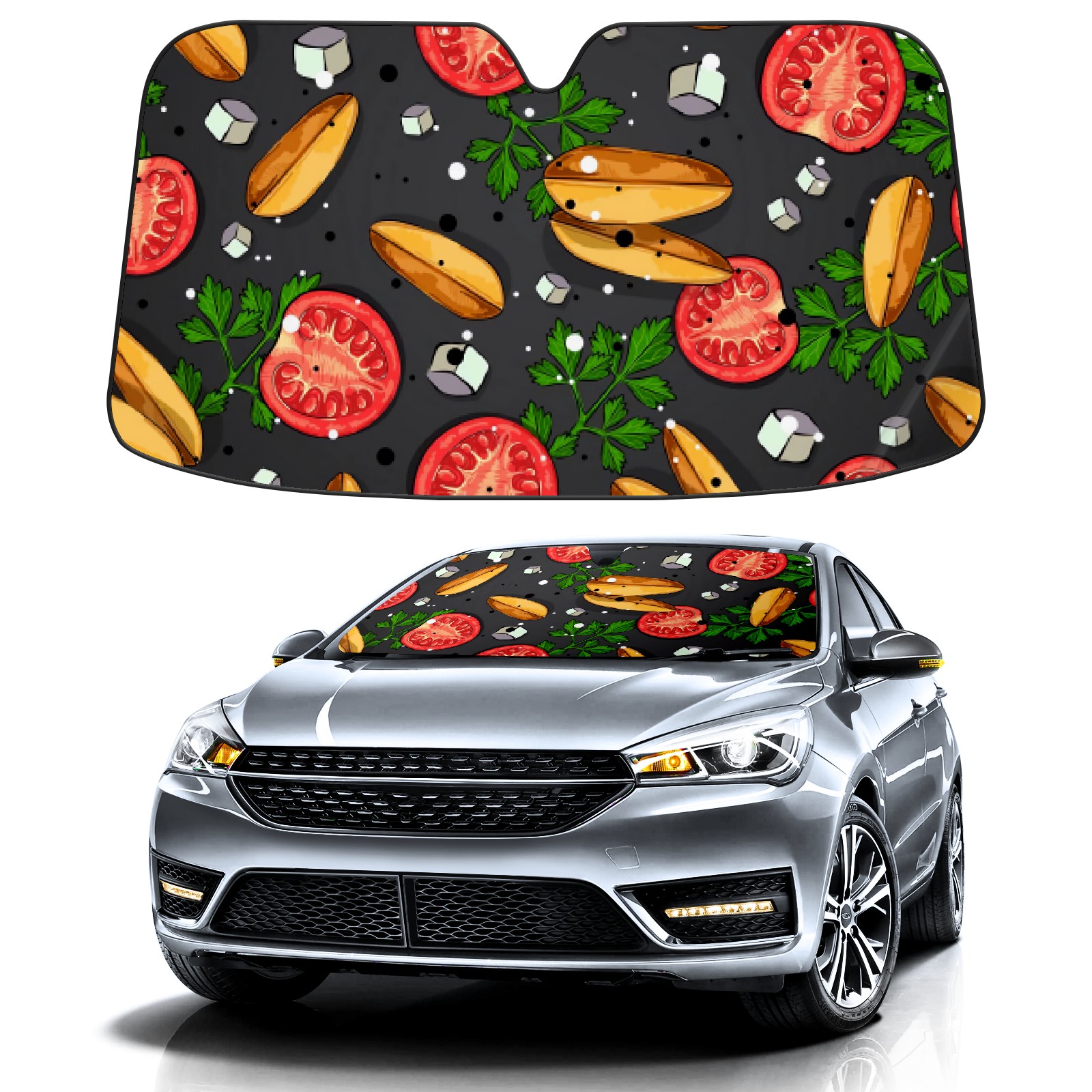 Car Windshield Sun Shade For Front Window Tomatoes On A Black Foldable Vehicle Windshield Car Sun Visor Covers Automotive Window Protector Car Camping Privacy Sun Blocker