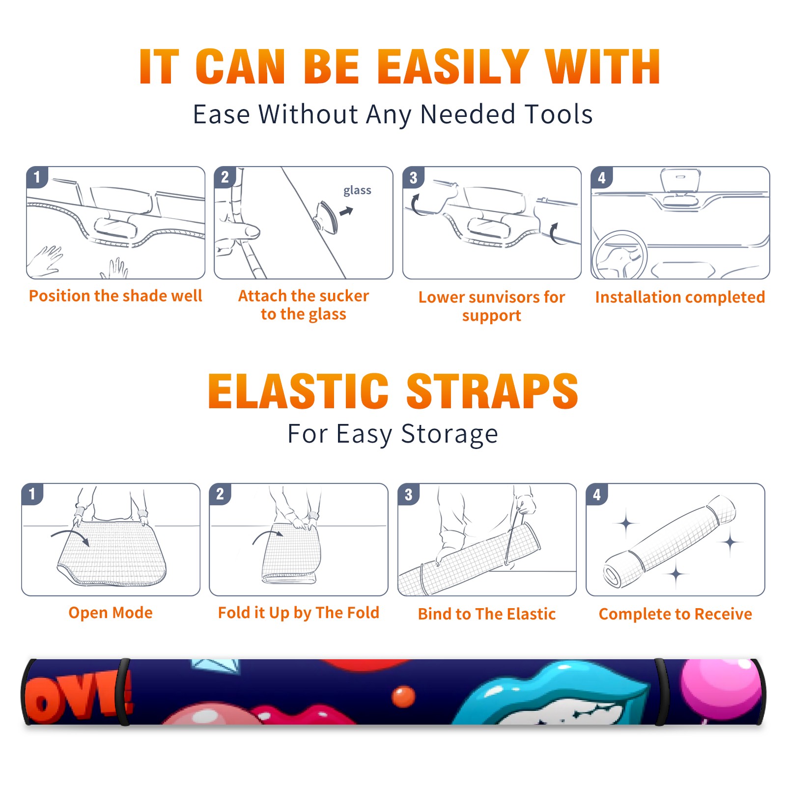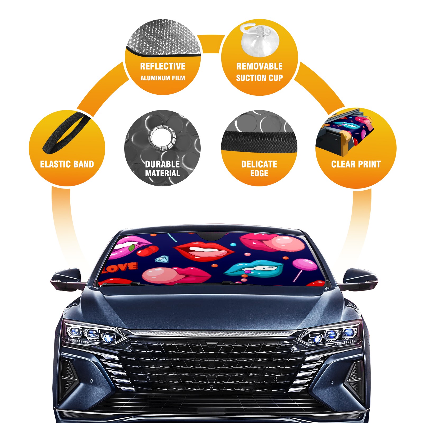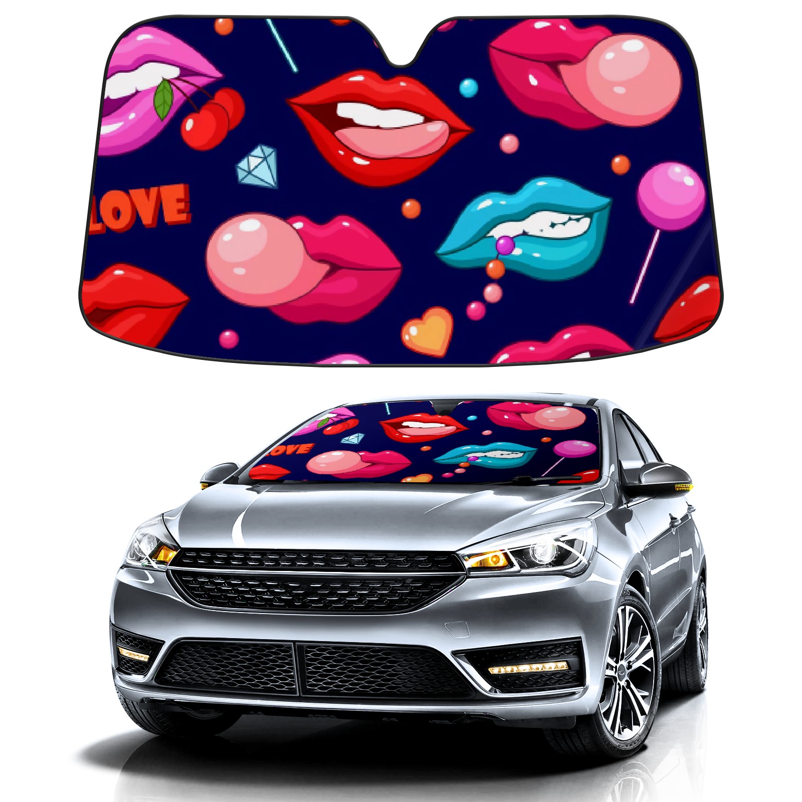 Car Windshield Sun Shade For Front Window Color Bite Lip Foldable Vehicle Windshield Car Sun Visor Covers Automotive Window Protector Car Camping Privacy Sun Blocker