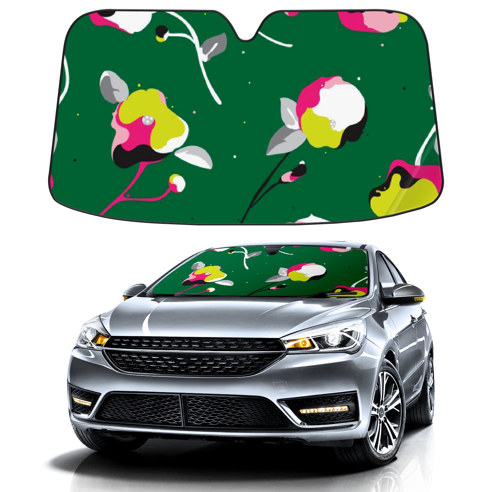 Car Windshield Sun Shade For Front Window Colorful Petals On Green Foldable Vehicle Windshield Car Sun Visor Covers Automotive Window Protector Car Camping Privacy Sun Blocker