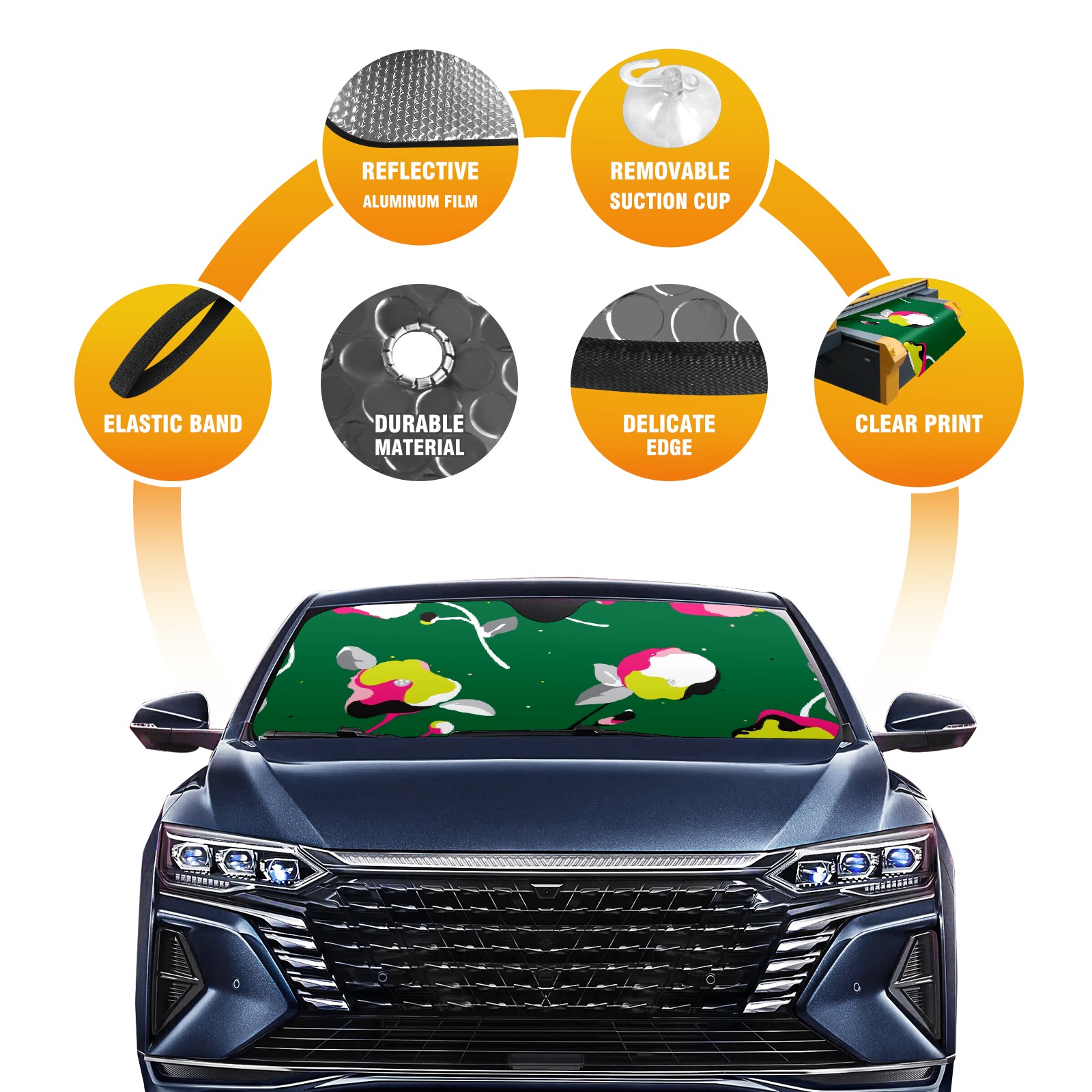 • Diameter /Size 63"L x 33.5"W Made from excellent materials which makes it sturdy and protects the car from the sun. Easy to use and pack. Makes the interior of the car cooler.You can easily stash the sunshade in the storage bag or store long term.It open and closes easy. Also the leather storage bag is durable and easy to put the umbrella back into.This windshield sunshade provides complete coverage and keeps your car interior cool under direct sun. It is easy to open and position under the windshield and around the rear-view mirror. Makes Your Car Easy To Identify, Perfect For Finding Your Car In Crowded Parking Lots And Garages.Great Choice: It Is A Great Gift For Dad, Boyfriend, Brother, Brother And Uncle, Friends, Classmates, Family And So On. Notice: Due To Difference Computer Monitors, The Color Maybe Slightly Different From Picture. As Different Measurement Methods, Measurement Data Will Float Within 2%.I Hope You Understand. If You Have Any Question About The Item Please Do Not Hesitate To Contact Us Immediately And We Will Give You A Satisfactory Reply Within 24 Hours.