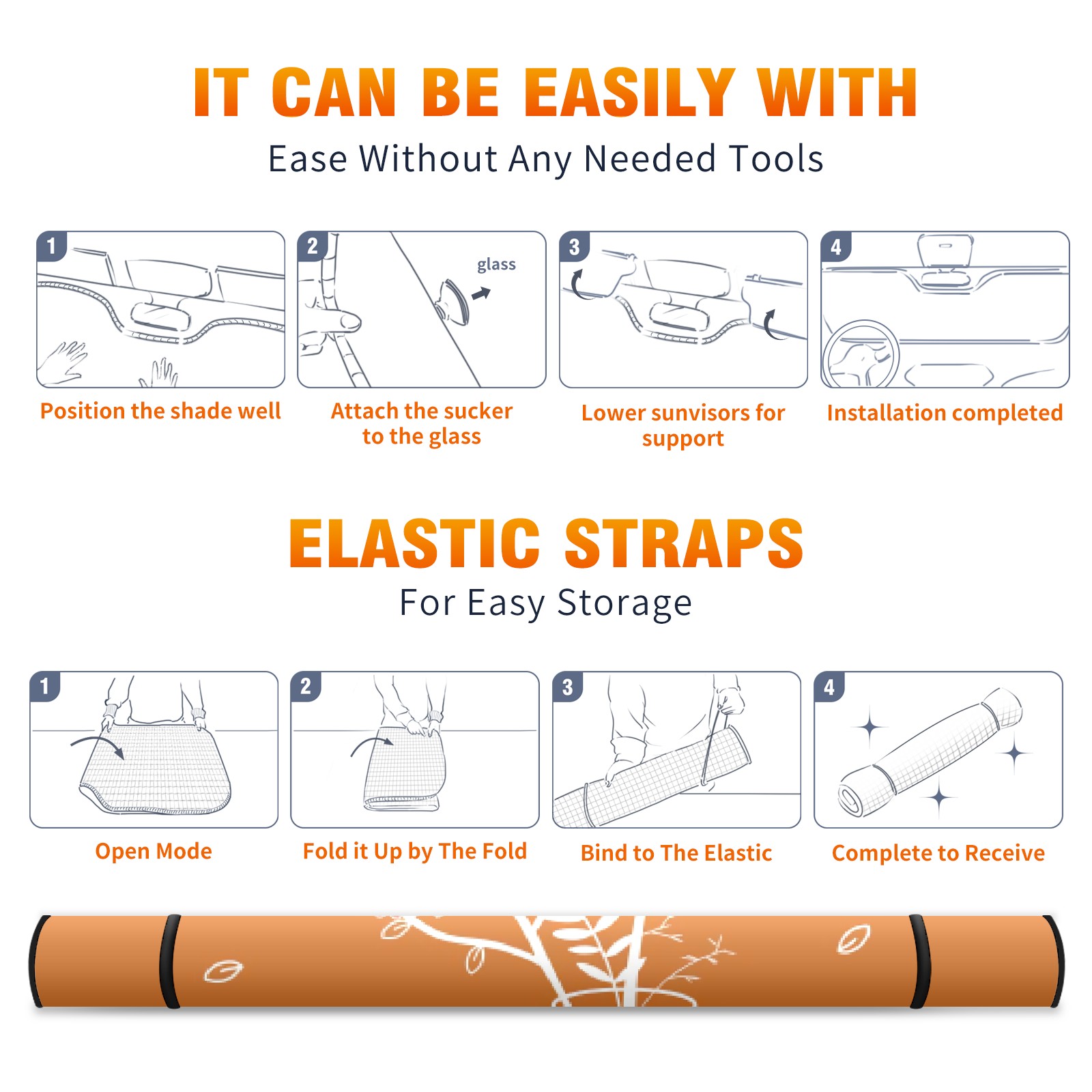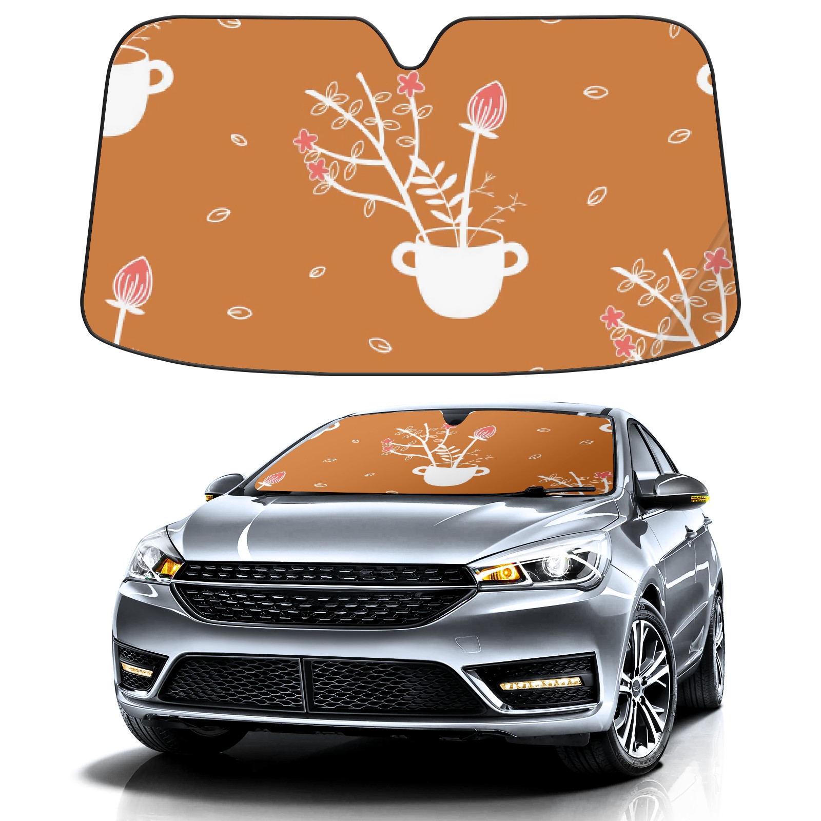Car Windshield Sun Shade For Front Window Orange Cup Flower Foldable Vehicle Windshield Car Sun Visor Covers Automotive Window Protector Car Camping Privacy Sun Blocker