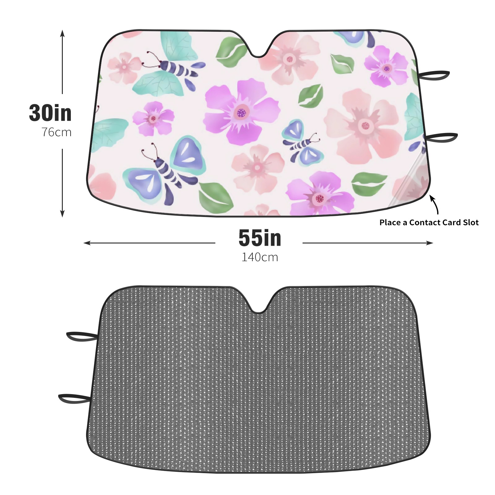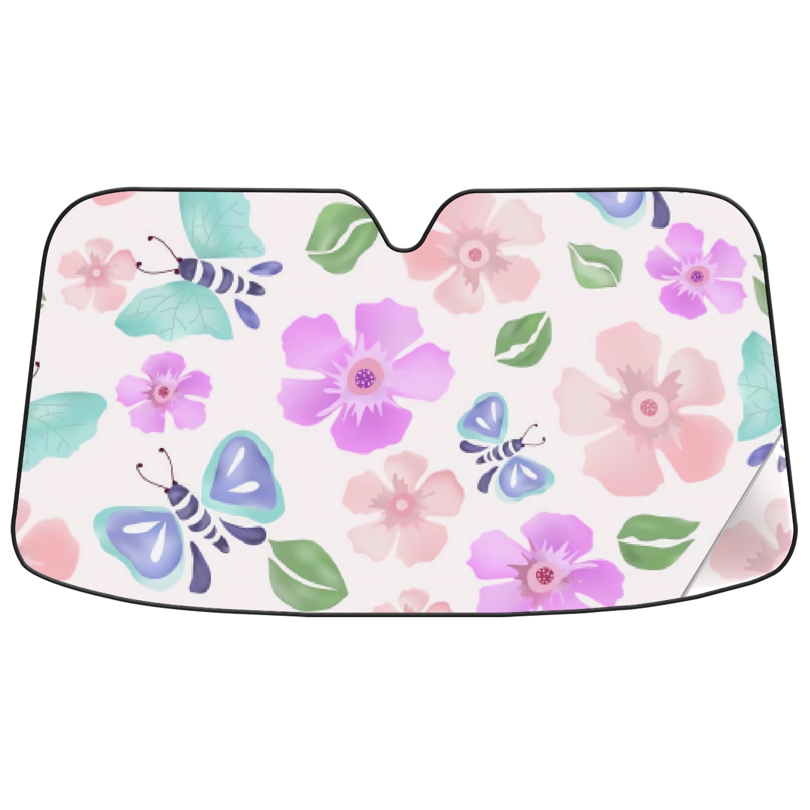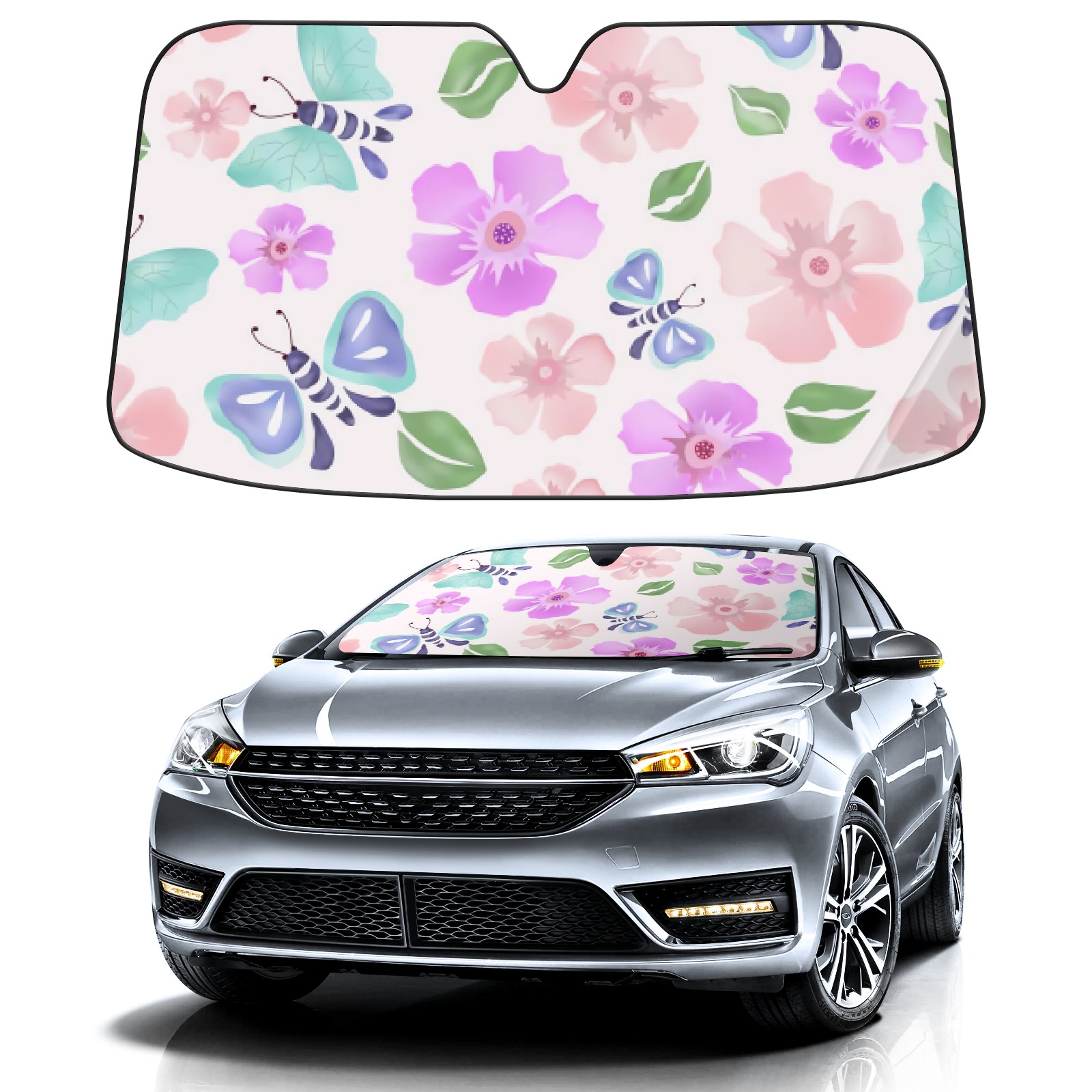 Car Windshield Sun Shade For Front Window Purple Flowers Butterflies Foldable Vehicle Windshield Car Sun Visor Covers Automotive Window Protector Car Camping Privacy Sun Blocker