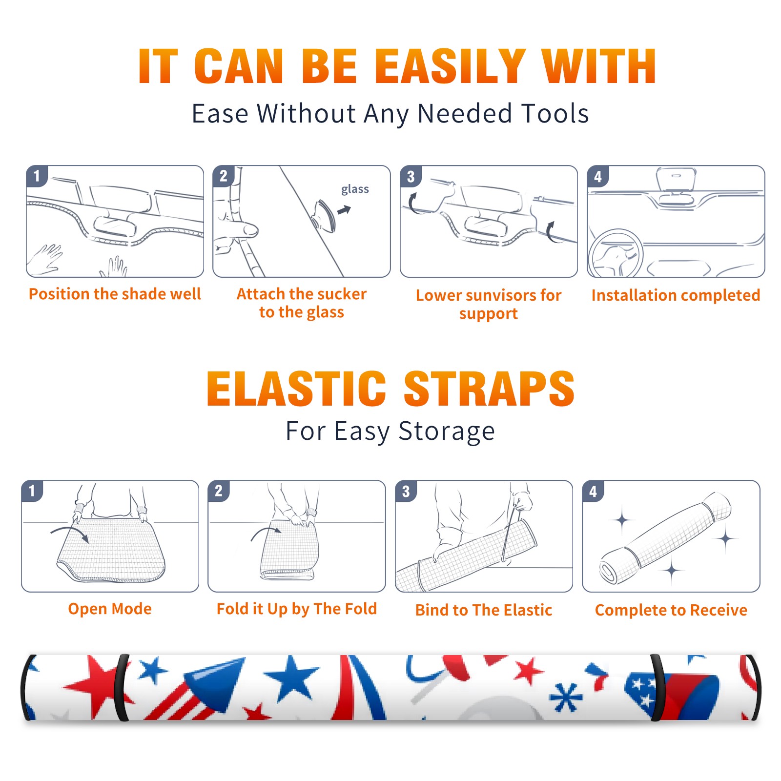 • Diameter /Size 63"L x 33.5"W Made from excellent materials which makes it sturdy and protects the car from the sun. Easy to use and pack. Makes the interior of the car cooler.You can easily stash the sunshade in the storage bag or store long term.It open and closes easy. Also the leather storage bag is durable and easy to put the umbrella back into.This windshield sunshade provides complete coverage and keeps your car interior cool under direct sun. It is easy to open and position under the windshield and around the rear-view mirror. Makes Your Car Easy To Identify, Perfect For Finding Your Car In Crowded Parking Lots And Garages.Great Choice: It Is A Great Gift For Dad, Boyfriend, Brother, Brother And Uncle, Friends, Classmates, Family And So On. Notice: Due To Difference Computer Monitors, The Color Maybe Slightly Different From Picture. As Different Measurement Methods, Measurement Data Will Float Within 2%.I Hope You Understand. If You Have Any Question About The Item Please Do Not Hesitate To Contact Us Immediately And We Will Give You A Satisfactory Reply Within 24 Hours.