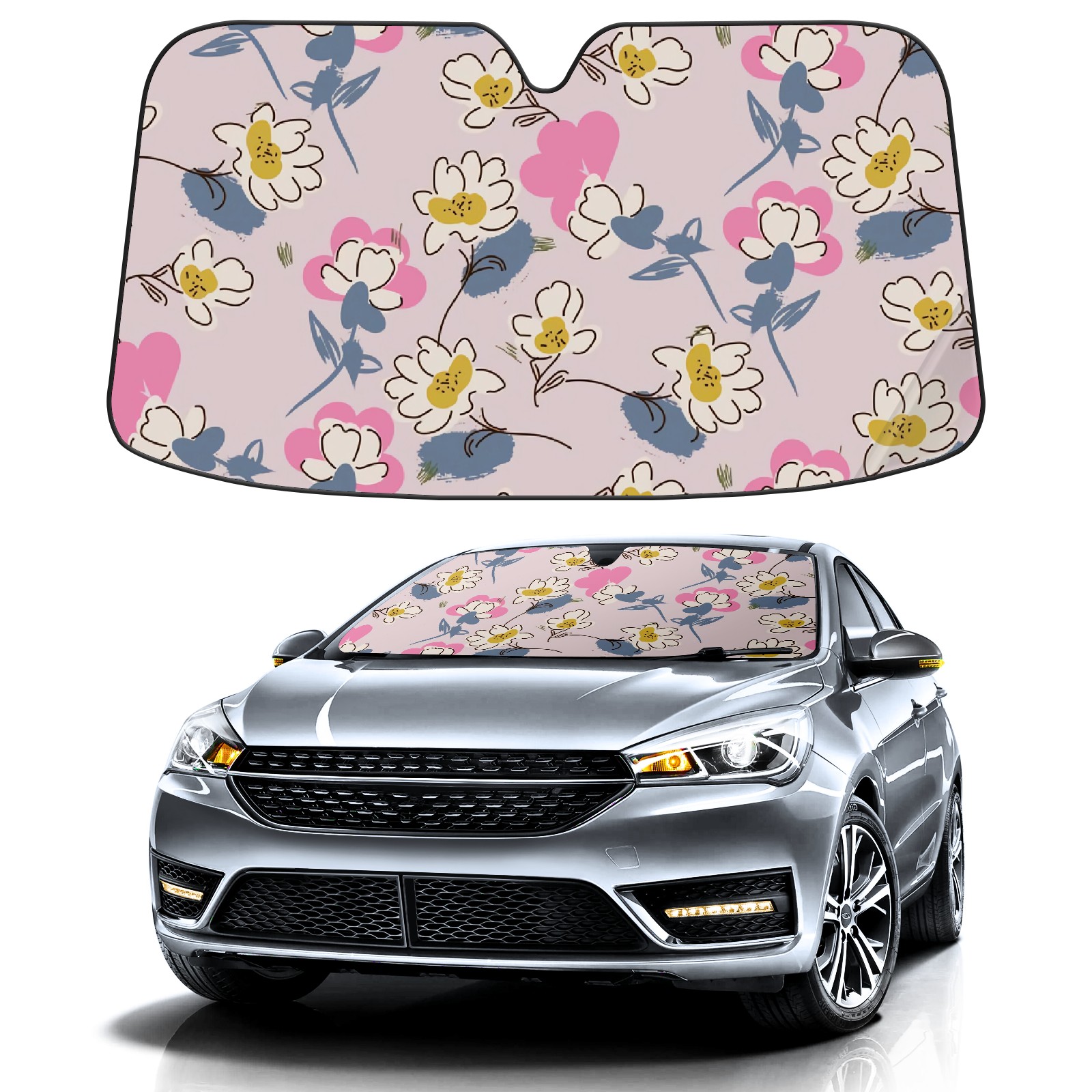 Car Windshield Sun Shade For Front Window Pink Abstract Chamomile Foldable Vehicle Windshield Car Sun Visor Covers Automotive Window Protector Car Camping Privacy Sun Blocker
